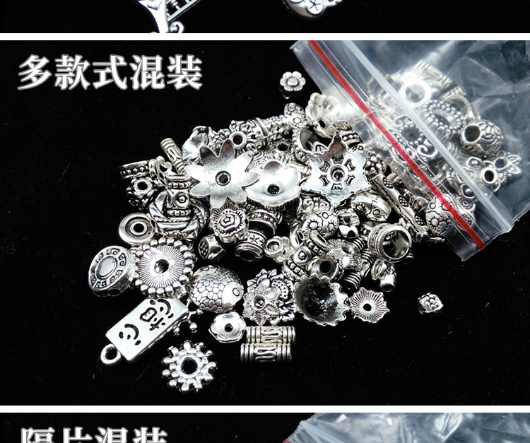 藏银配件包50克混装吊坠 复古藏银手链花托隔珠子diy手工银饰材料