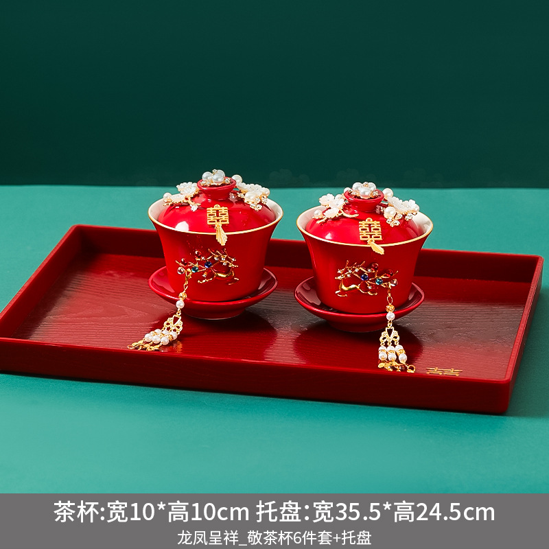 敬茶杯结婚套装婚礼改口一对喜字红色喜茶杯子囍茶具婚庆用品大全