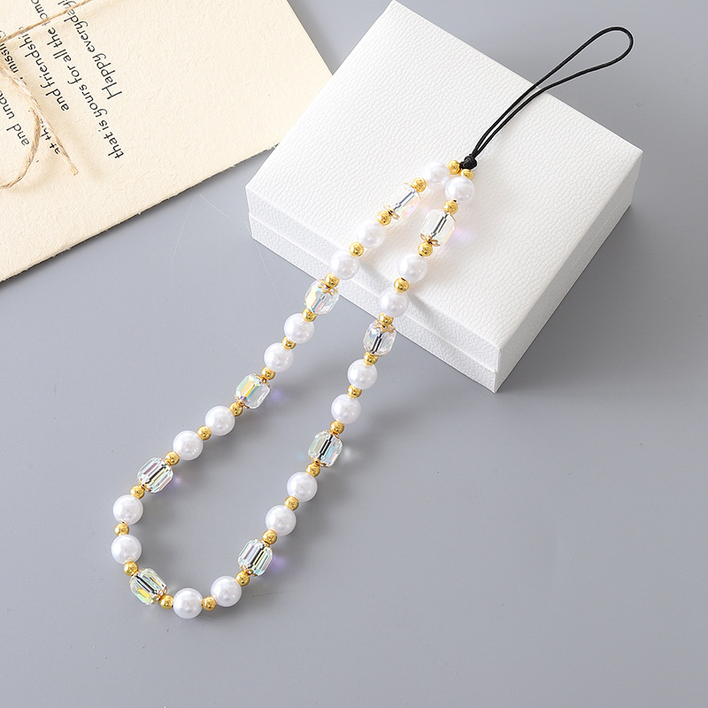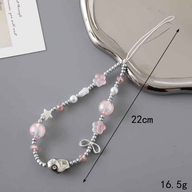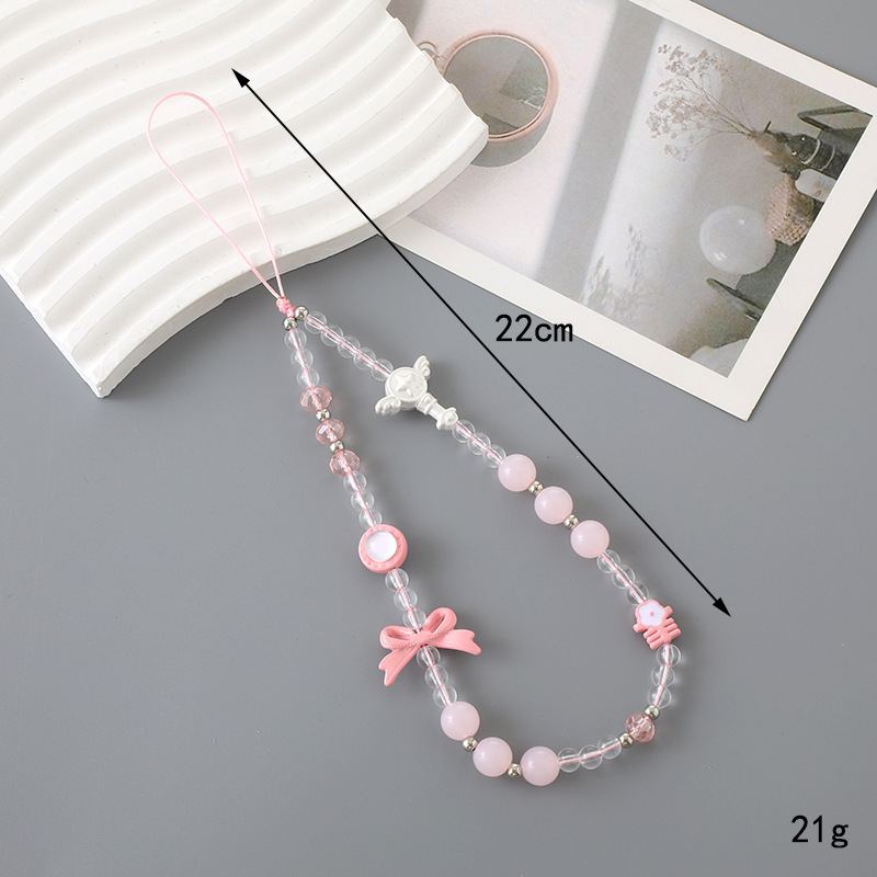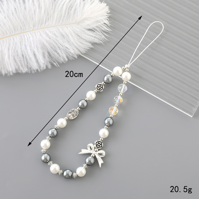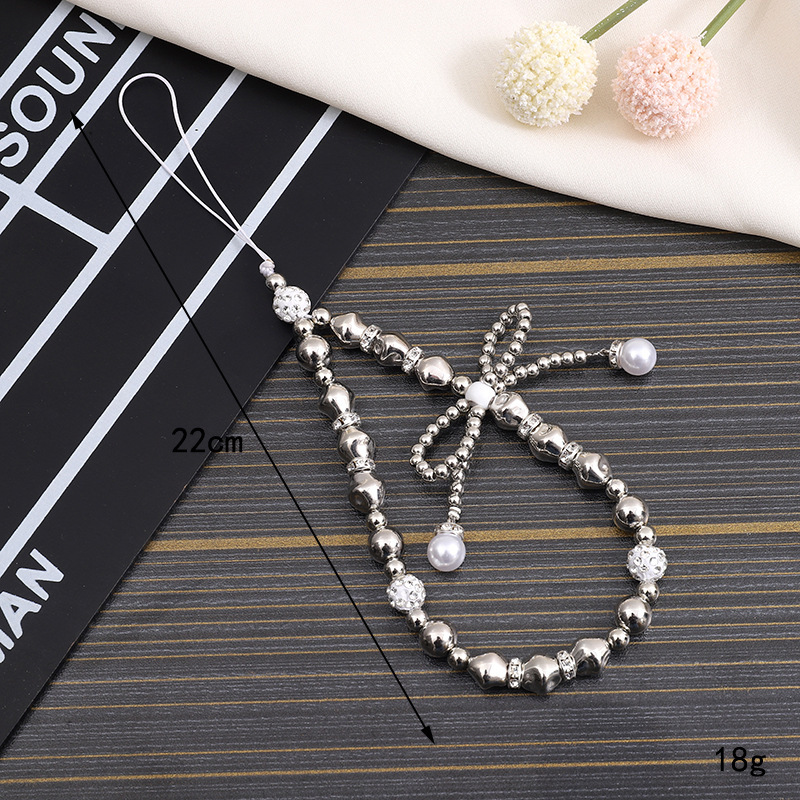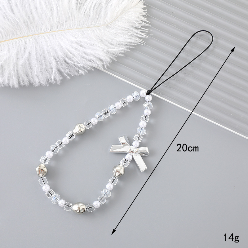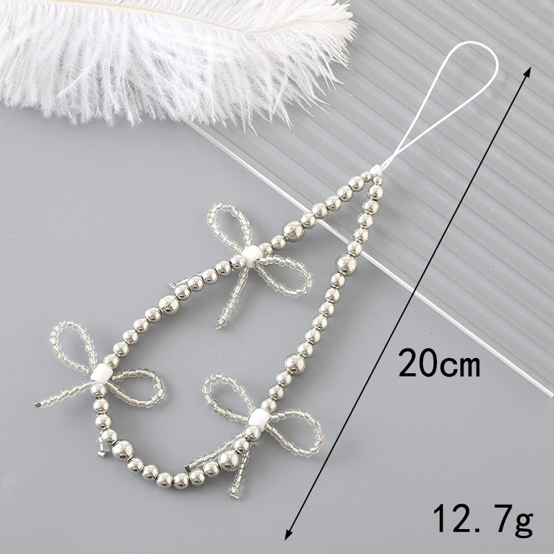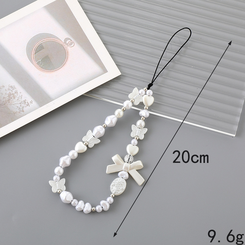 ins创意新款珍珠蝴蝶结串珠手机链时尚百搭手机壳挂绳挂饰链条女