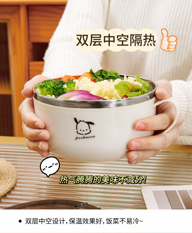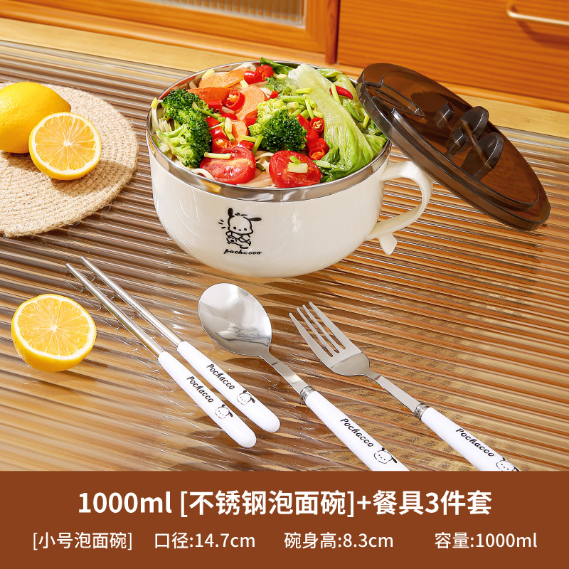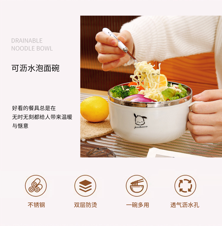 帕恰狗304不锈钢泡面碗带盖ins圆形大容量可沥水方便面碗学生饭盒