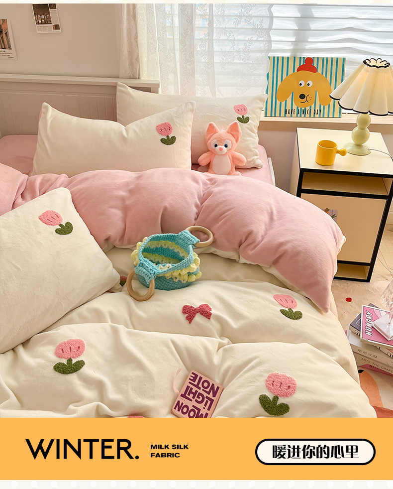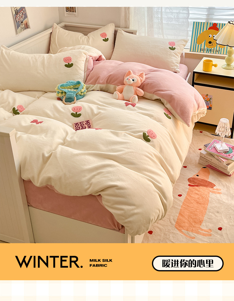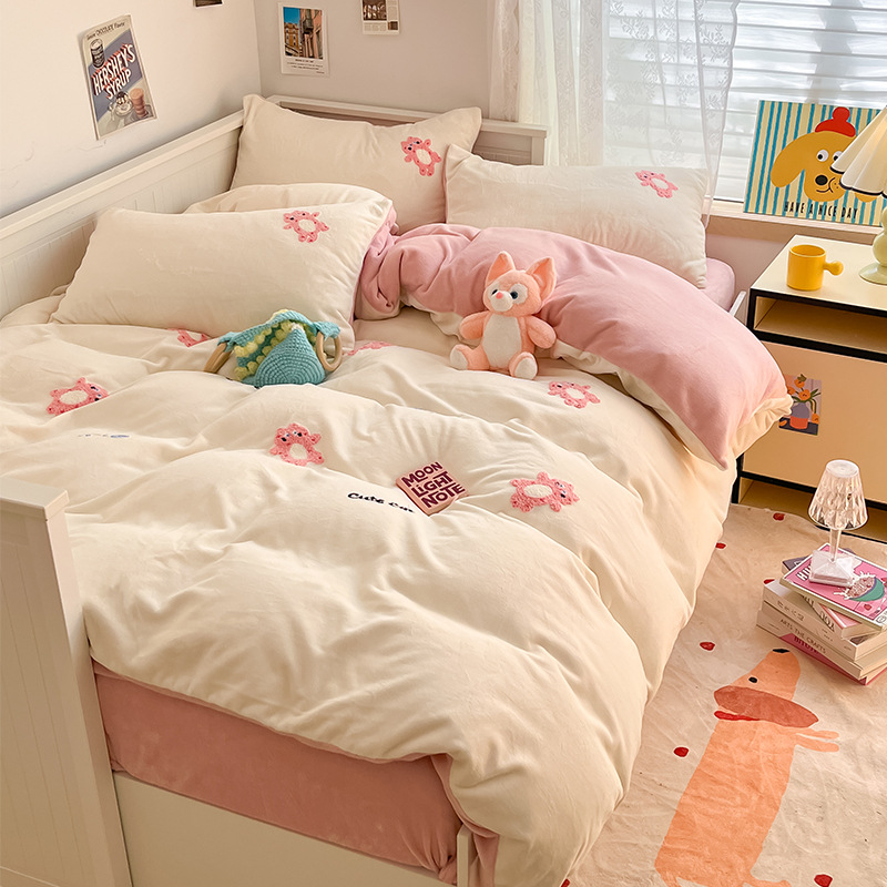 2024新款母婴级加厚保暖牛奶绒四件套秋冬婴儿绒法莱绒三件套床品