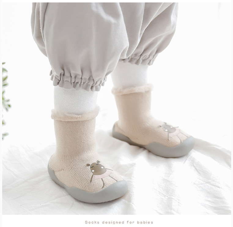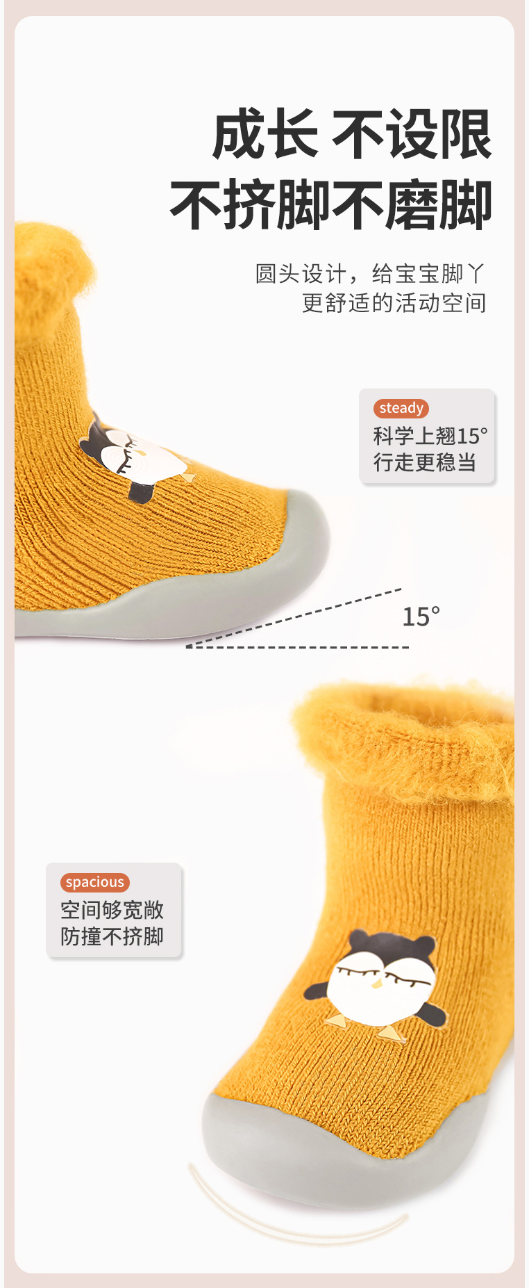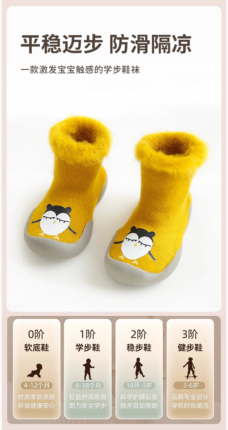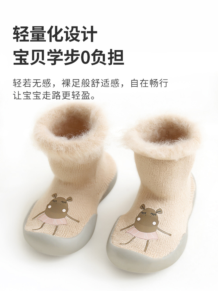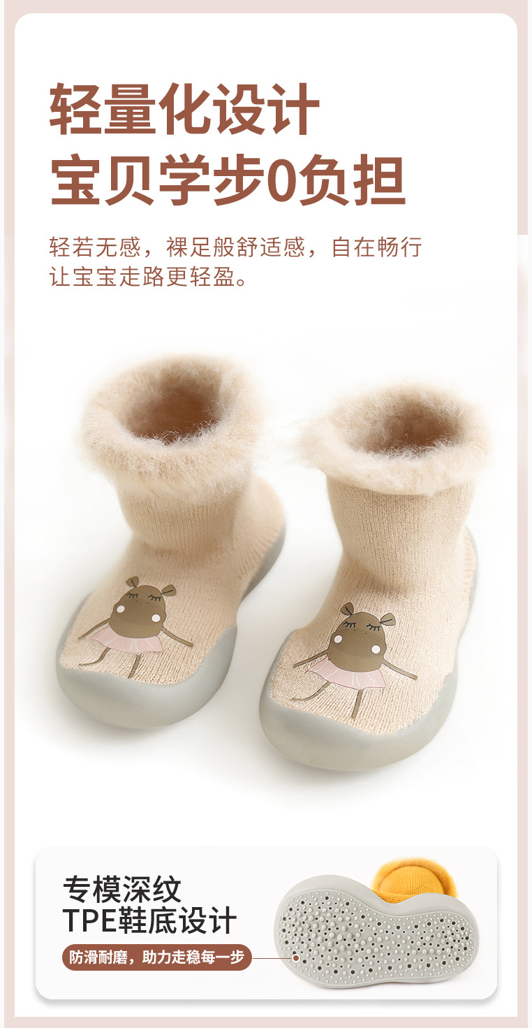 2024冬季新品儿童地板鞋袜防滑软底室内外防水加绒加厚婴儿学步鞋