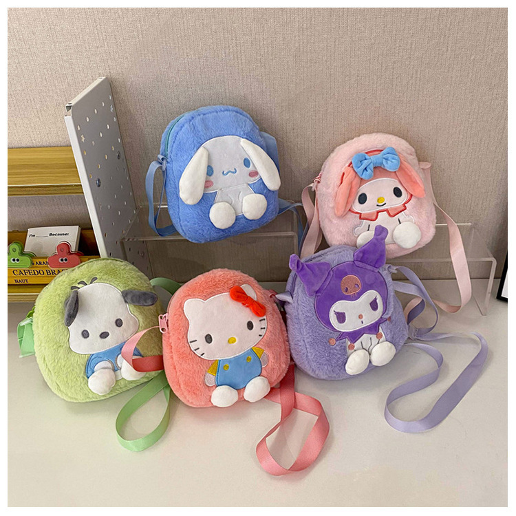 可爱卡通儿童玉桂狗库洛米毛绒玩具包包抓机娃娃斜挎手提包零钱包