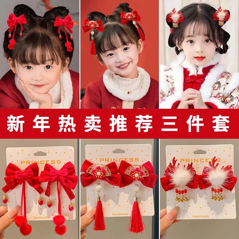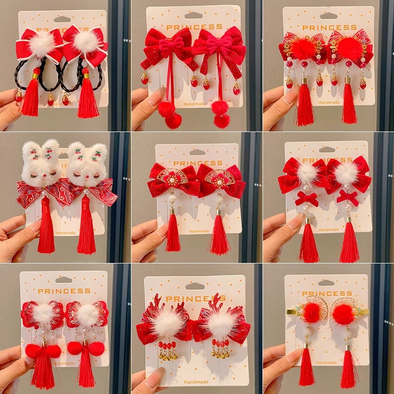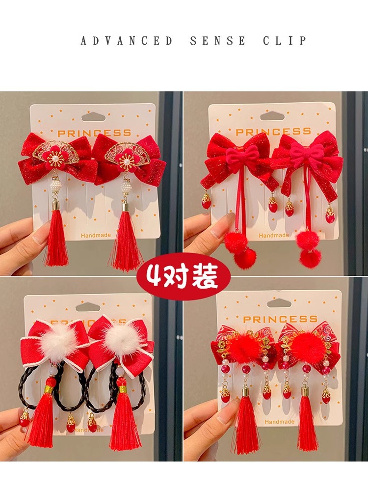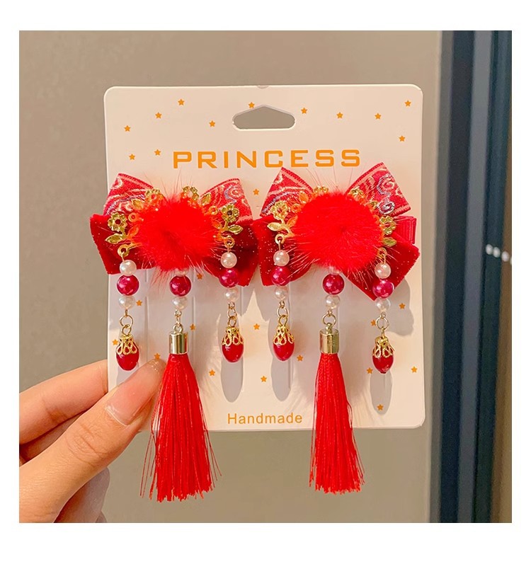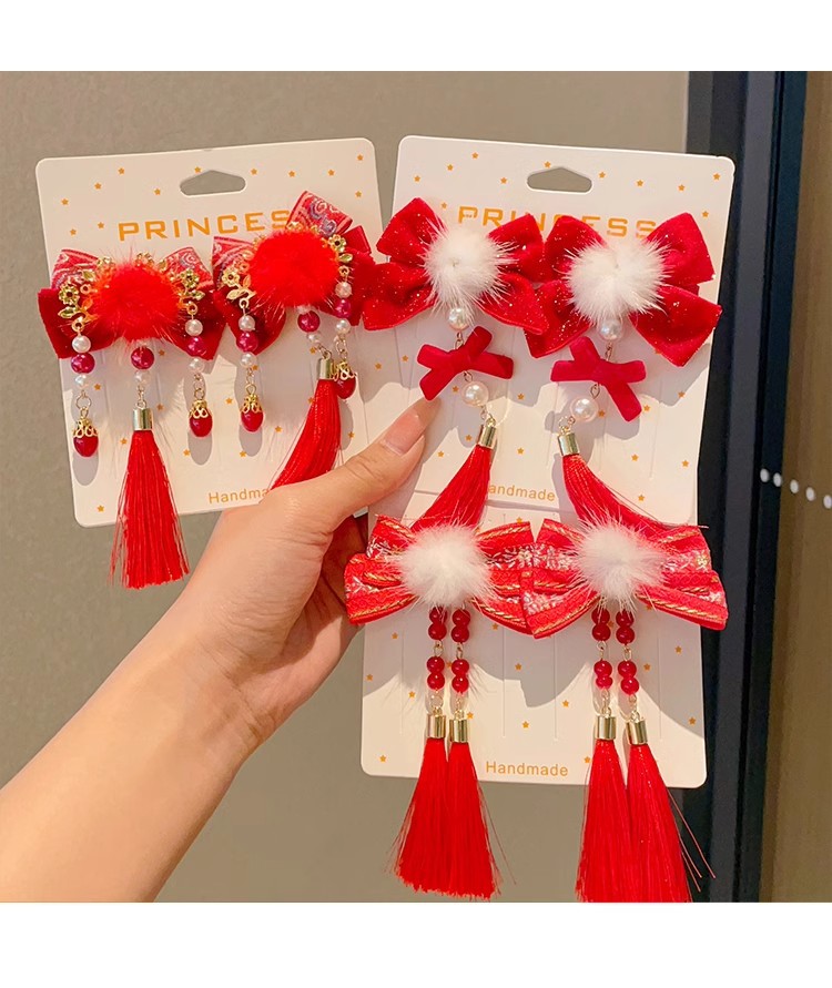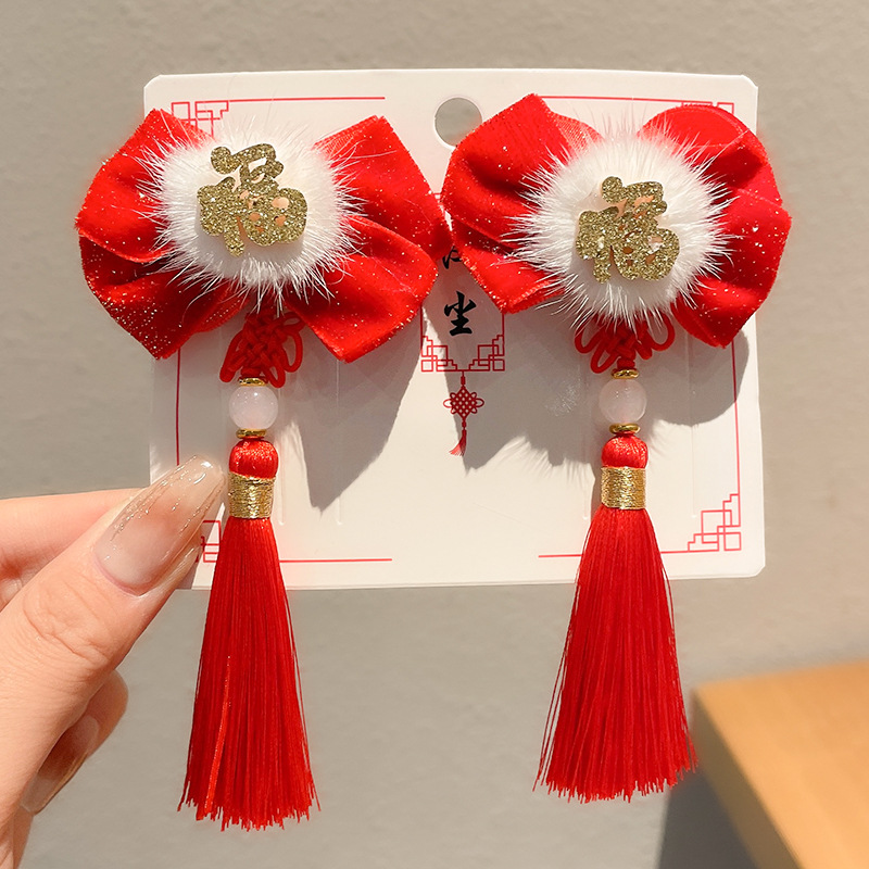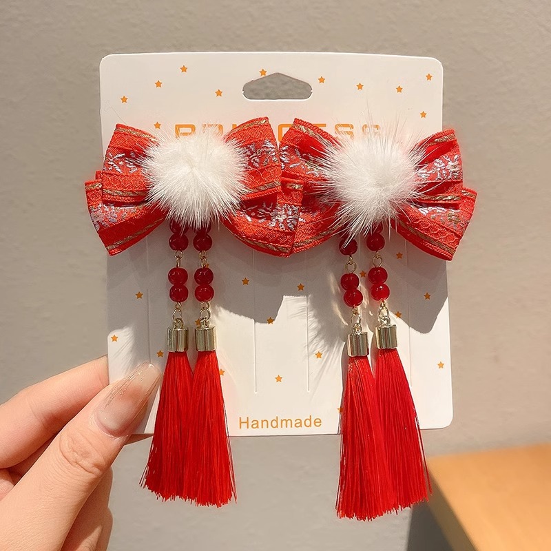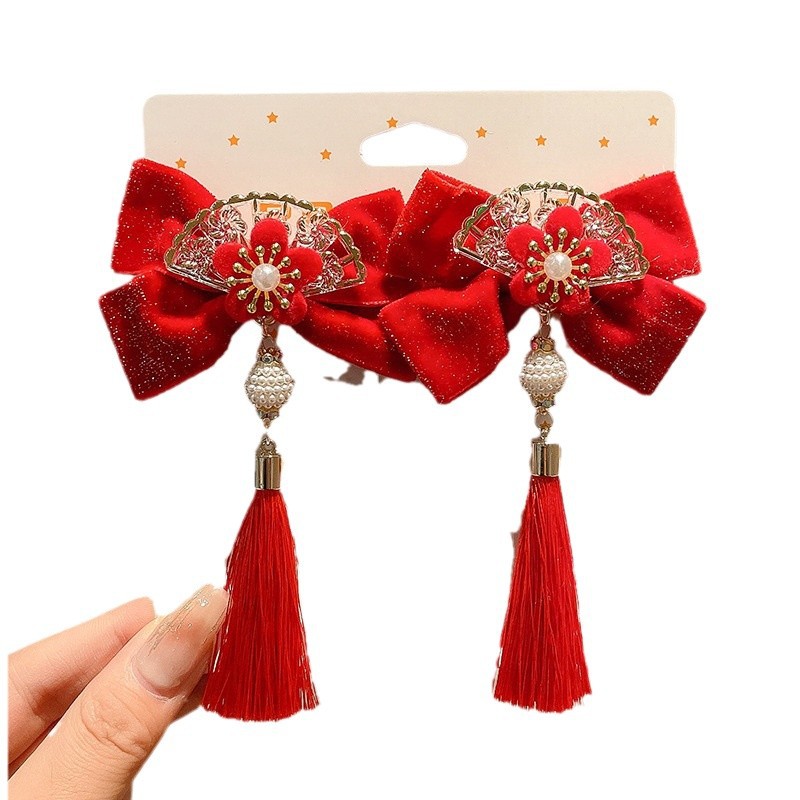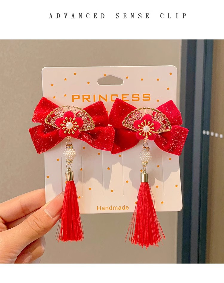 儿童古风蝴蝶结流苏发夹批货汉服发卡头饰宝宝过年喜庆新年发饰女