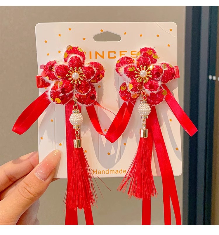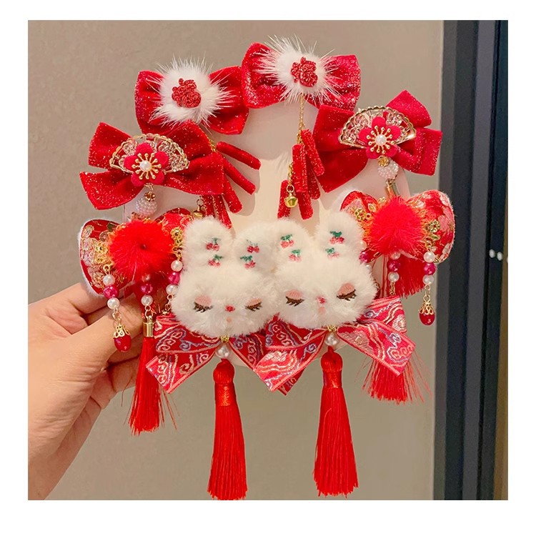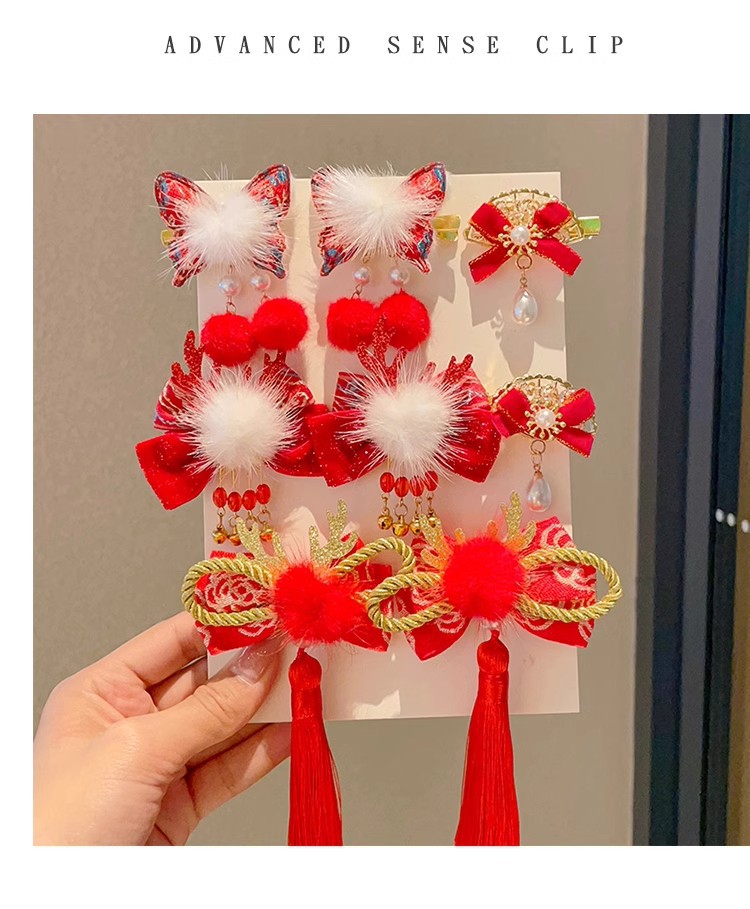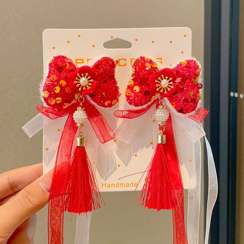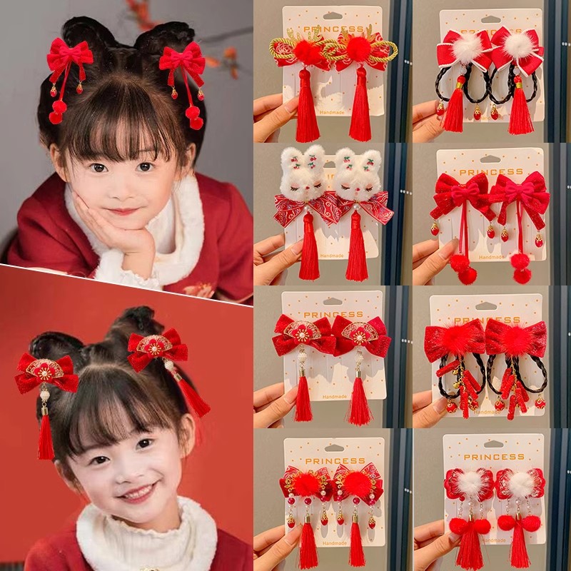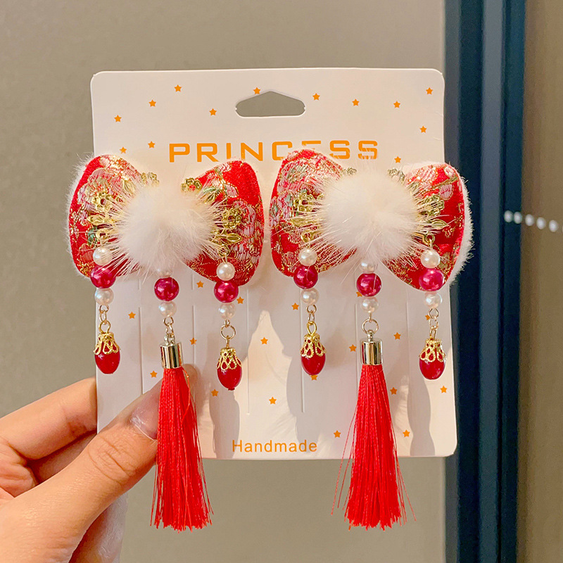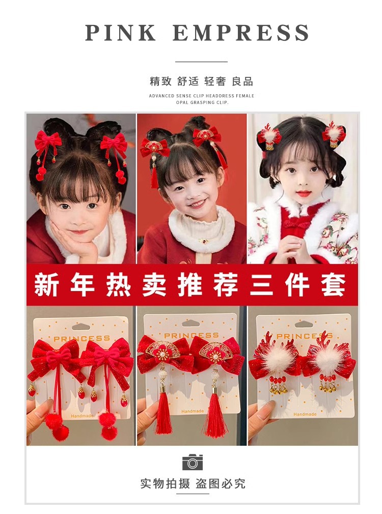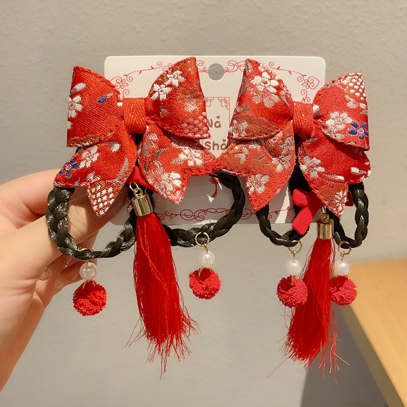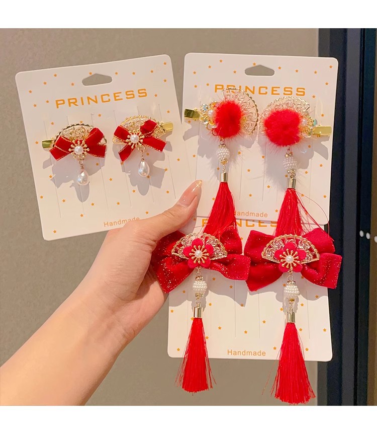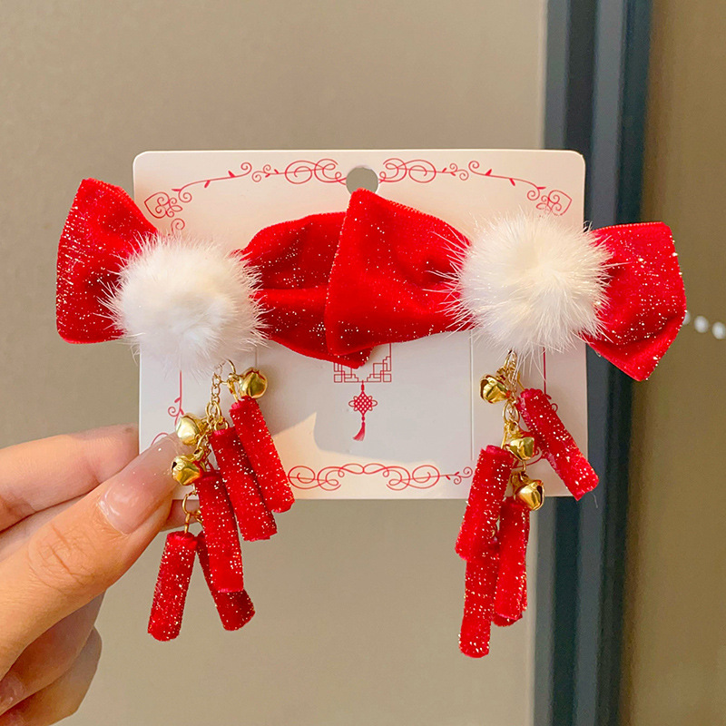儿童古风蝴蝶结流苏发夹批货汉服发卡头饰宝宝过年喜庆新年发饰女