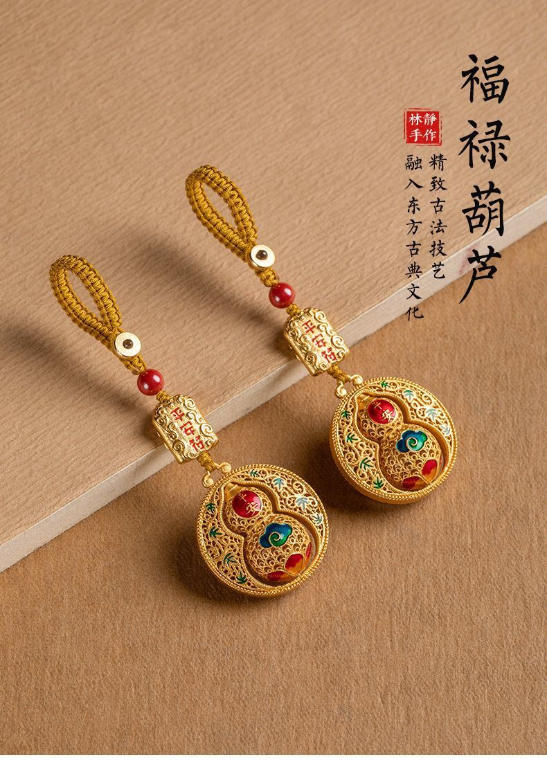 情侣款创意沙金平安葫芦钥匙扣汽车钥匙挂饰男女钥匙链福禄礼品