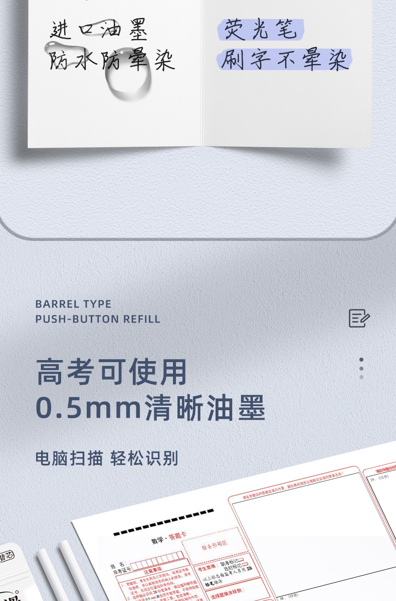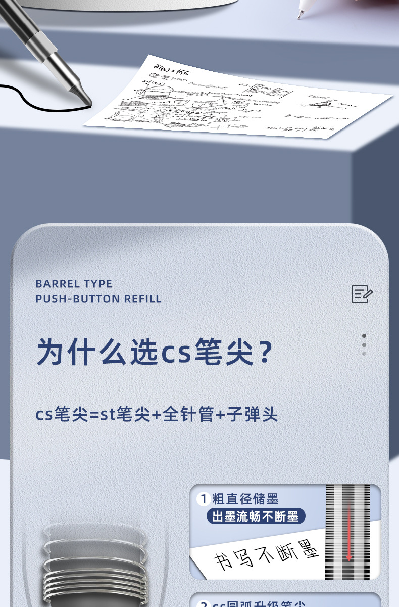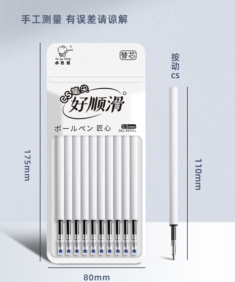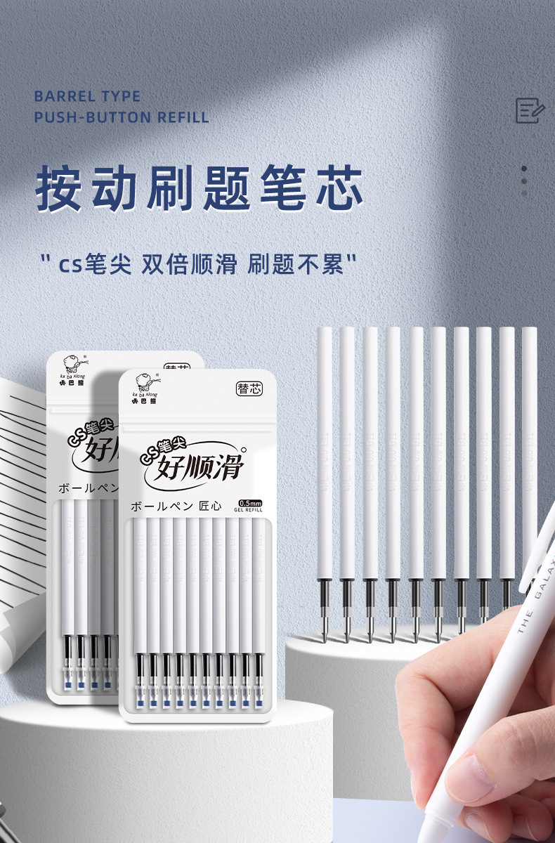学生按动中性笔笔芯cs黑色水笔大容量顺滑st替芯圆珠笔可擦笔替换