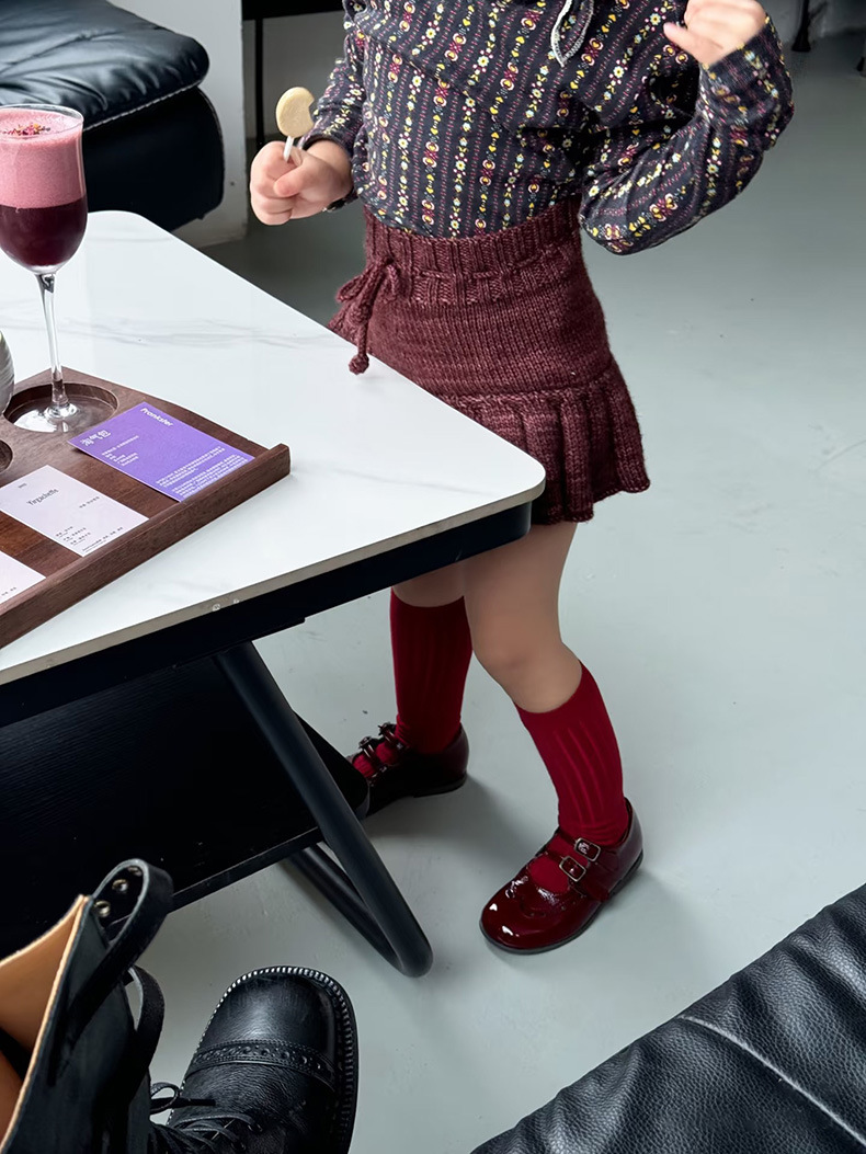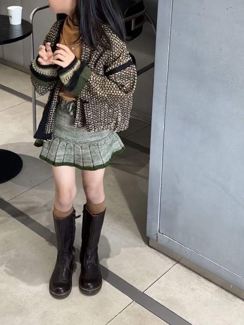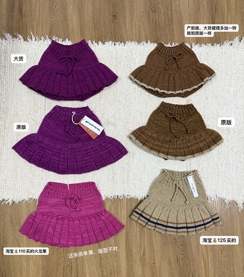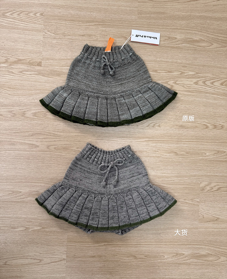MP经典针织裤裙女童秋冬季厚款百褶半身裙爆米花手工裤裙ins爆款