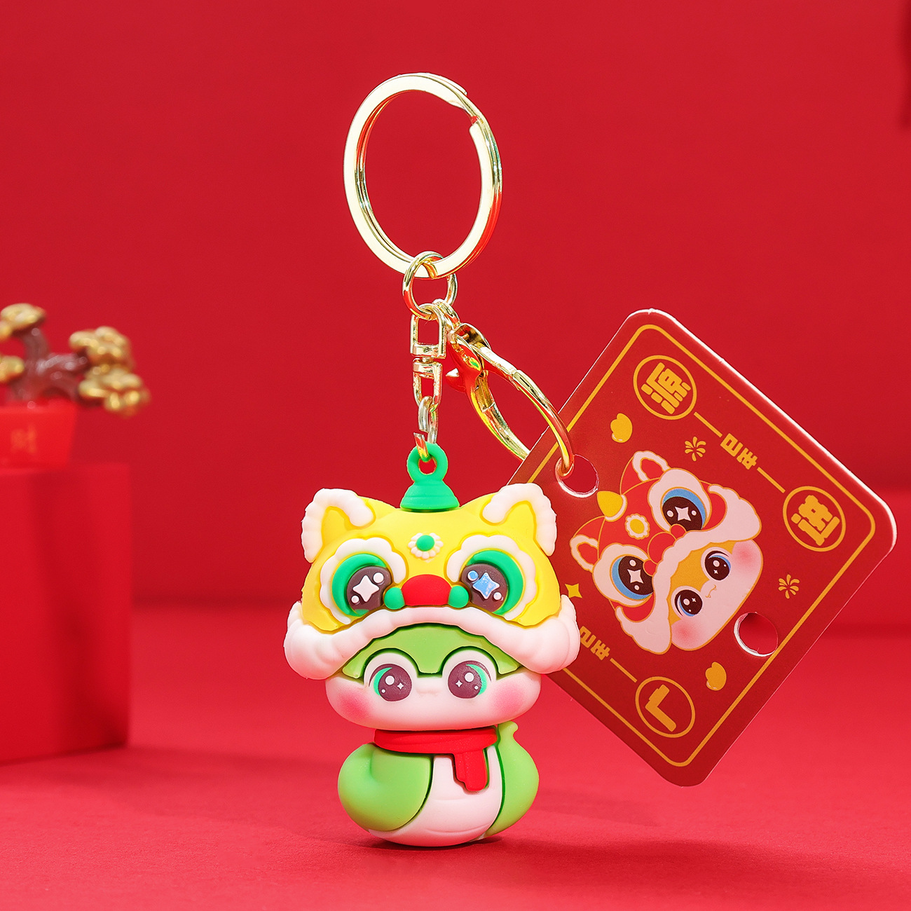 原创醒狮小蛇钥匙扣公仔挂件生肖蛇创意新年小挂饰批发蛇年小礼品