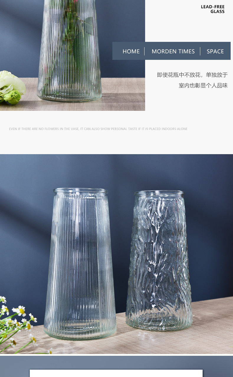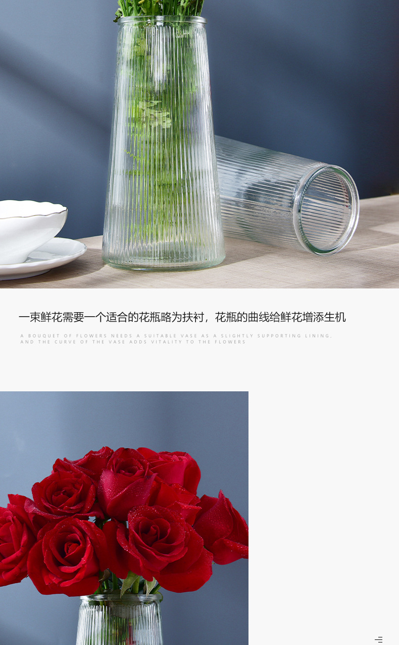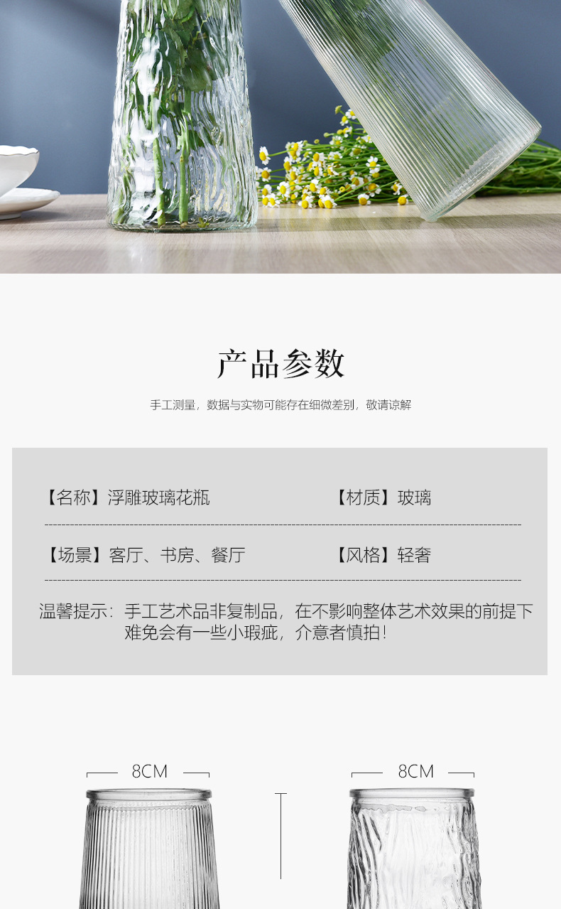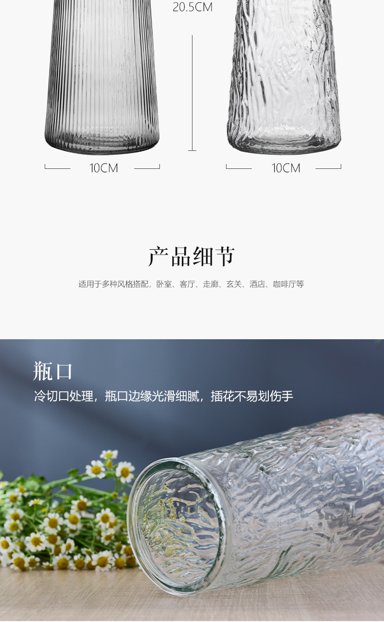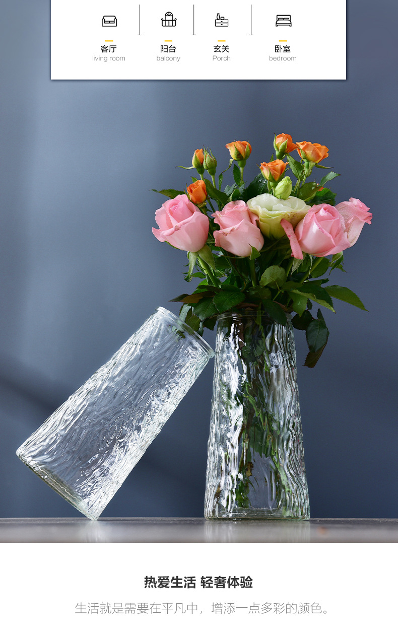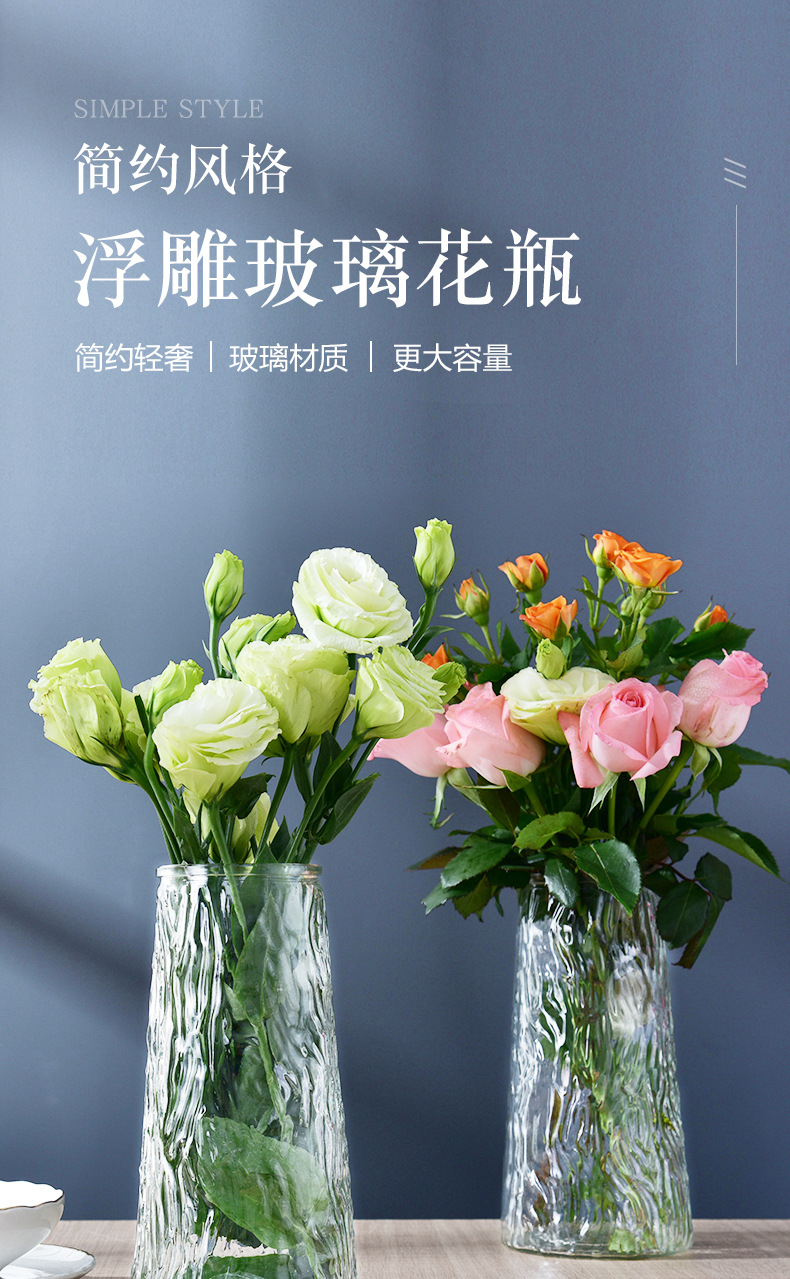 简约透明玻璃花瓶桌面插花水养干花鲜花花瓶ins风高颜值客厅摆件