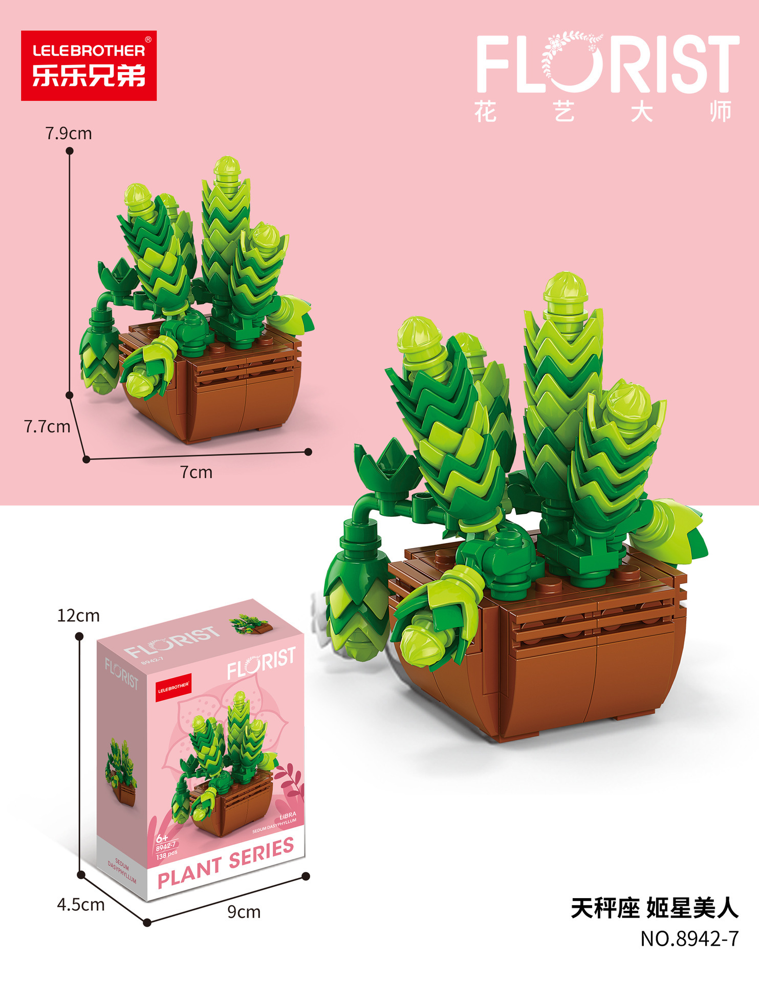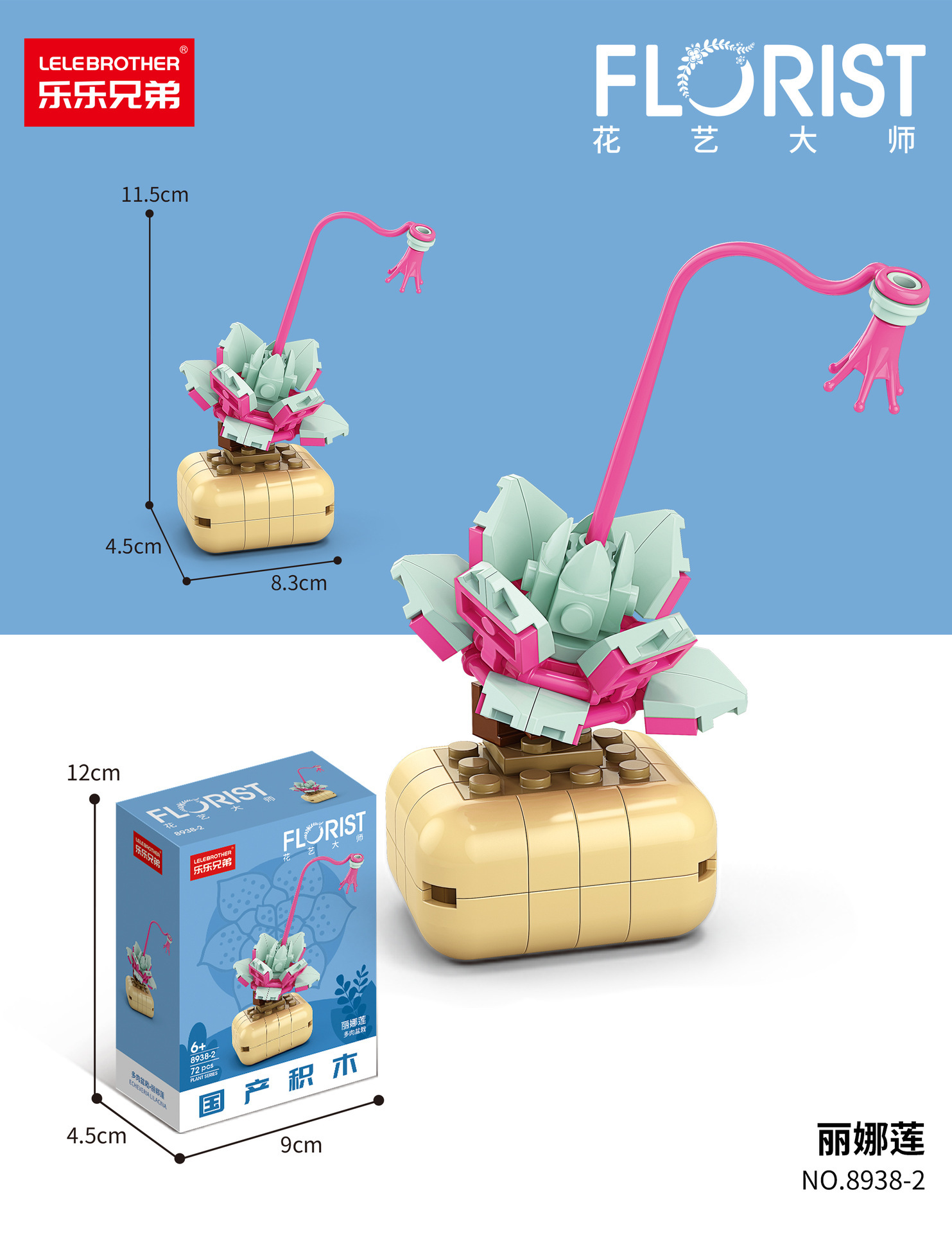 多肉小颗粒积木兼容乐高拼装积木花植物盆栽摆件女孩送礼礼物礼品