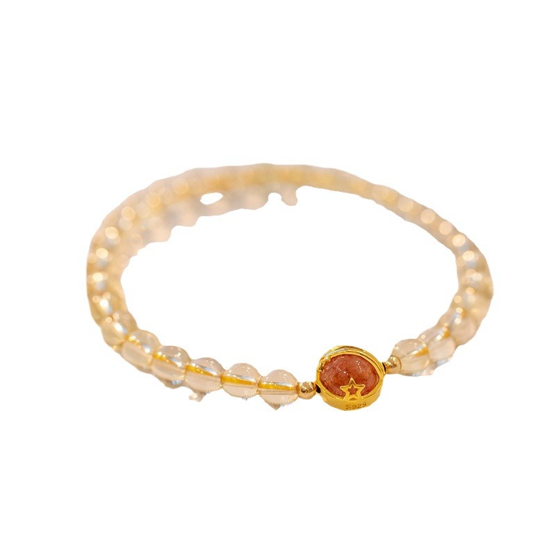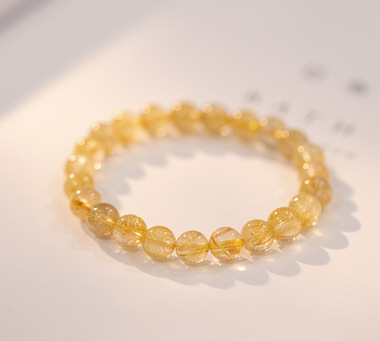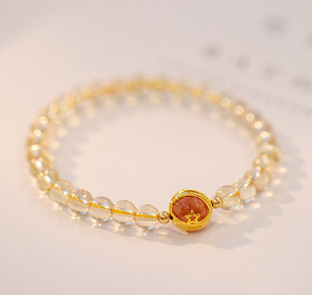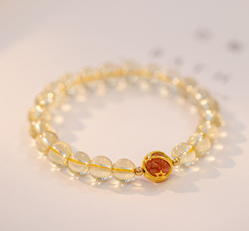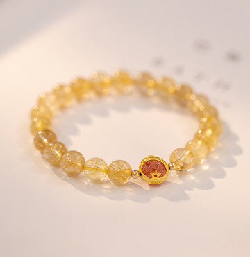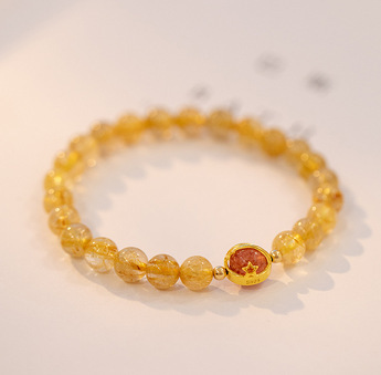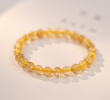 黄水晶天然金发晶手串珠手链女合金手饰代发