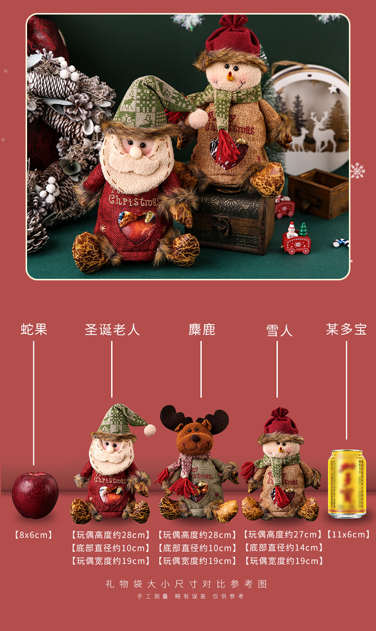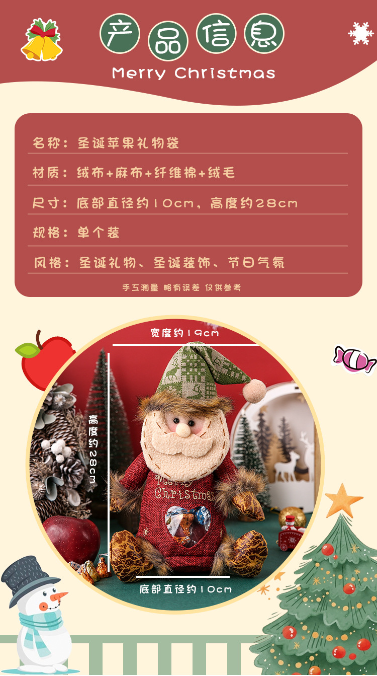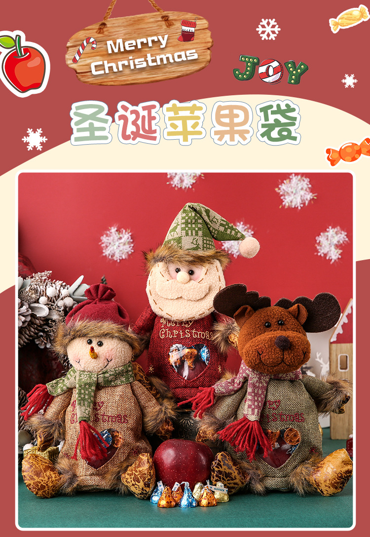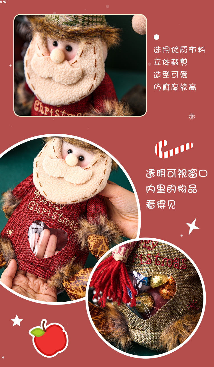 ins圣诞节装饰苹果袋圣诞老人公仔摆件精致收纳糖果袋平安夜礼物