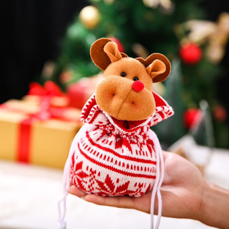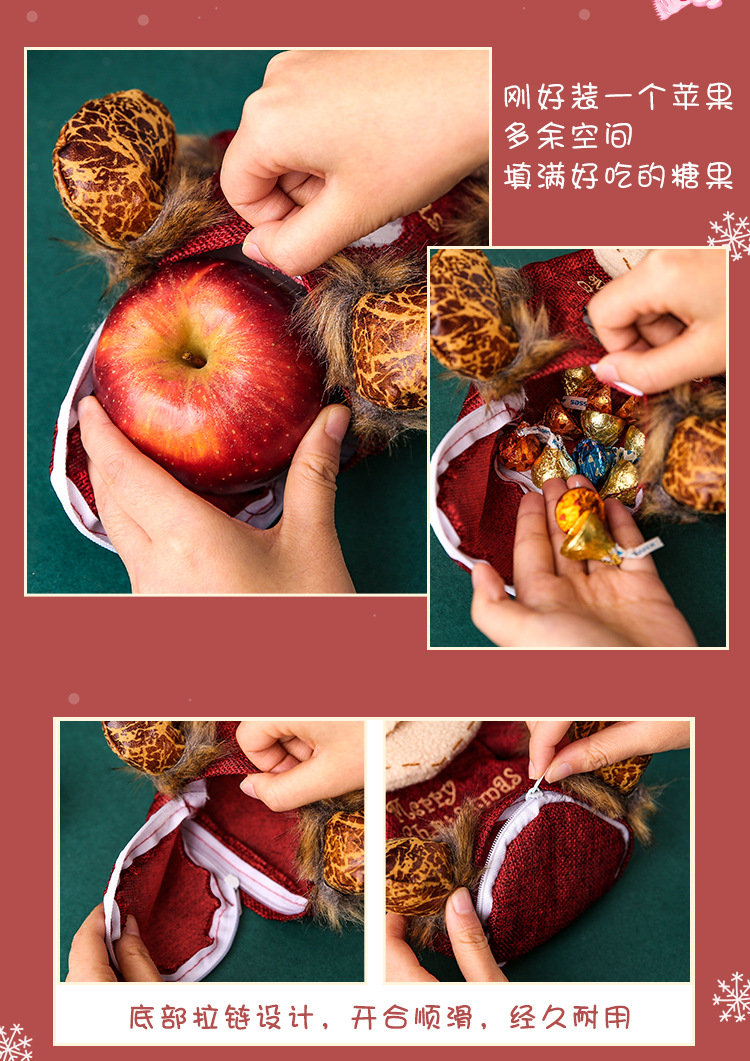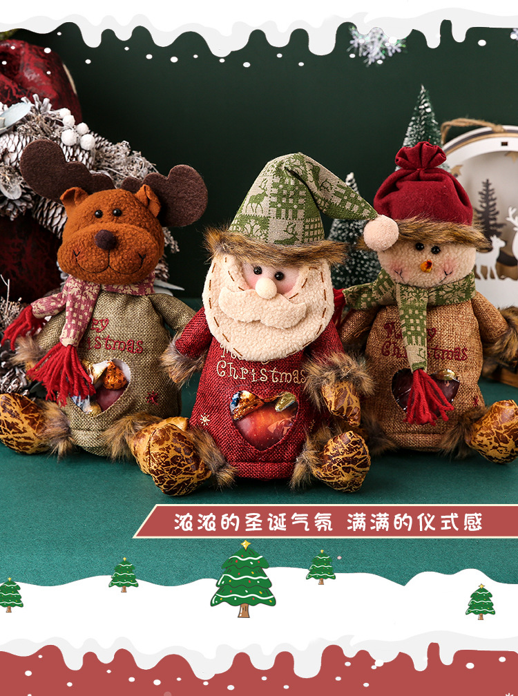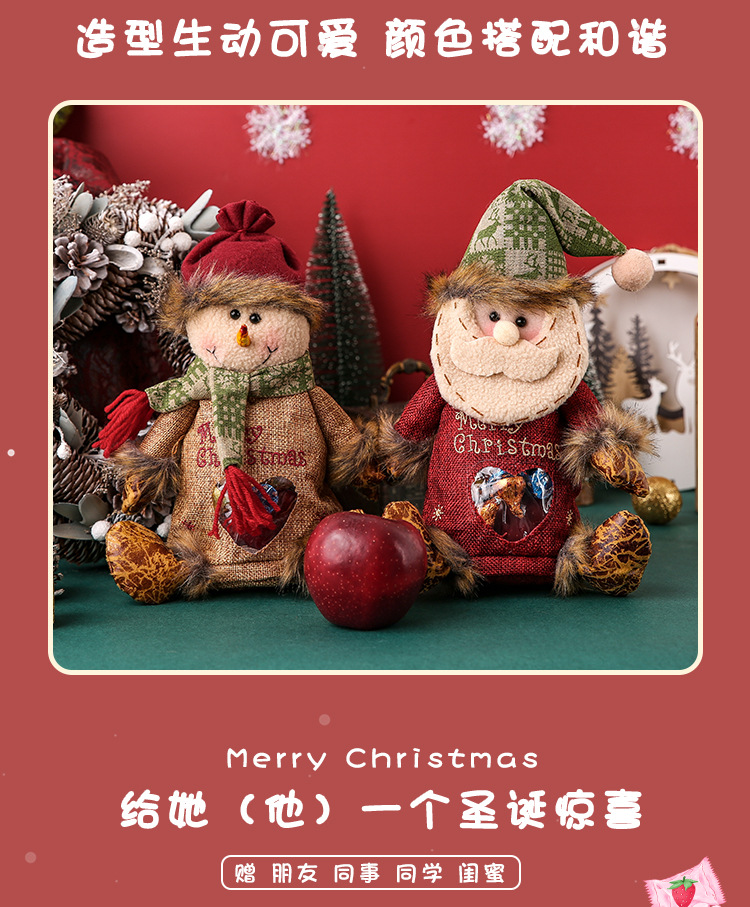 ins圣诞节装饰苹果袋圣诞老人公仔摆件精致收纳糖果袋平安夜礼物