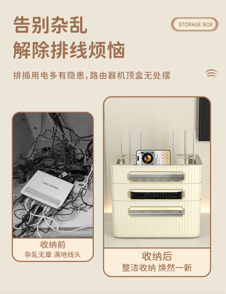 wifi路由器收纳盒电视机顶盒置物架插座电线整理神器无线光猫放置