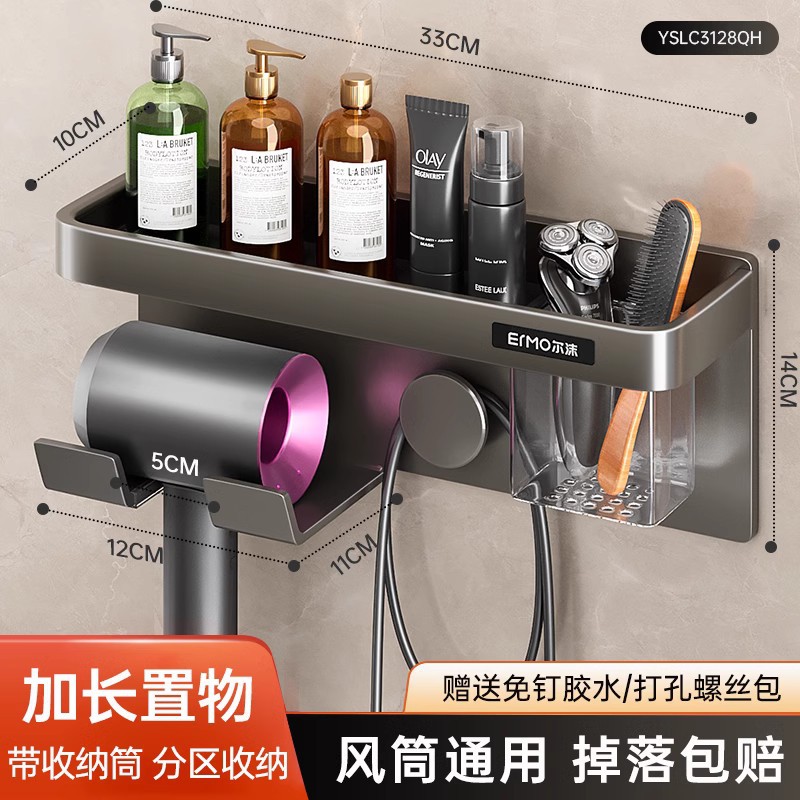 吹风机置物架免打孔卫生间壁挂式电吹风支架浴室风筒收纳架子挂架