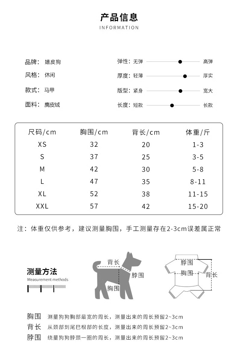 秋冬季狗狗小型犬保暖百搭麂皮绒牵引马甲猫咪夹克泰迪宠物狗衣服