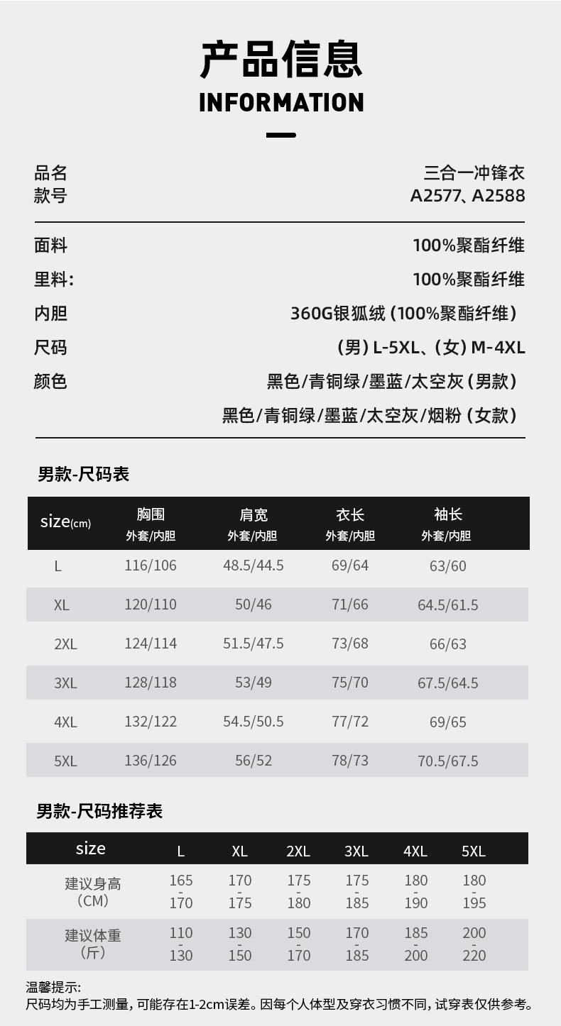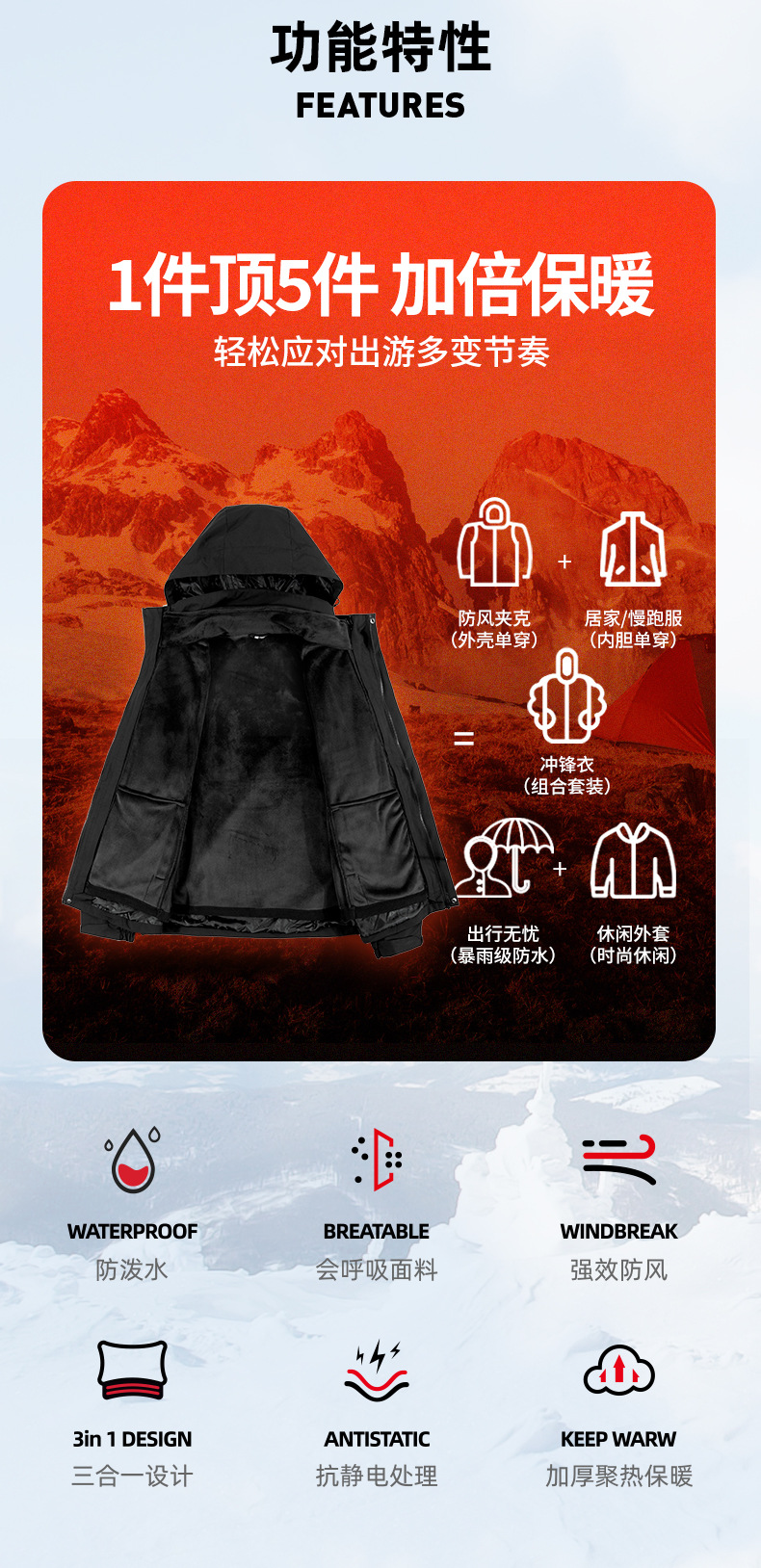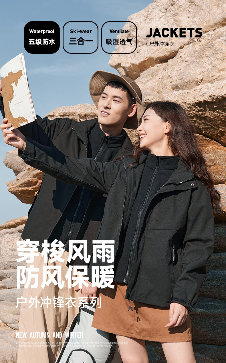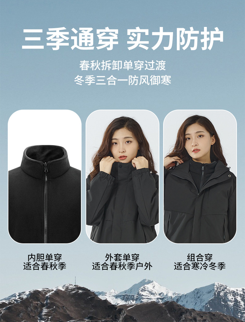 18401旅行冲锋衣三合一防泼水男女秋冬季户外防风防水工作服外套