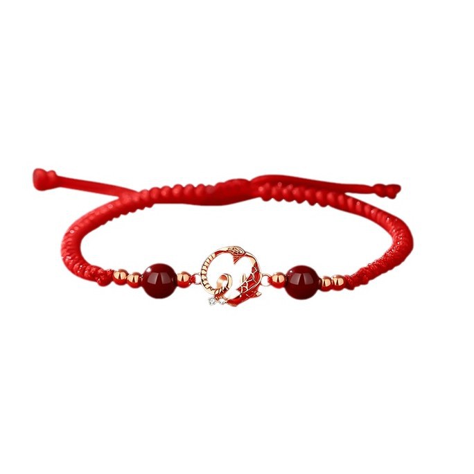 原创化蛇锦鲤红绳手绳复古国潮朱砂手链纯银新中式本命年蛇年手饰