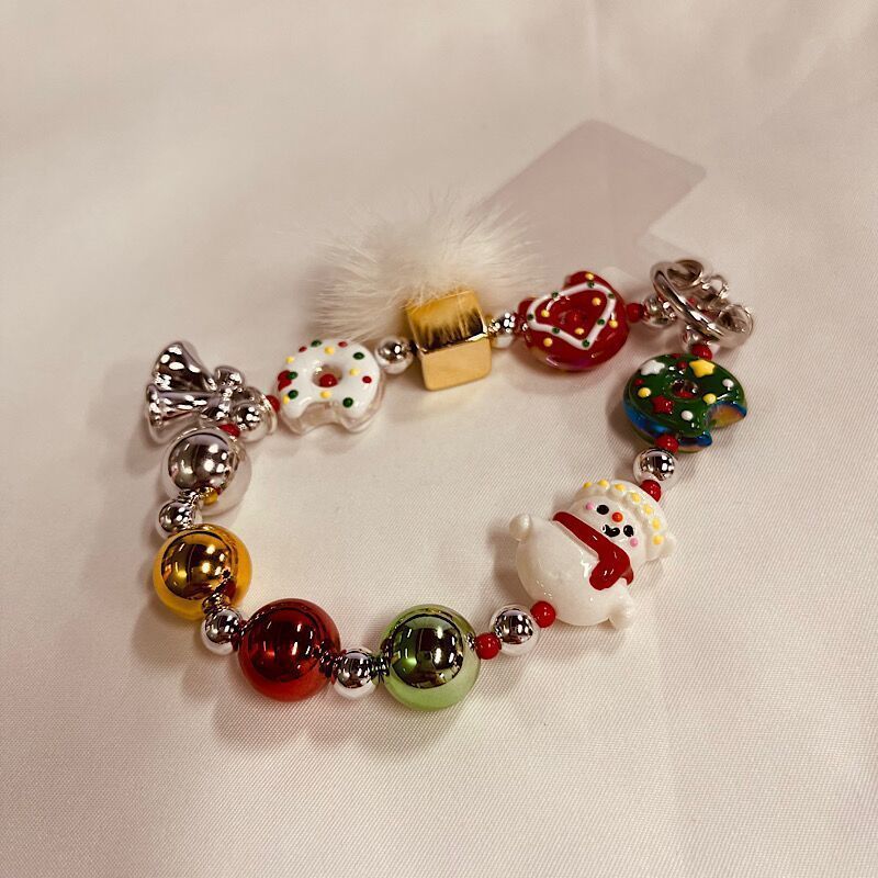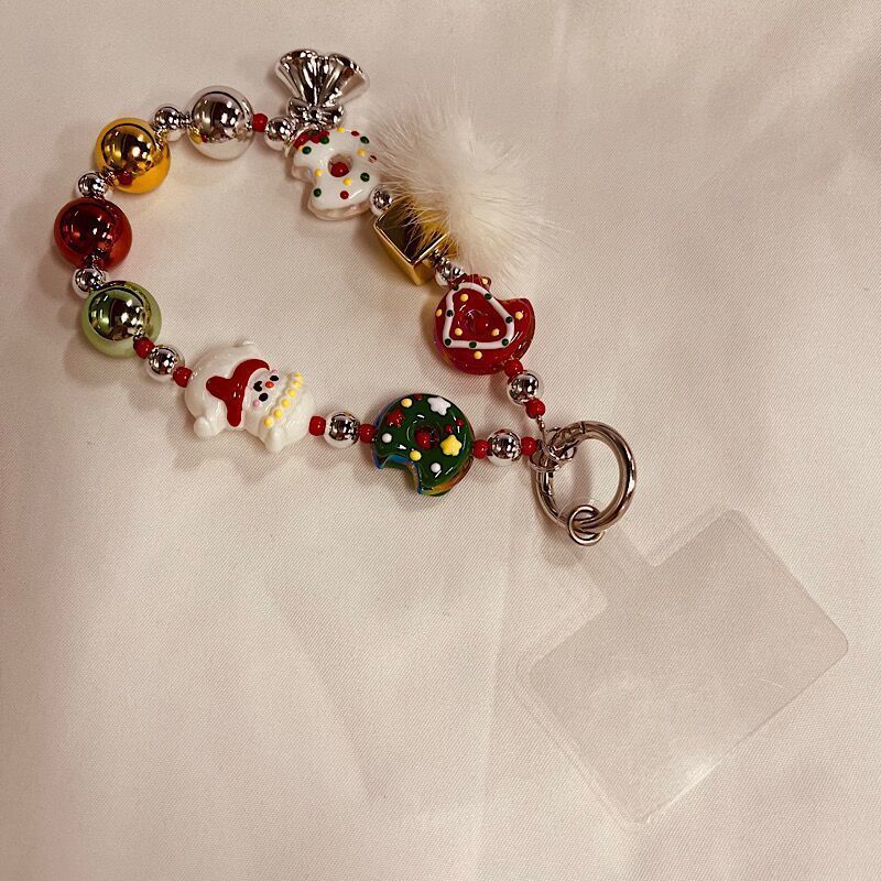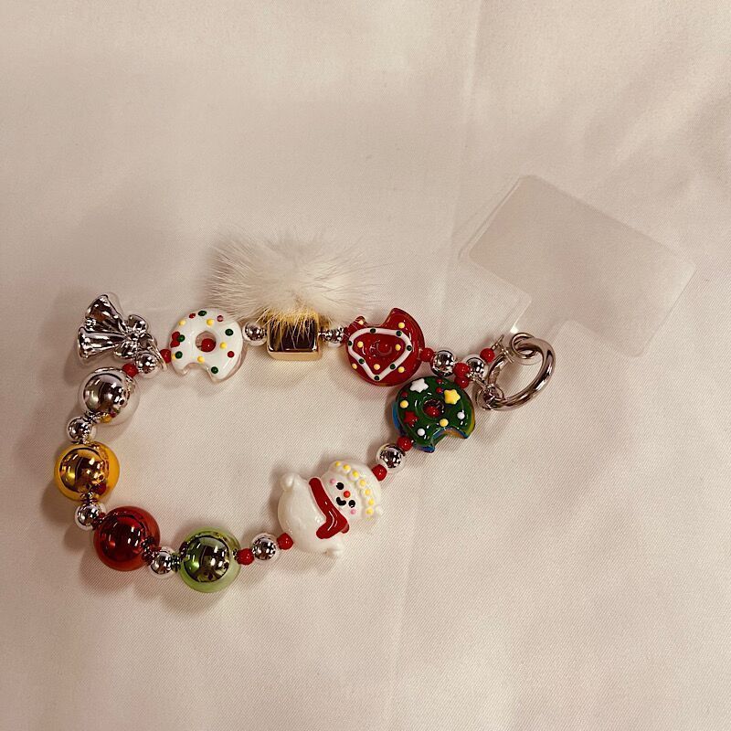原创圣诞节短款手机链串珠手工雪人创意情侣挂件礼物挂饰包包挂件