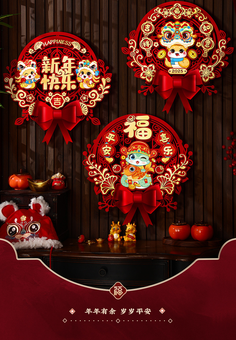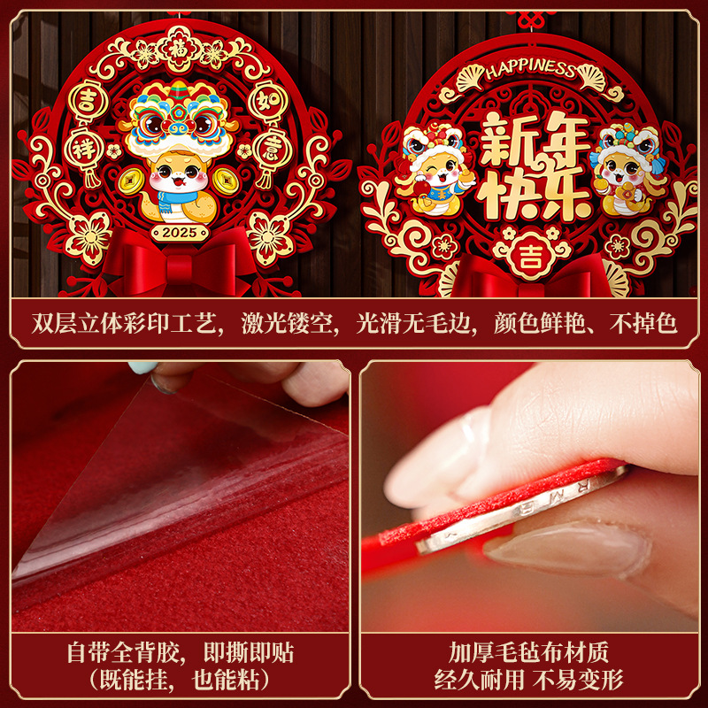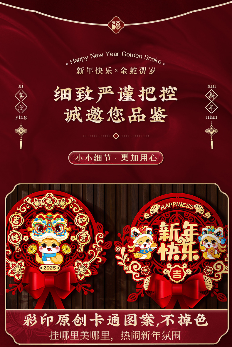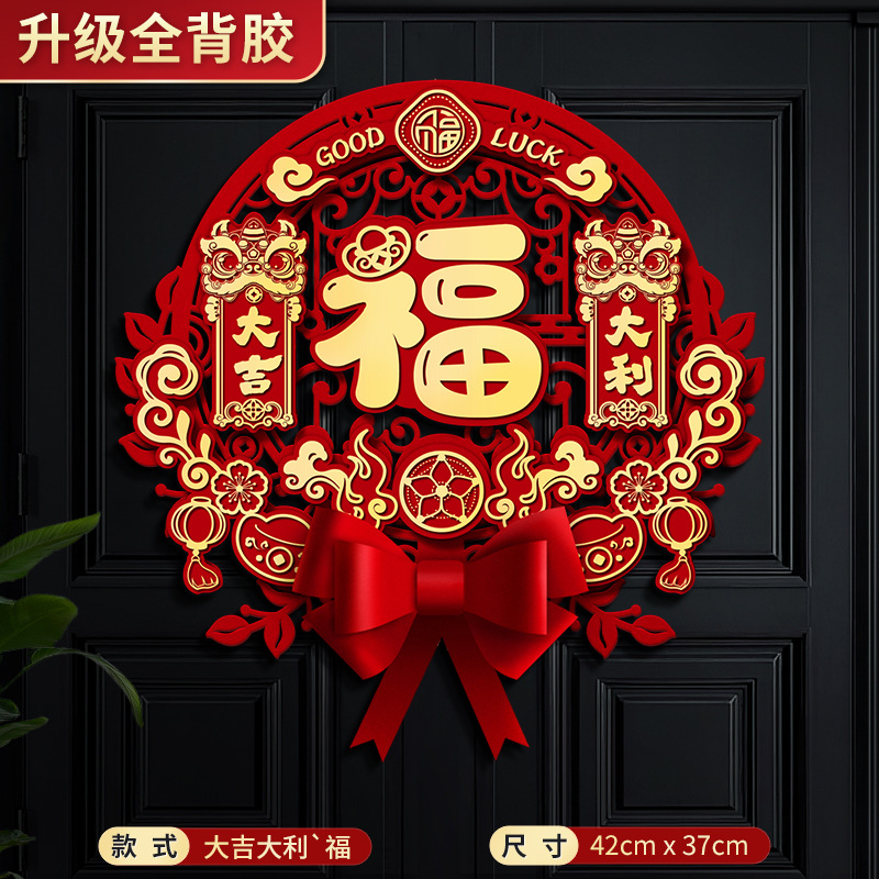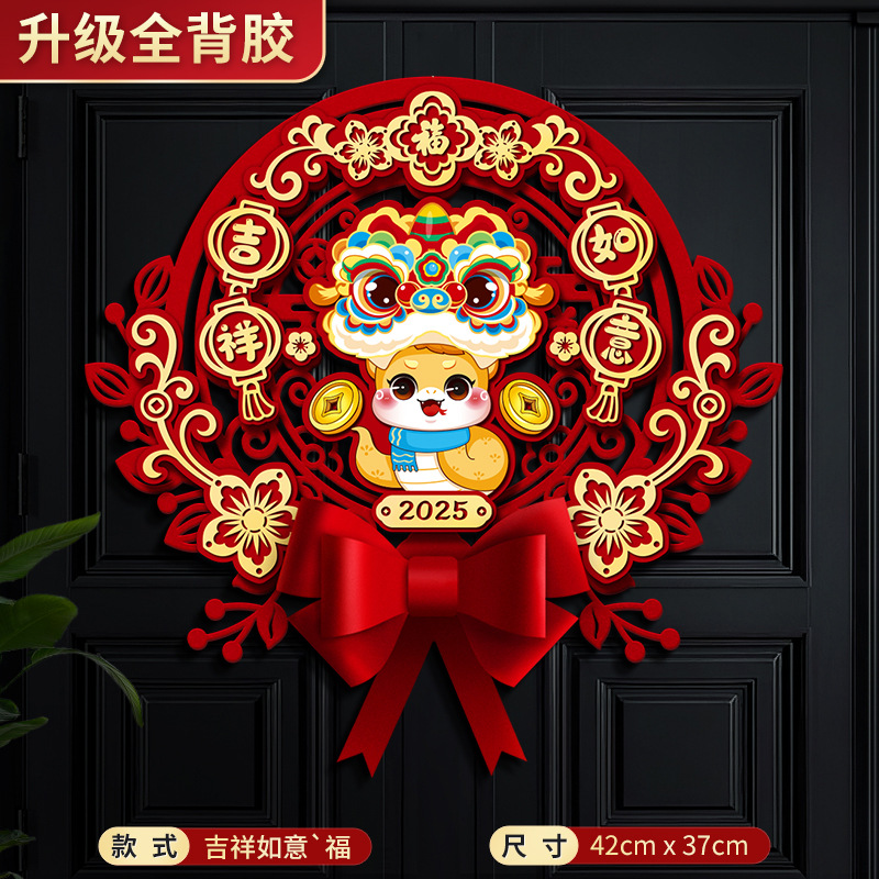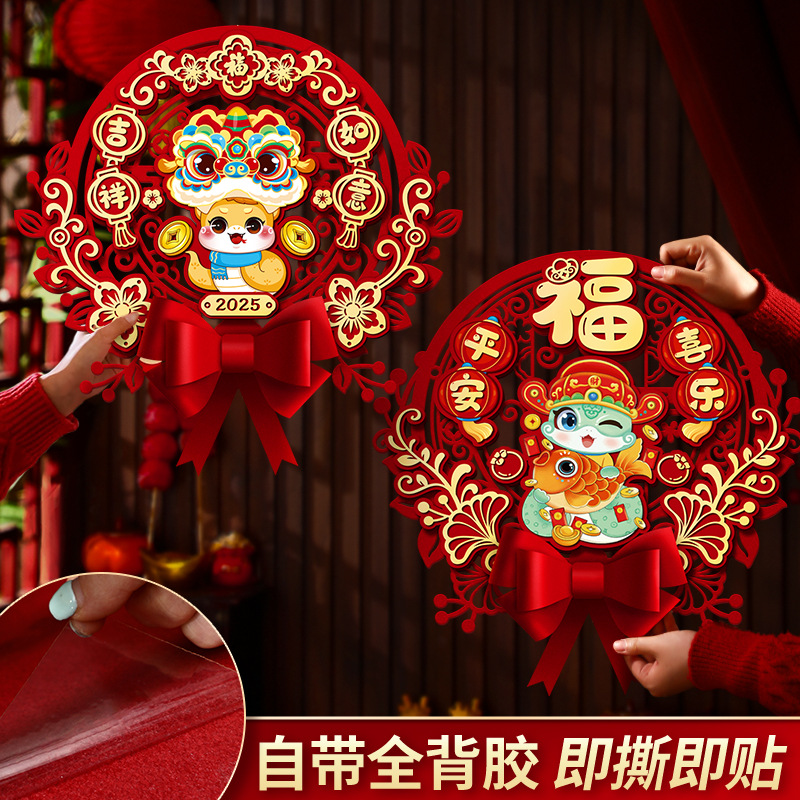 福字门贴2025蛇年新款生肖新年装饰春节过年立体自粘大门贴纸年画