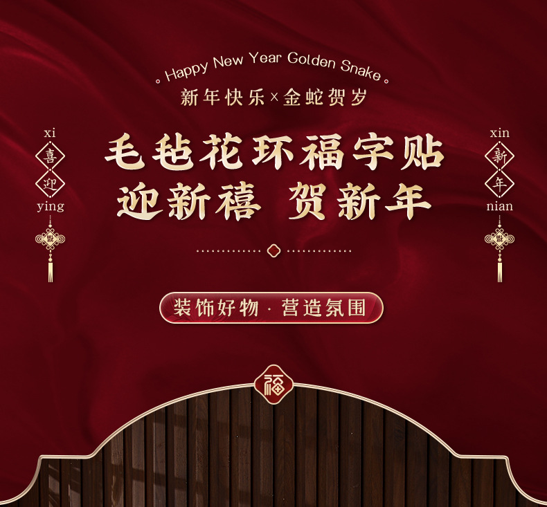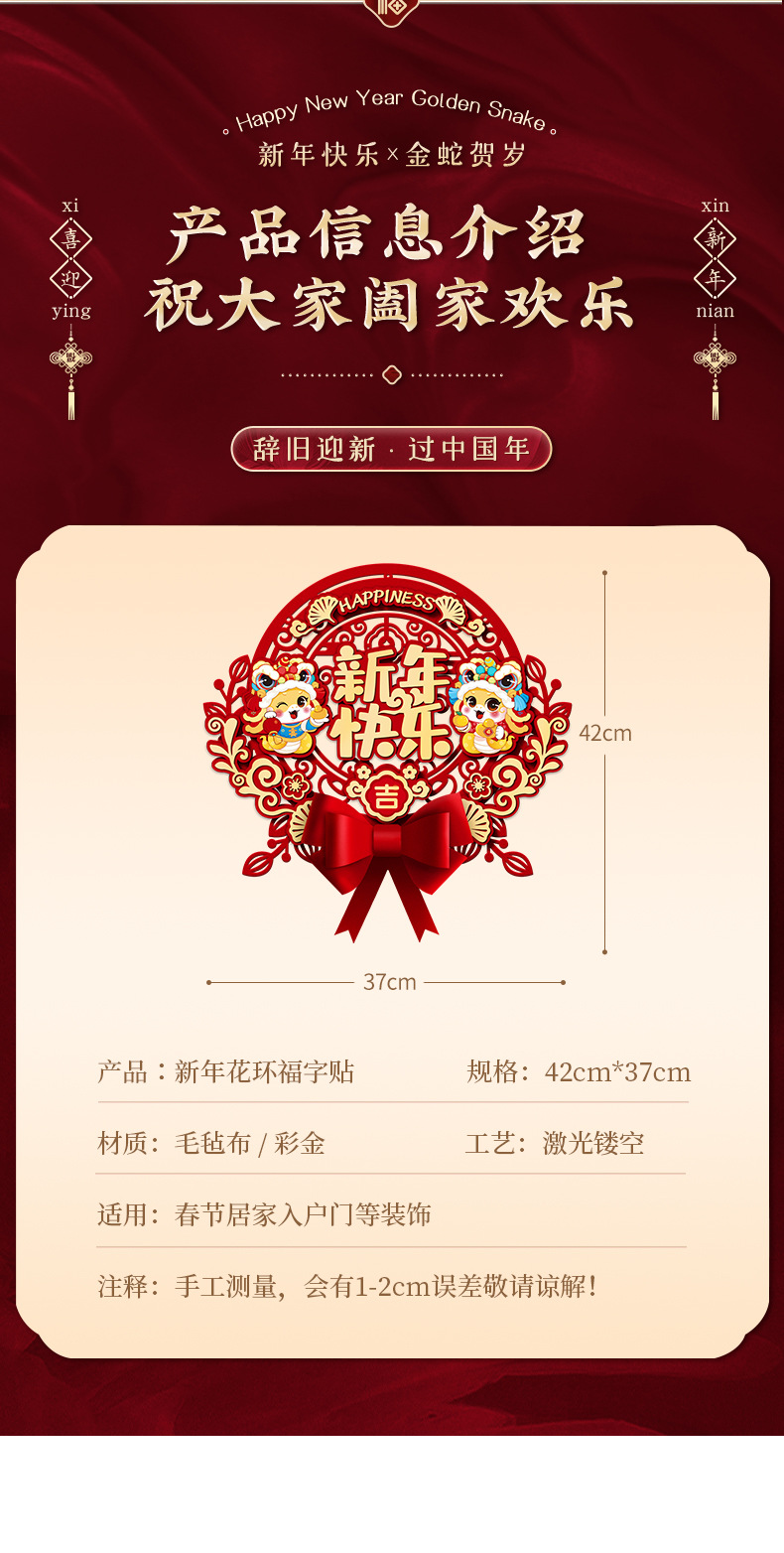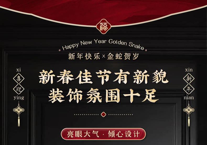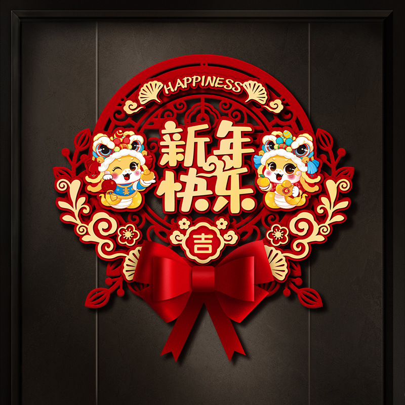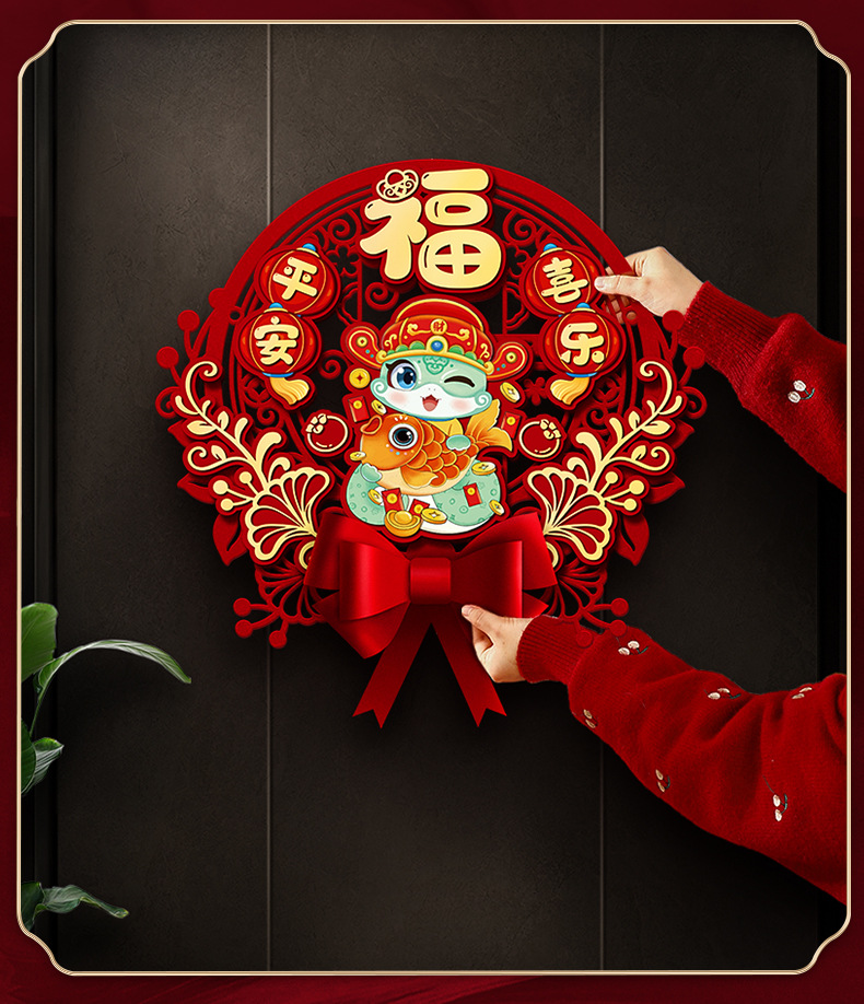 福字门贴2025蛇年新款生肖新年装饰春节过年立体自粘大门贴纸年画