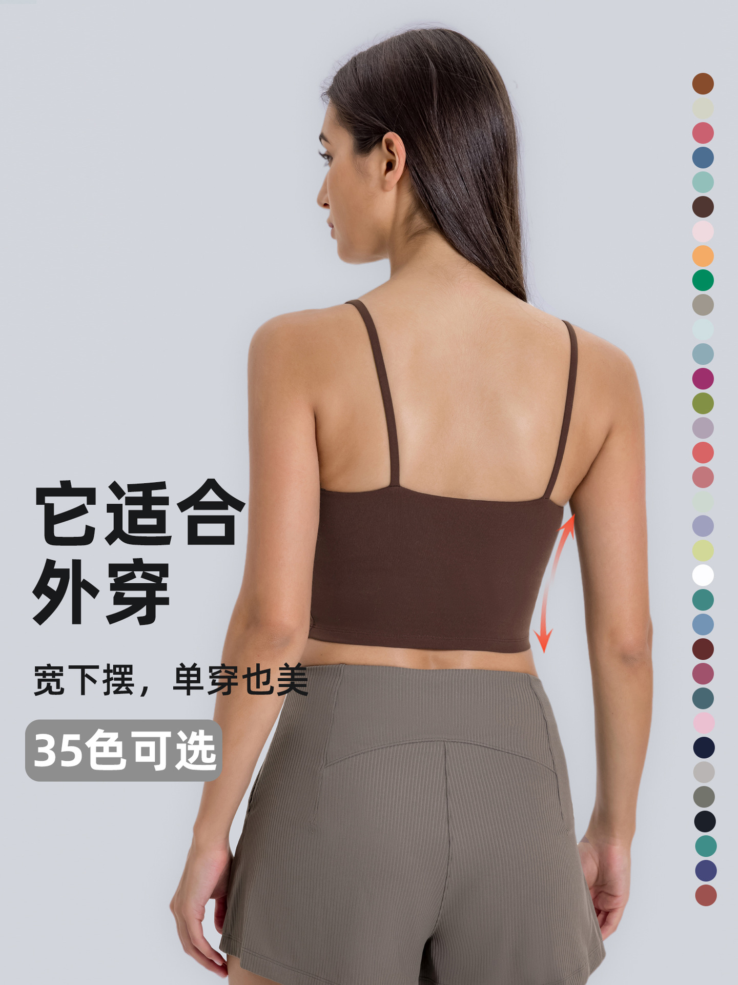 新款瑜伽上衣女运动内衣带胸垫细带美背健身背心吊带瑜伽服C5238