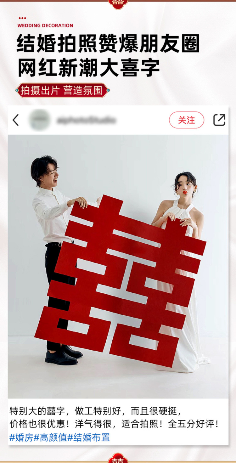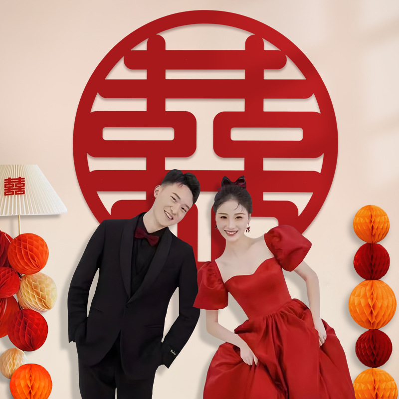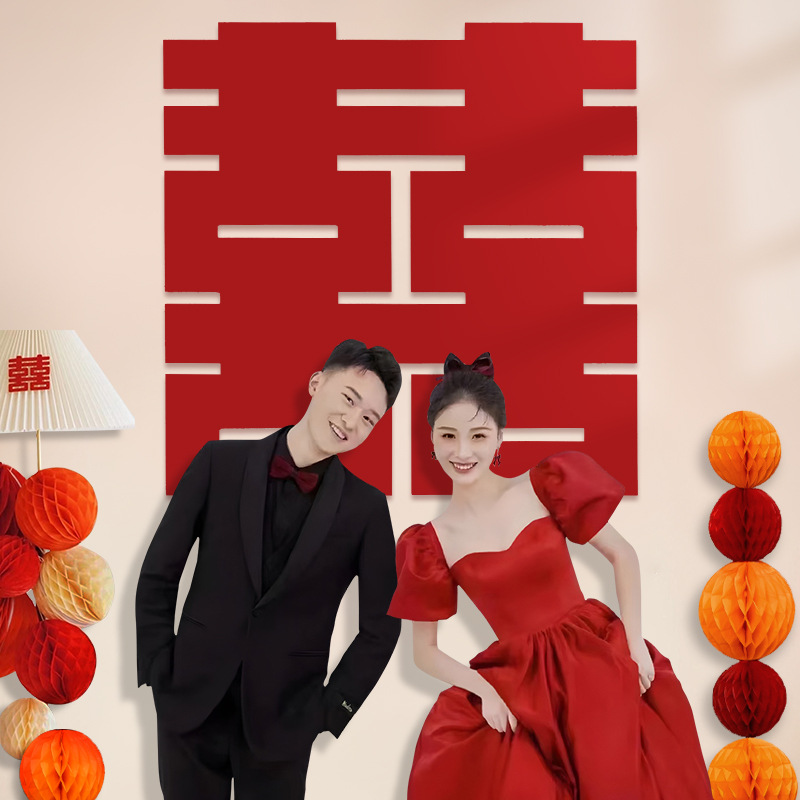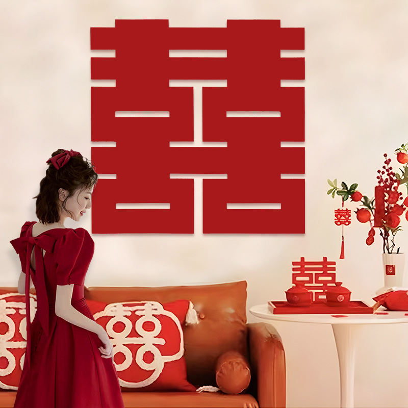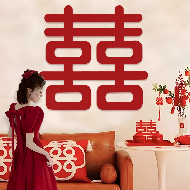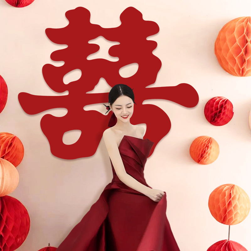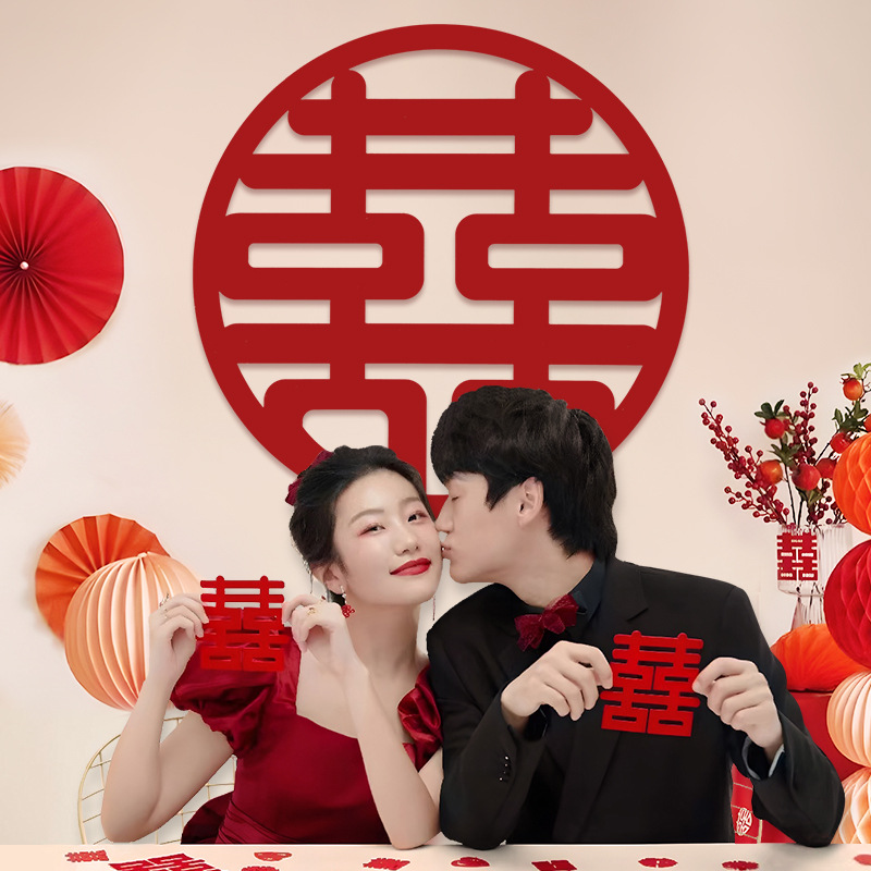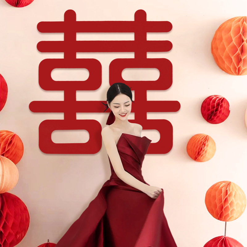 2024超大喜字结婚婚房布置无纺布套装婚礼订婚喜字贴婚庆拍照装饰