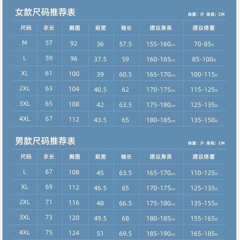 | 男款3XL【155-165斤】 | USD $0.0 | 2476 piece available |