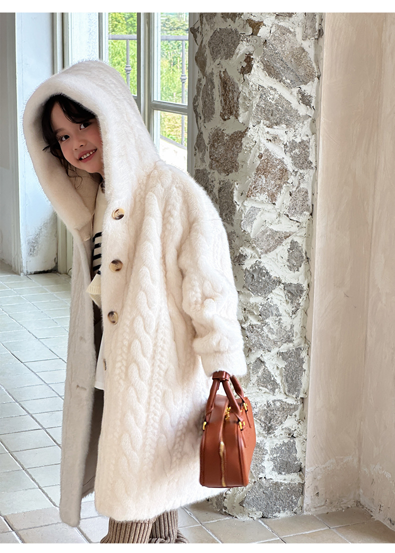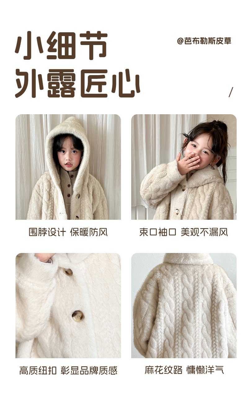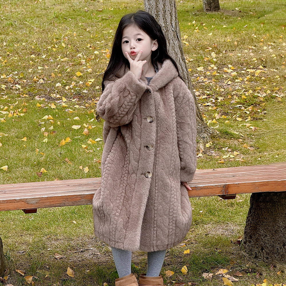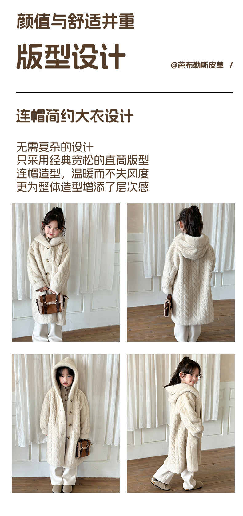 2024新女童皮草外套宝宝加厚水貂绒环保皮毛一体大衣儿童冬季外套