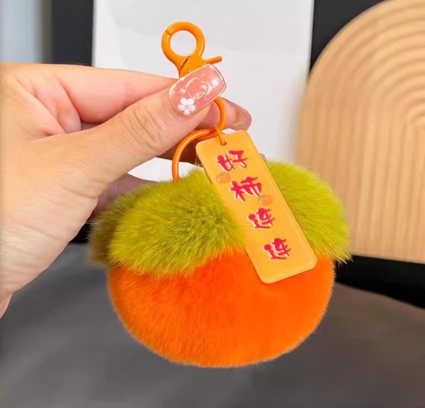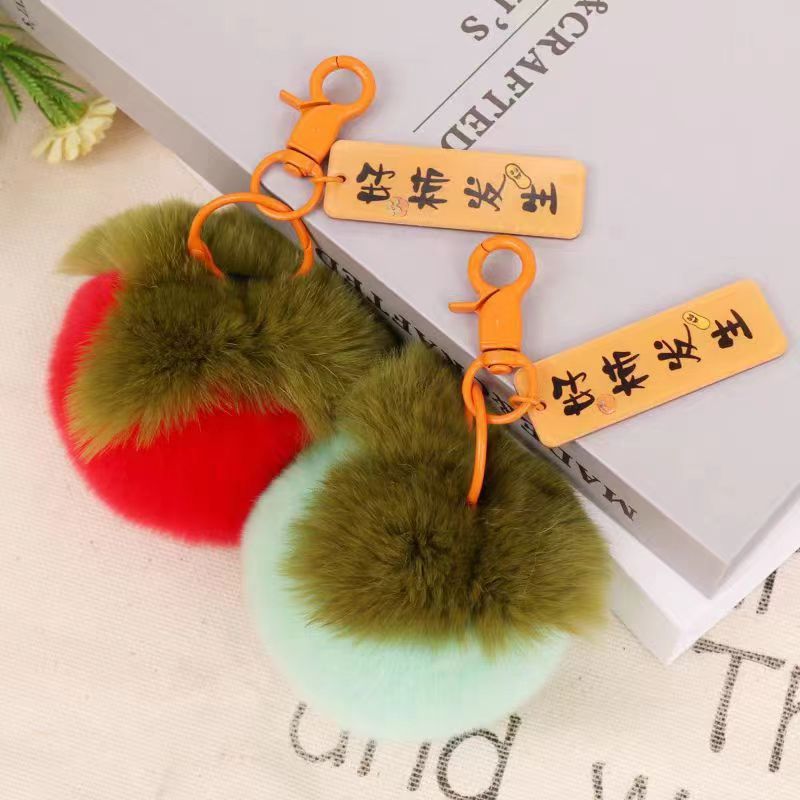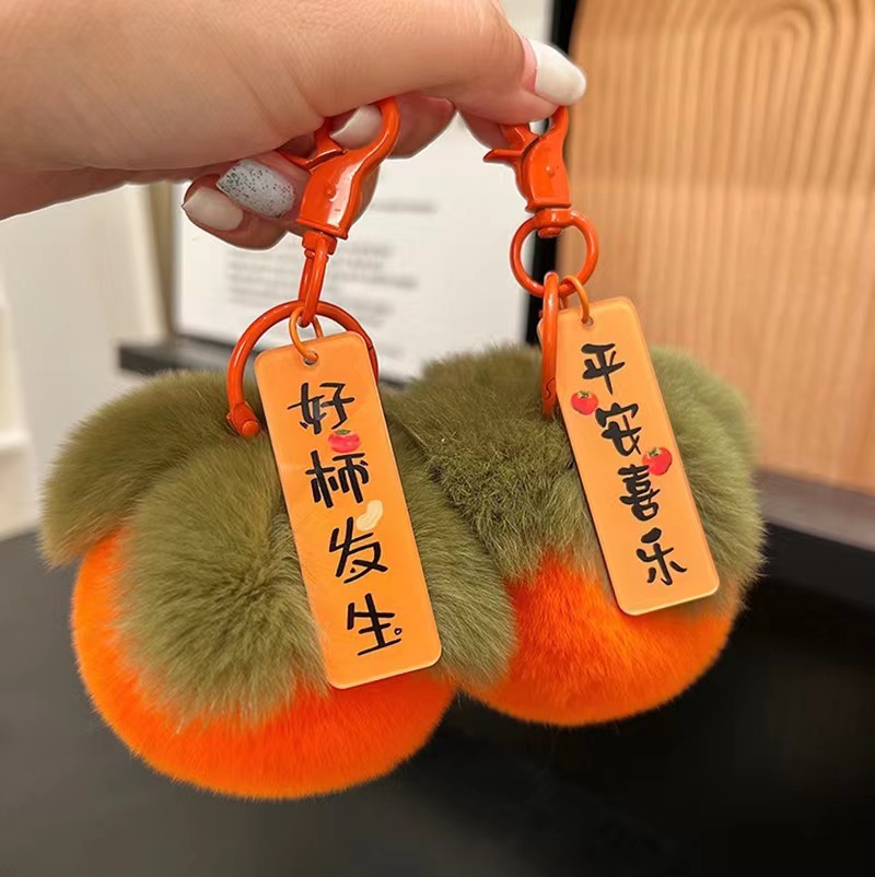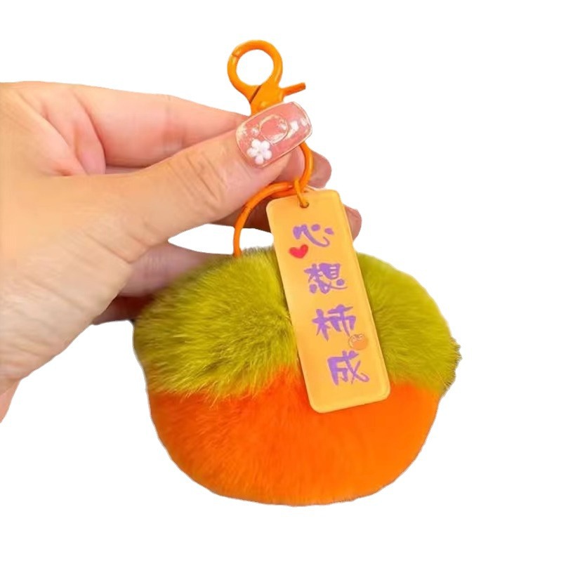 热销獭兔毛好事发生挂件小柿子汽车钥匙扣超可爱毛绒包包挂饰批发