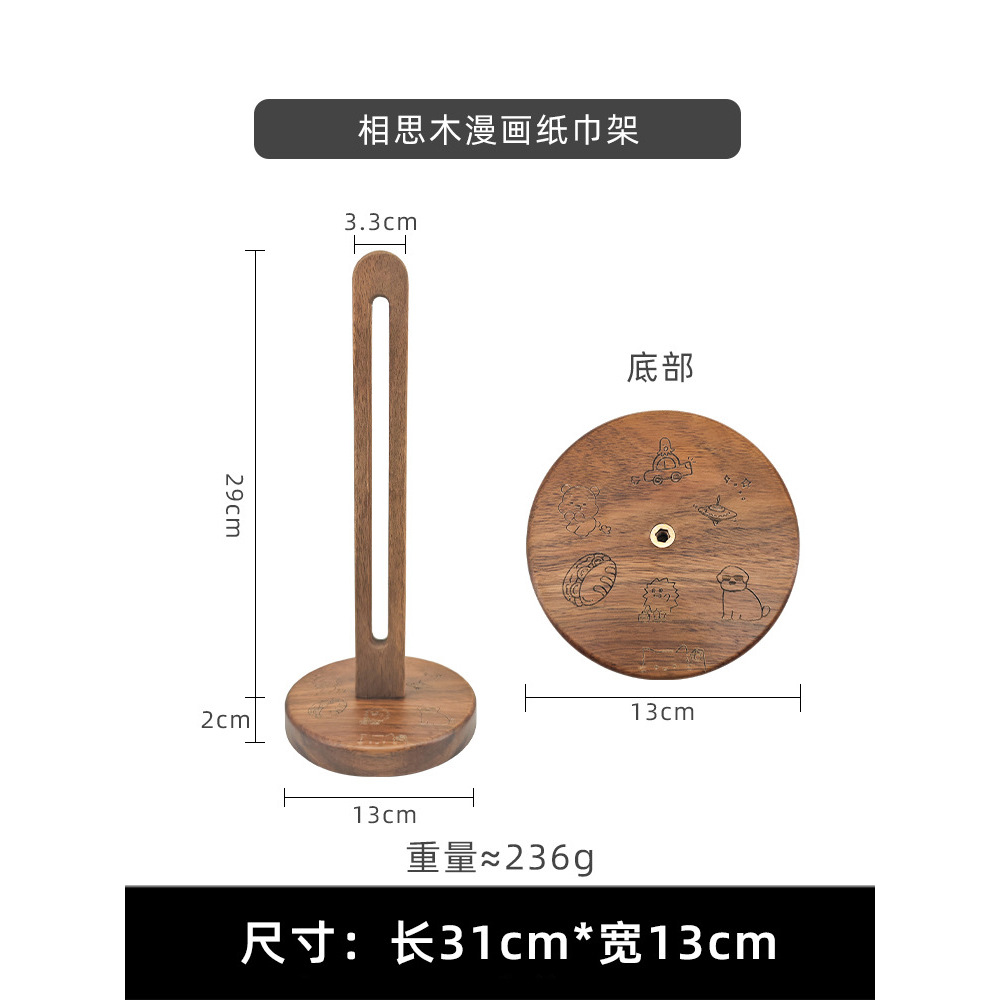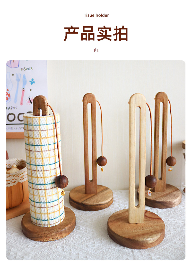 实木厨房纸巾架免打孔木质卷纸架保鲜膜收纳架立式抹布懒人置物架