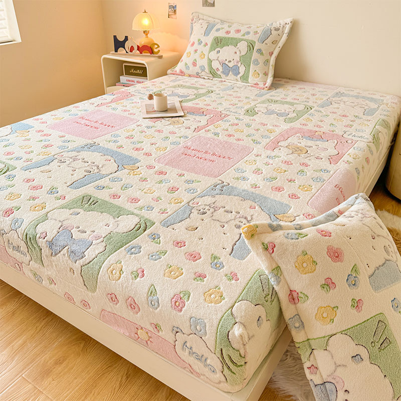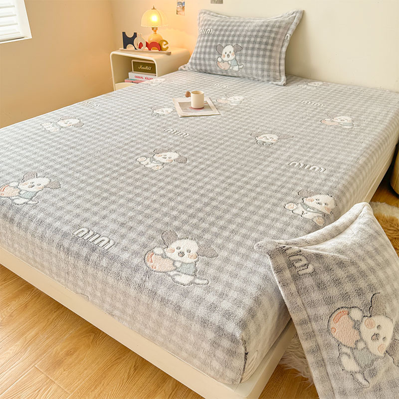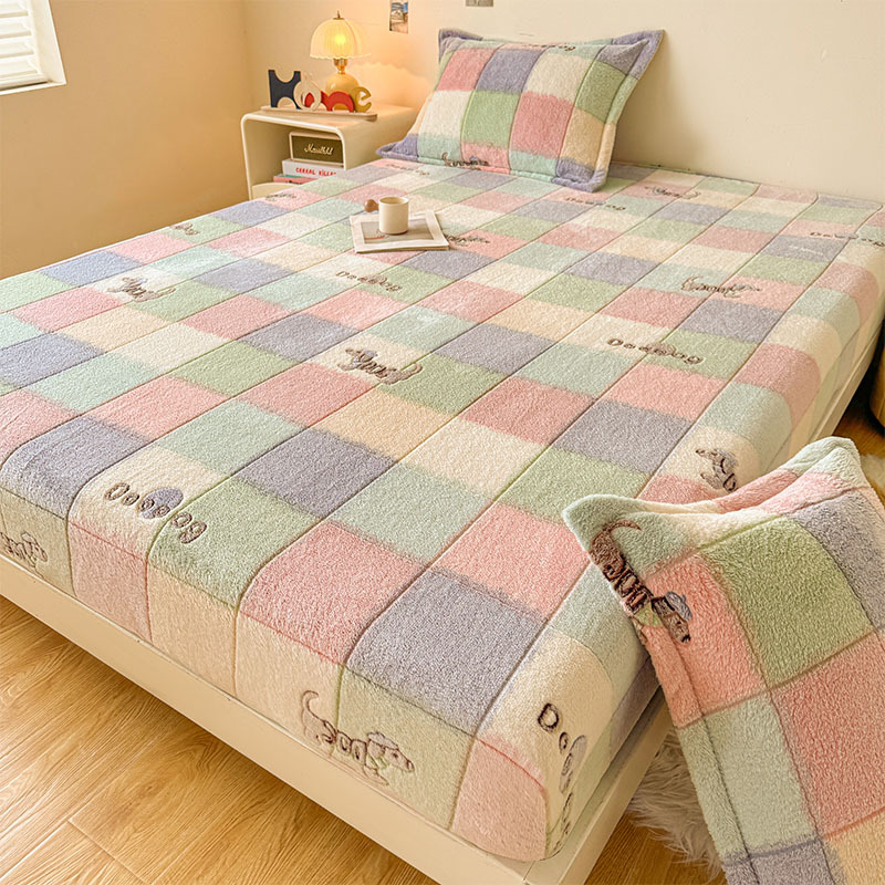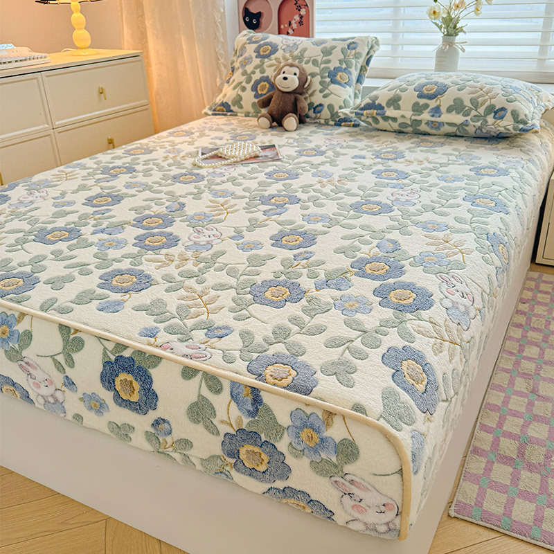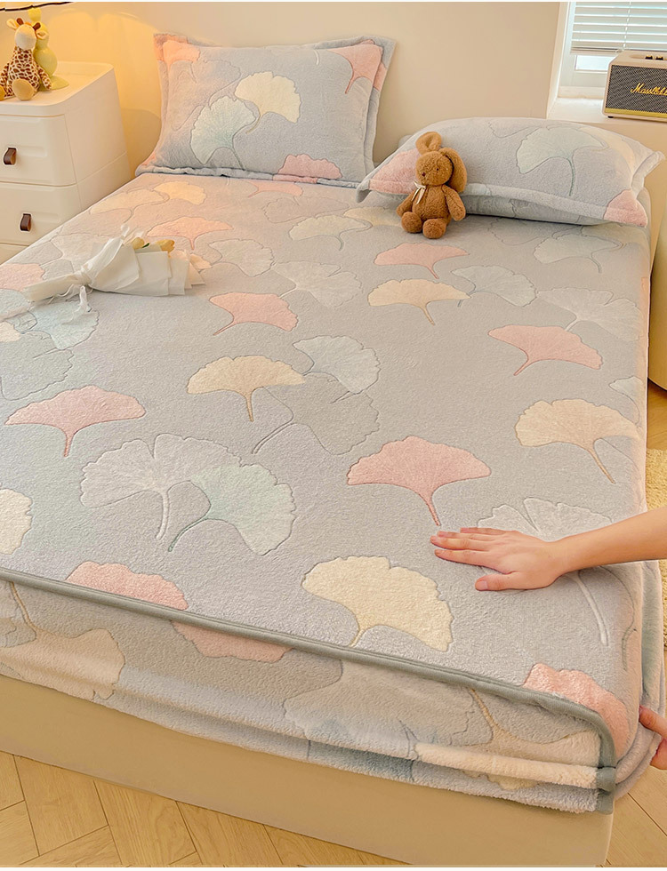 秋冬床笠三件套冬季加绒加厚床罩牛奶绒床垫磨毛珊瑚绒床单单件