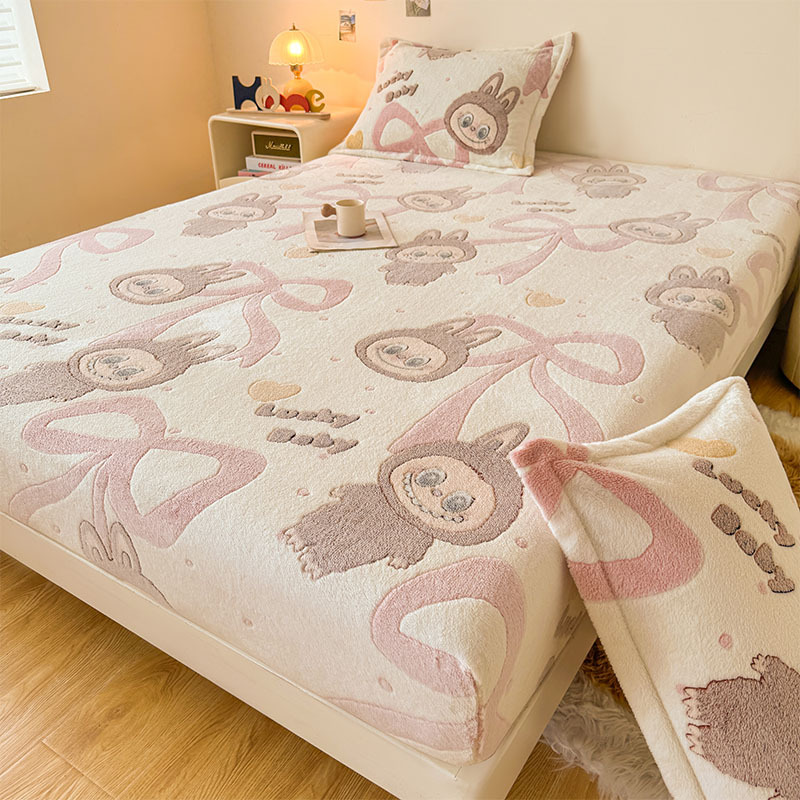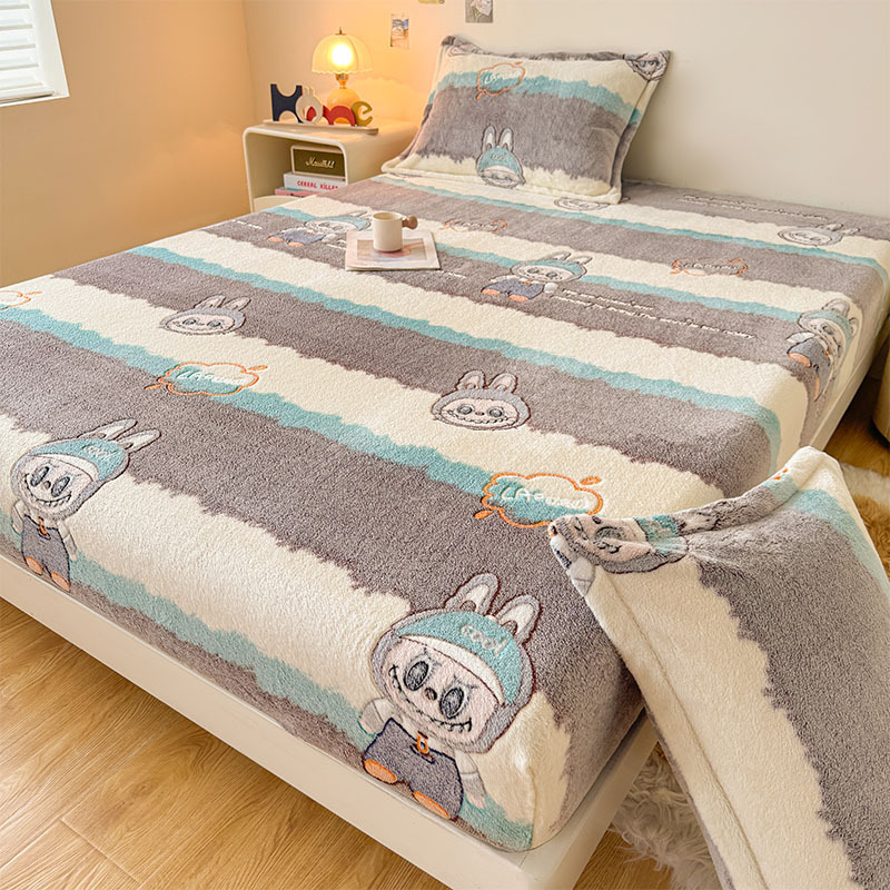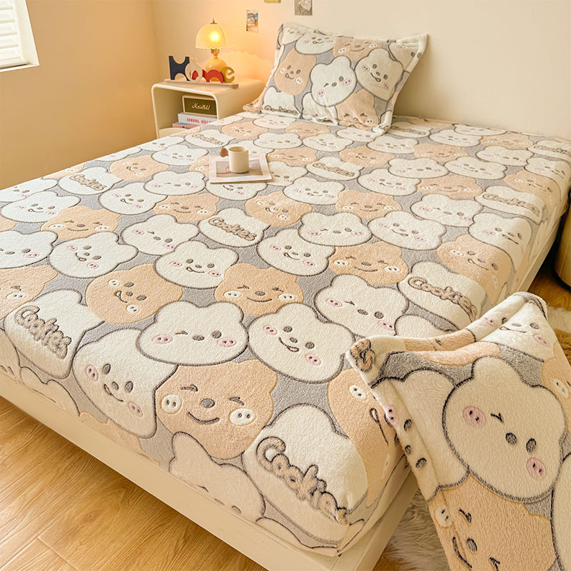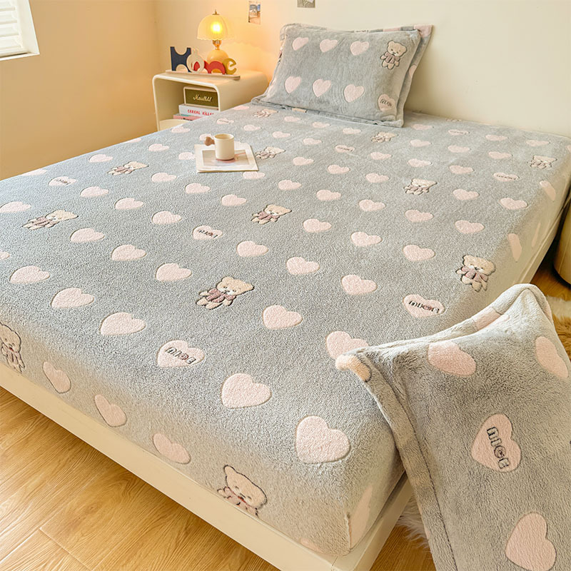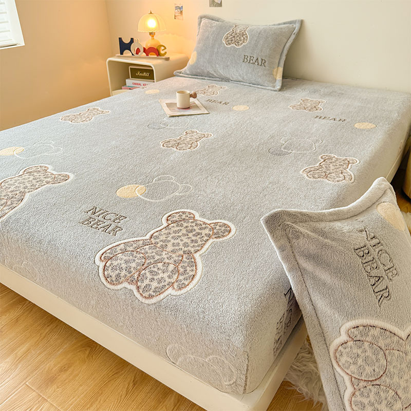 秋冬床笠三件套冬季加绒加厚床罩牛奶绒床垫磨毛珊瑚绒床单单件