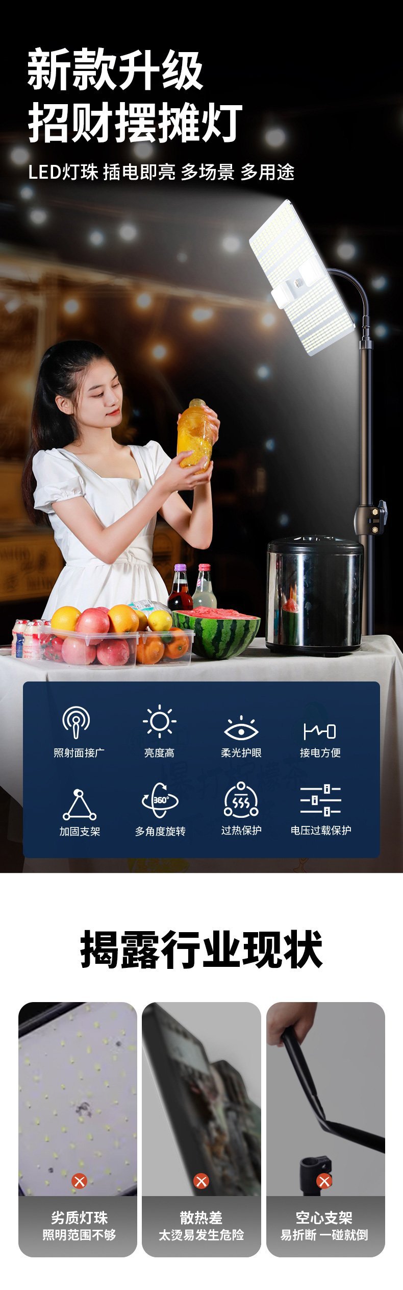 超亮12v灯led灯地摊夜市灯充电摆摊专用照明灯应急电瓶户外露营灯