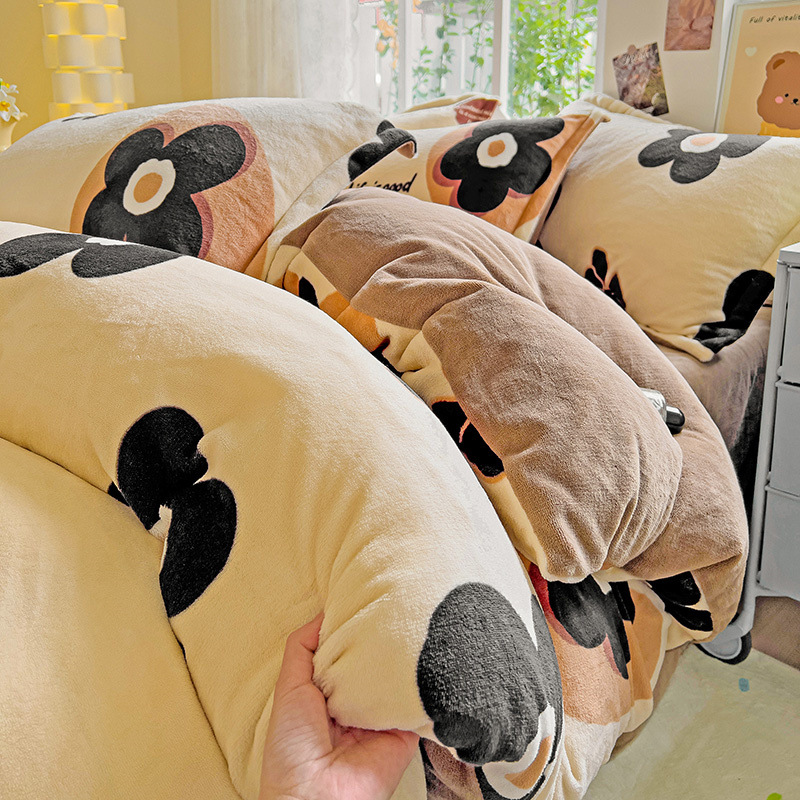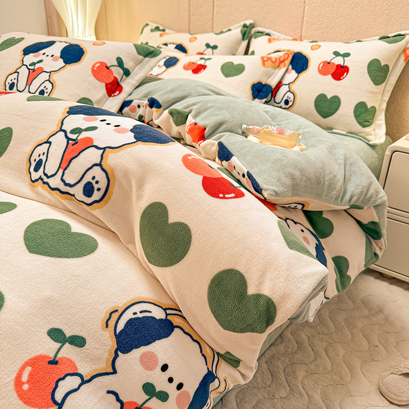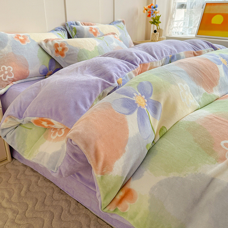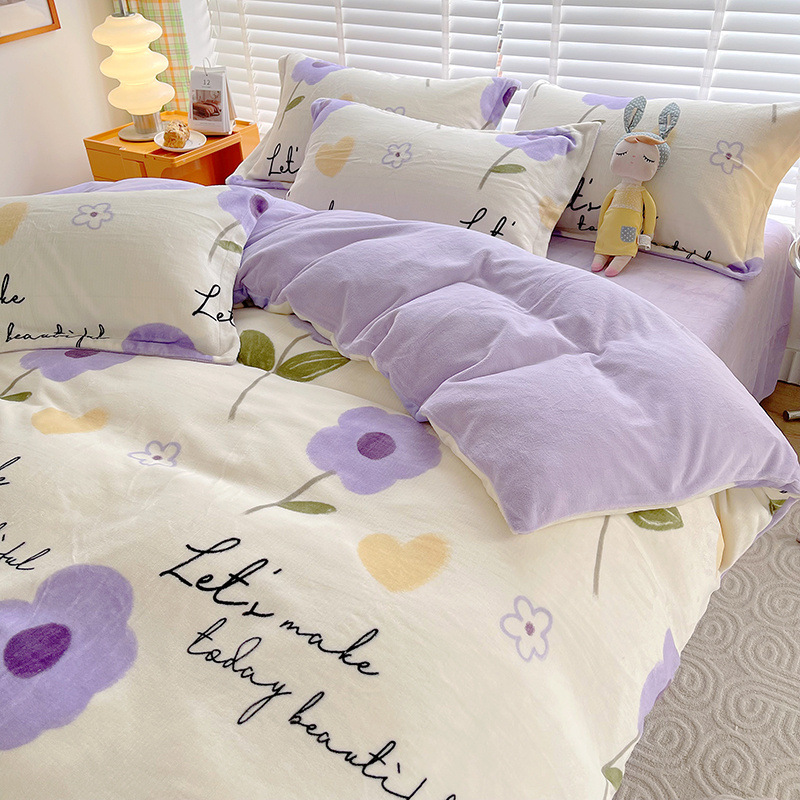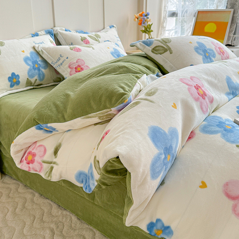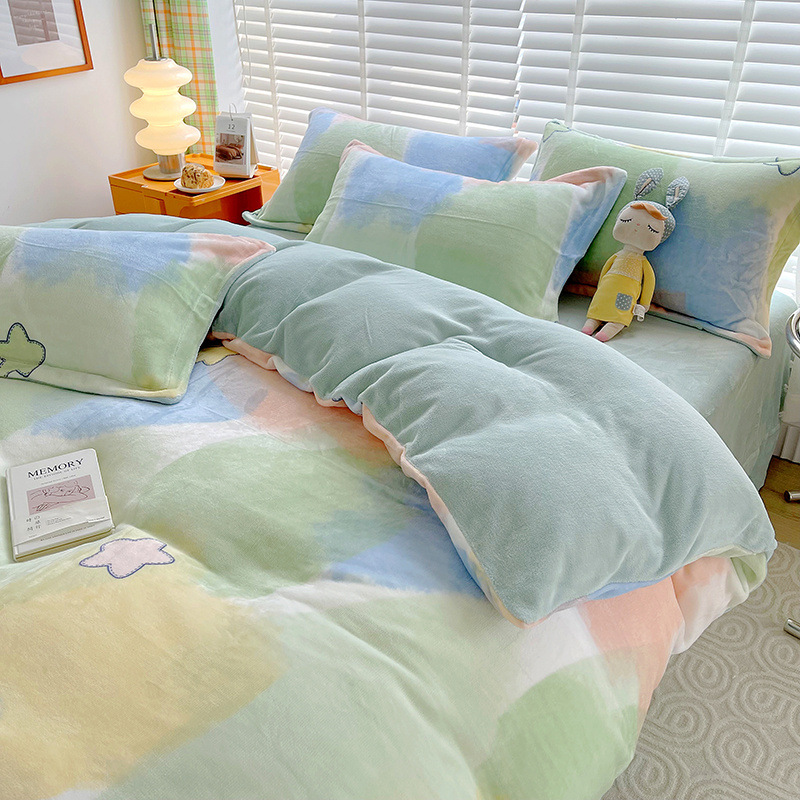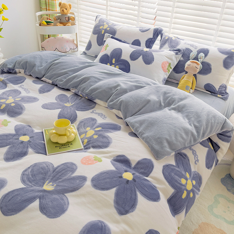 A类母婴级牛奶绒四件套双面加厚法兰绒学生被套床单枕套三件套ins