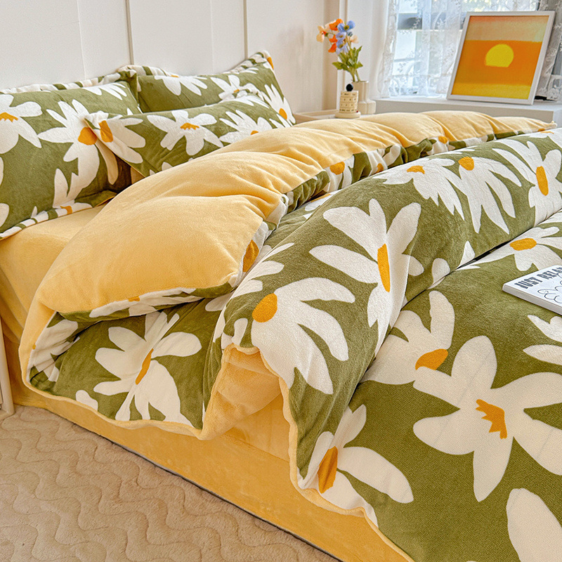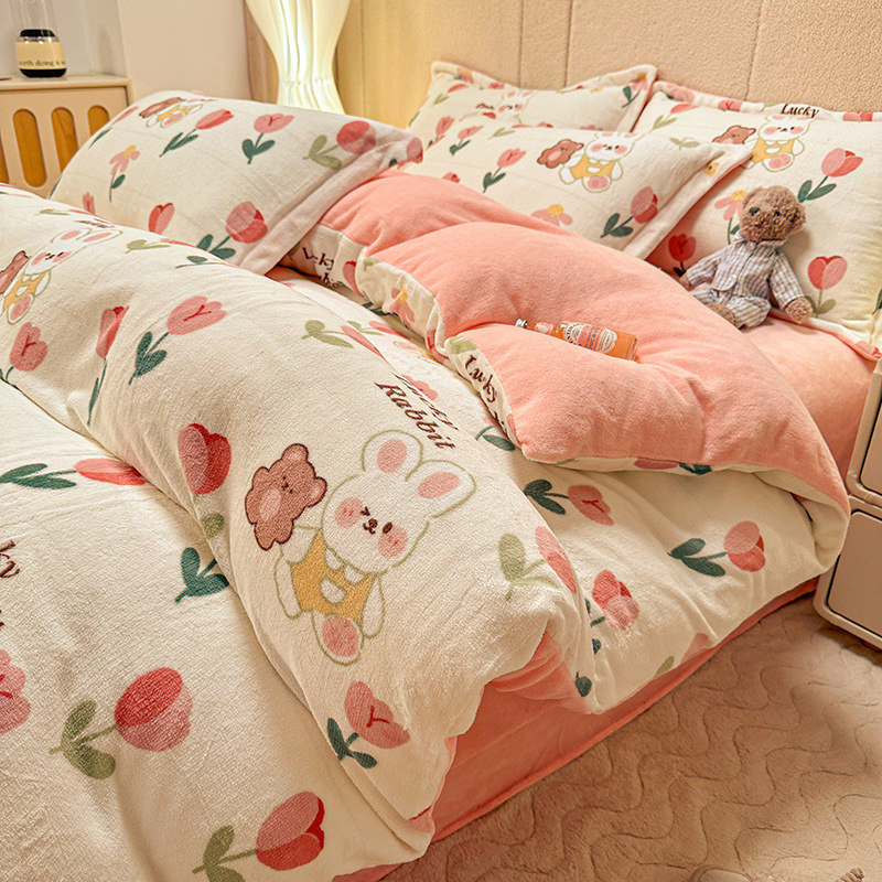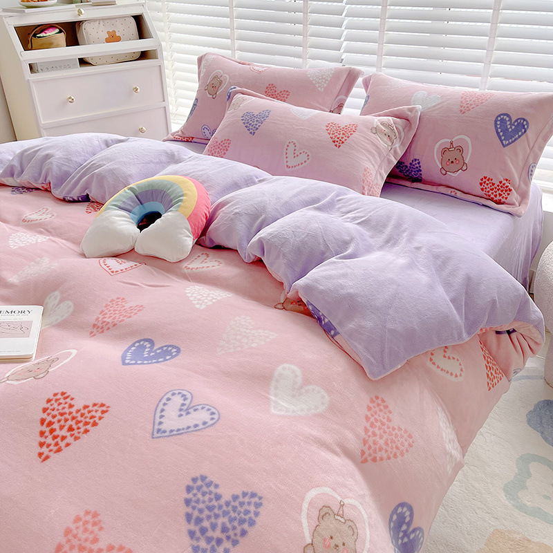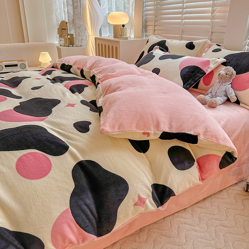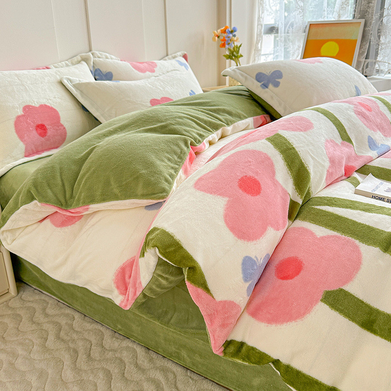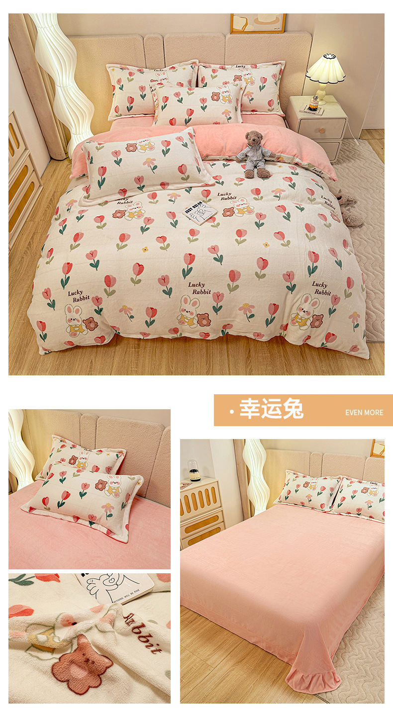 A类母婴级牛奶绒四件套双面加厚法兰绒学生被套床单枕套三件套ins