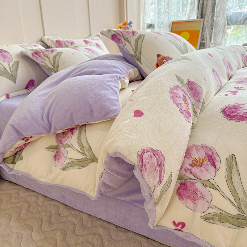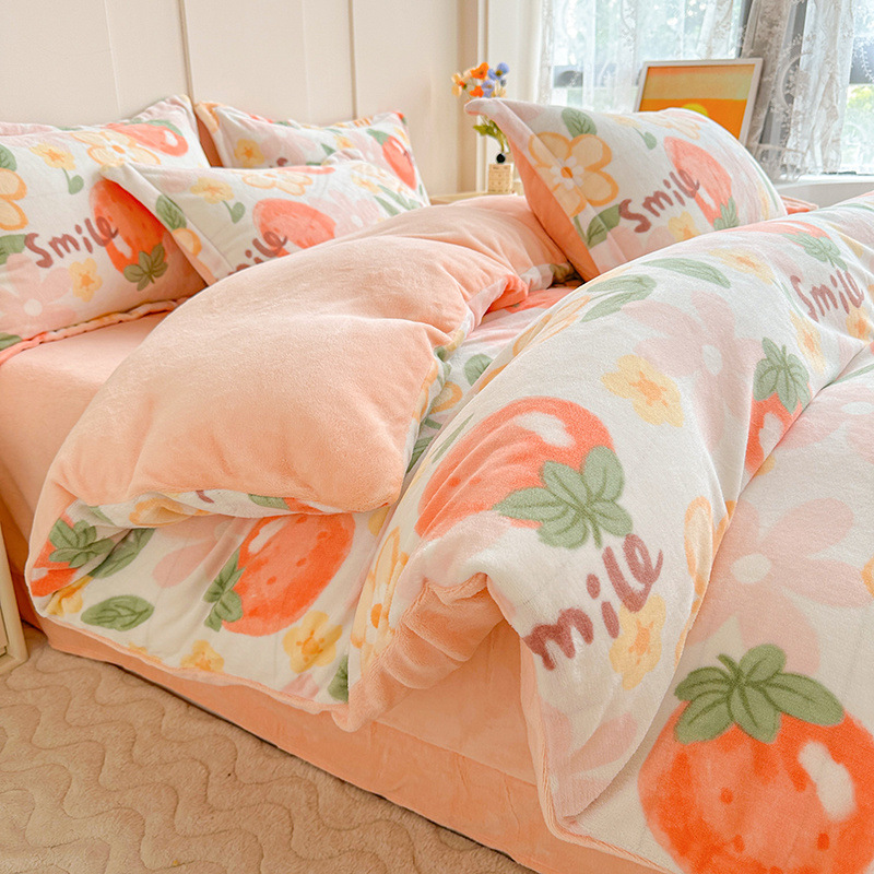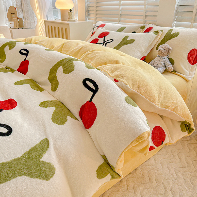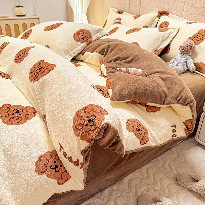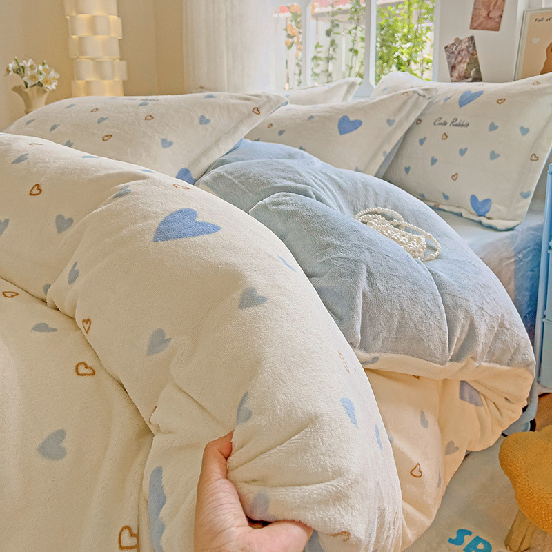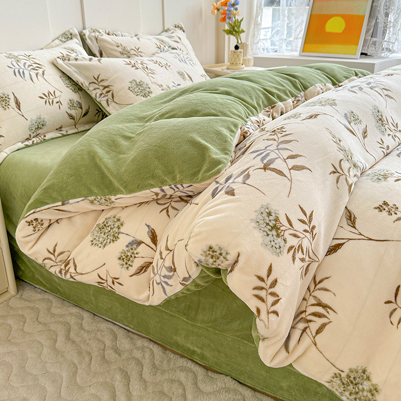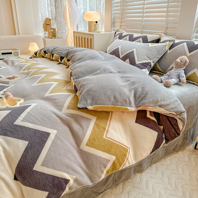 A类母婴级牛奶绒四件套双面加厚法兰绒学生被套床单枕套三件套ins
