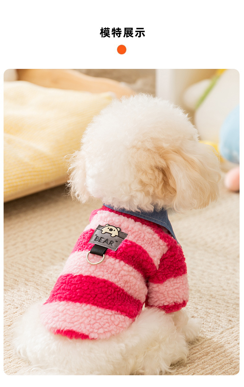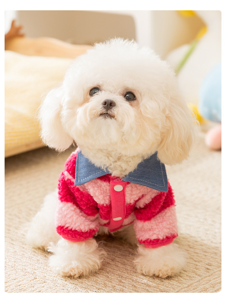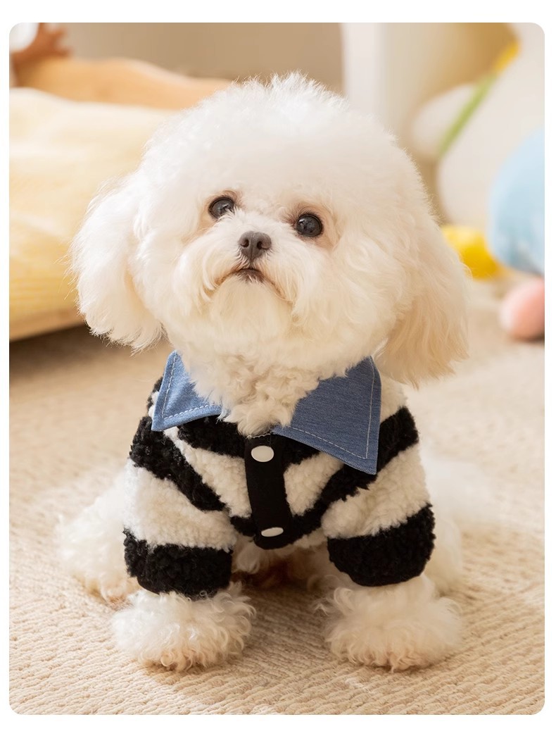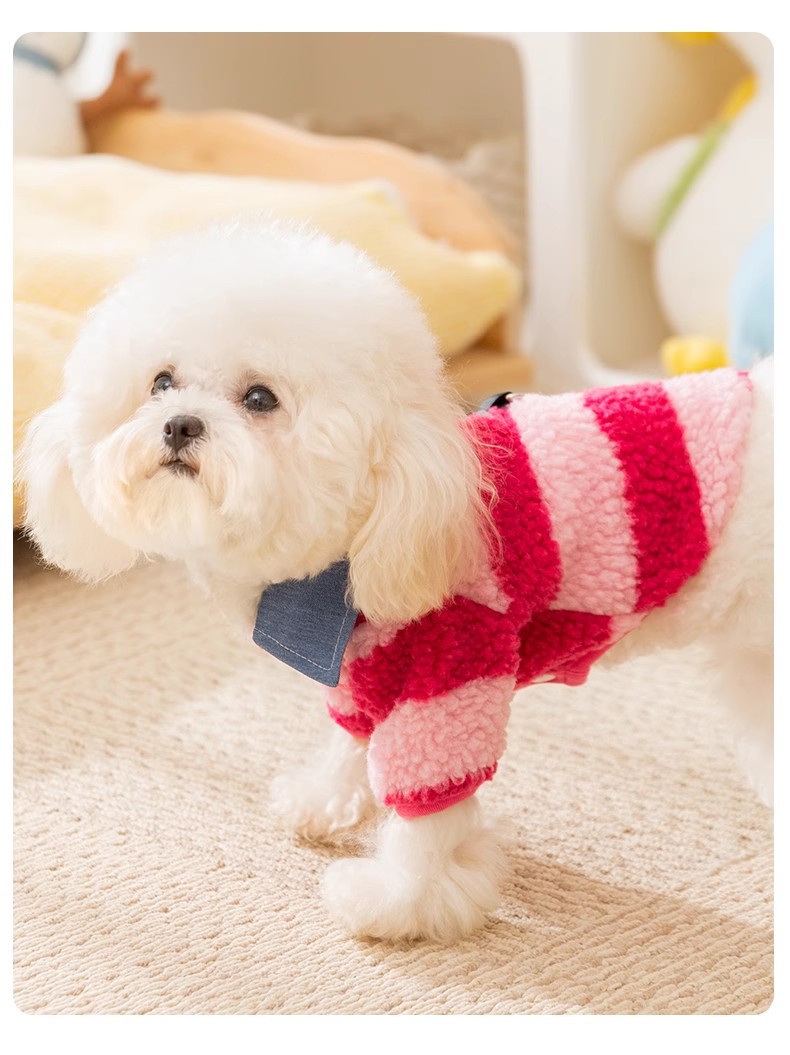 秋冬季小狗狗衣服条纹衬衫领两脚绒衣加厚保暖秋天宠物服饰猫衣服