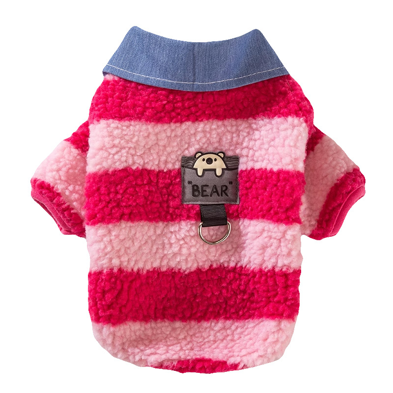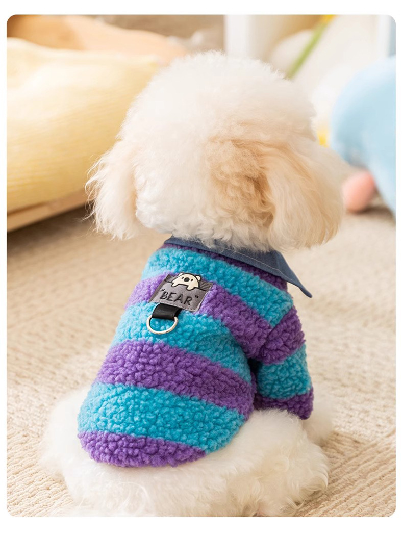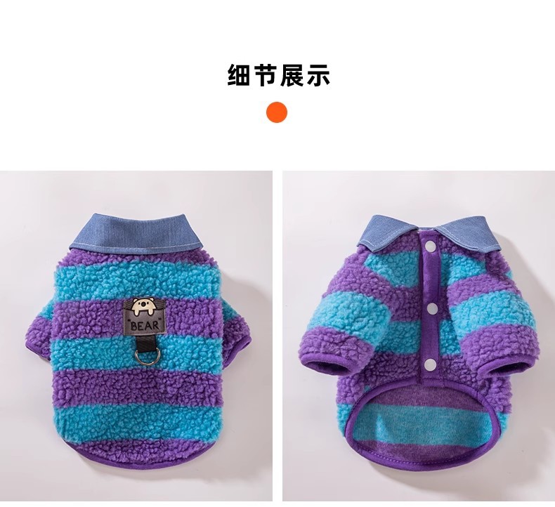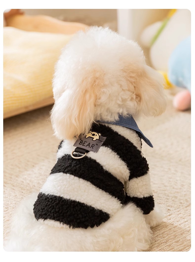 秋冬季小狗狗衣服条纹衬衫领两脚绒衣加厚保暖秋天宠物服饰猫衣服