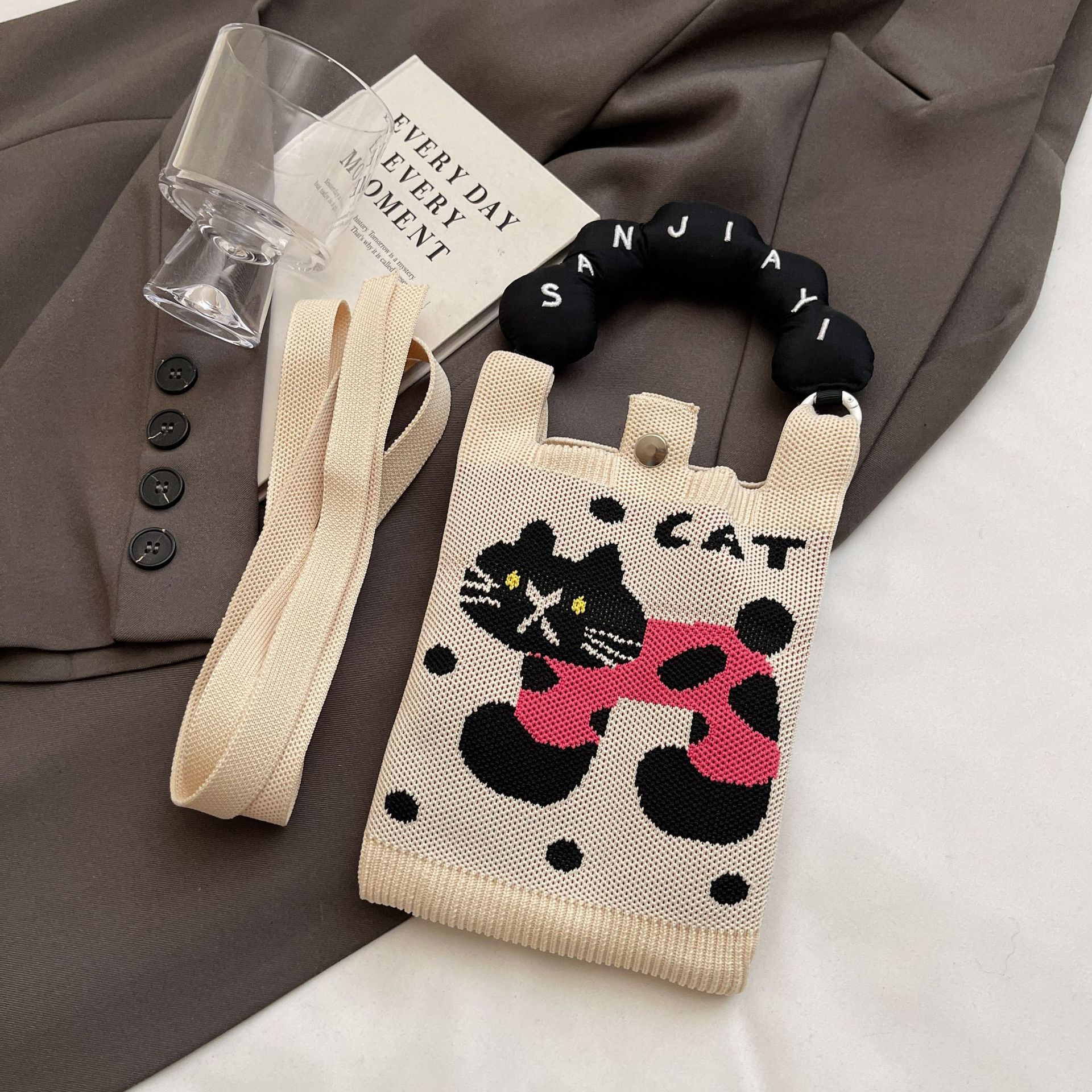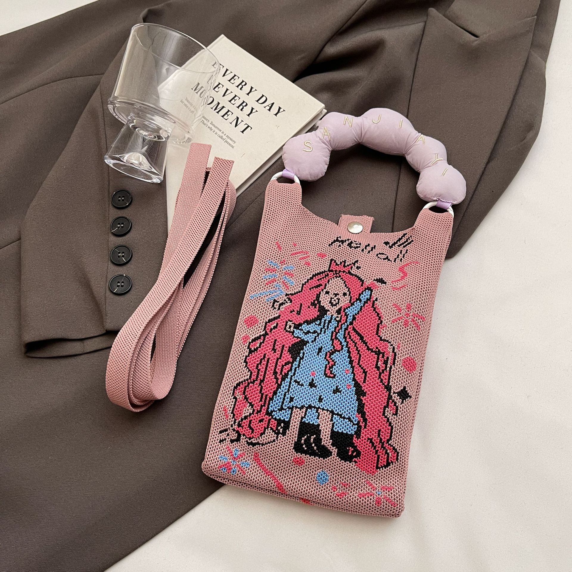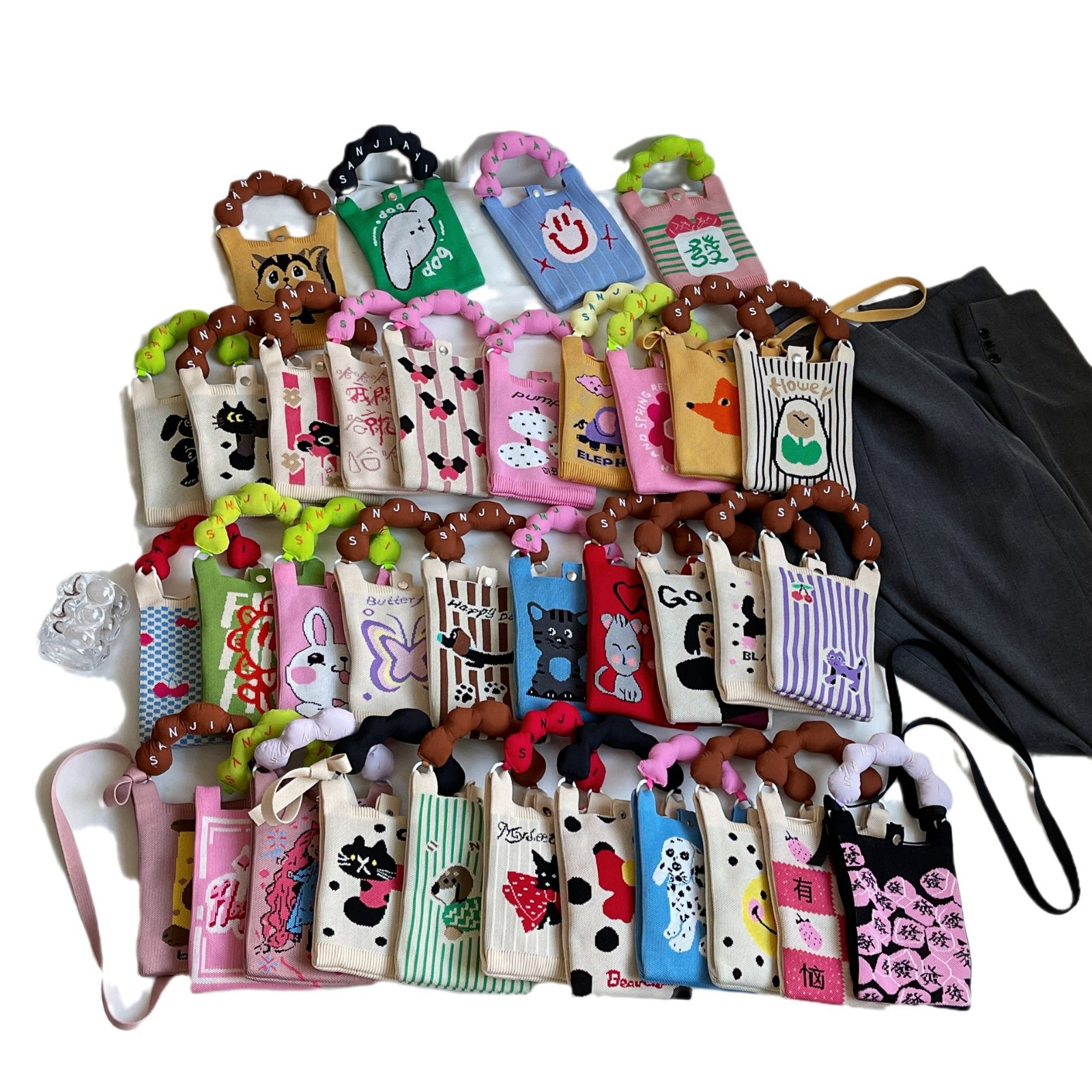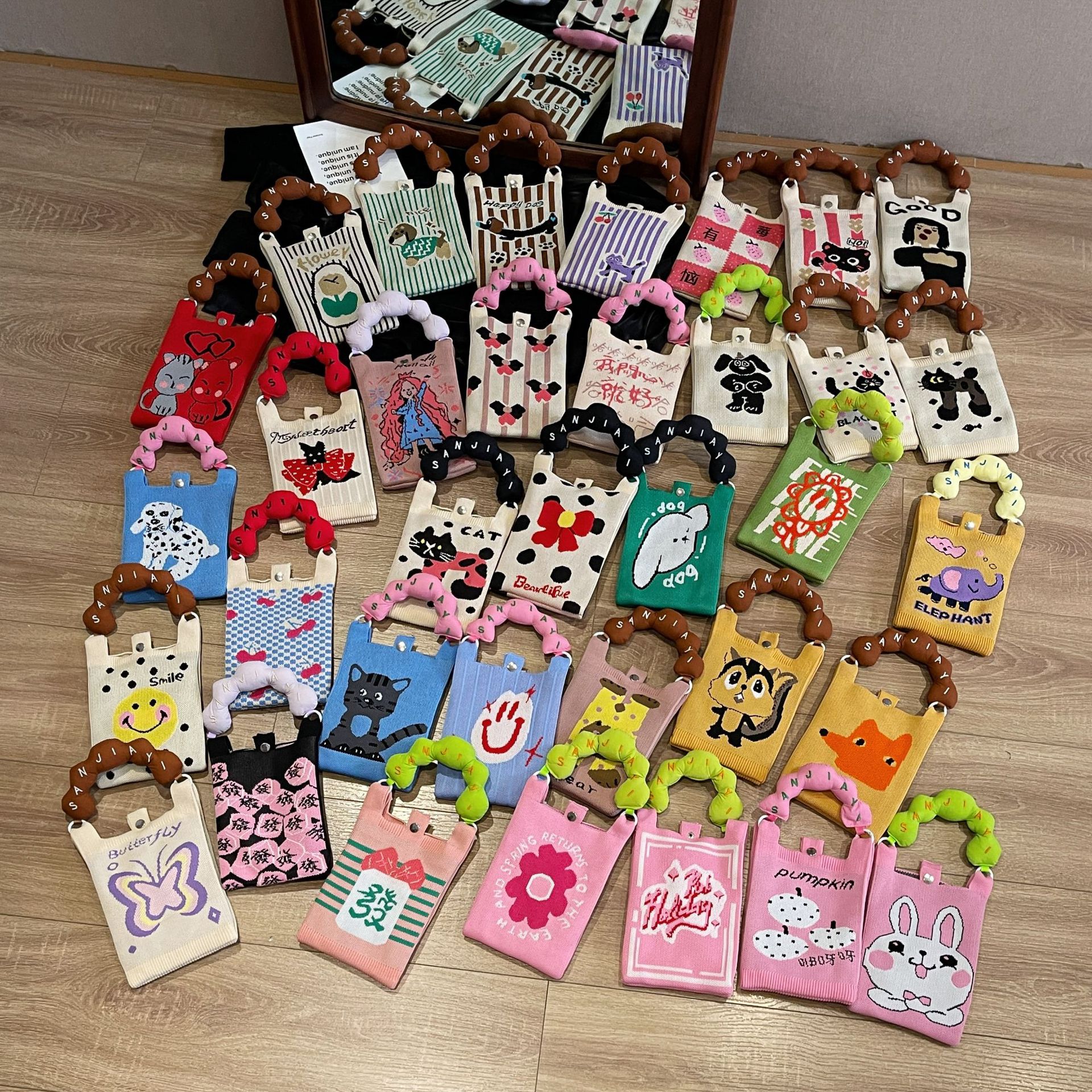 韩国ins原创针织手提手机包新款便捷收纳学生可爱卡通时尚斜挎包