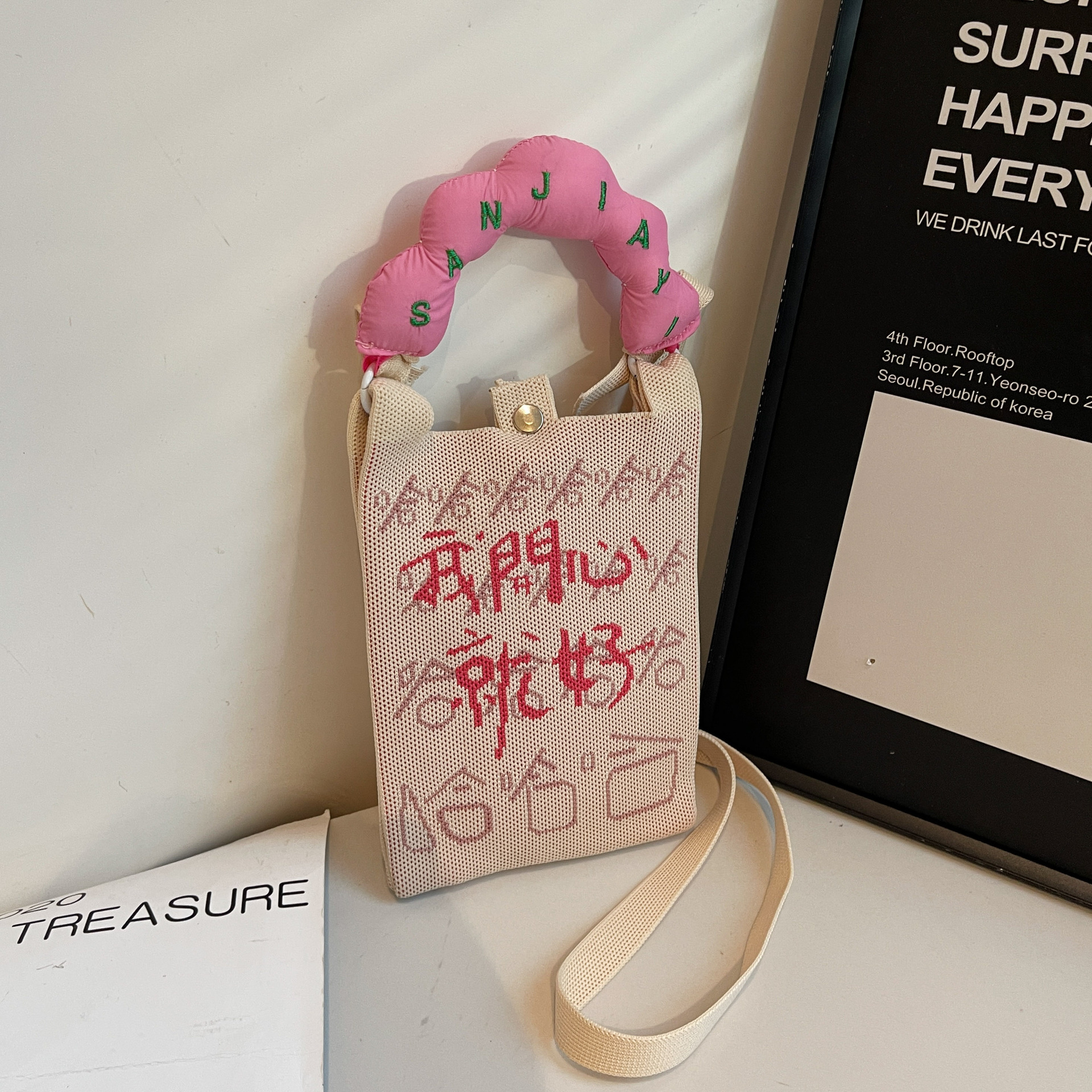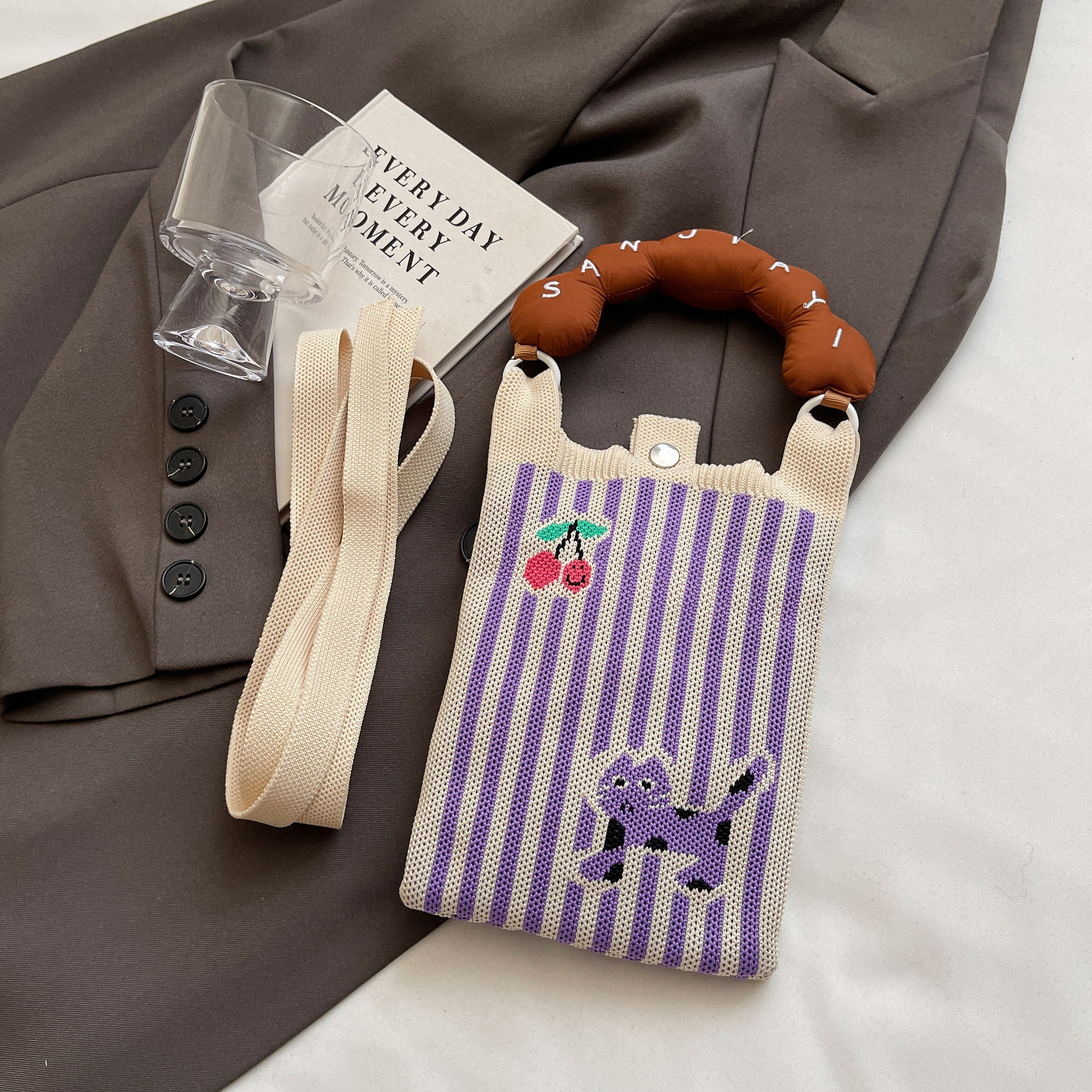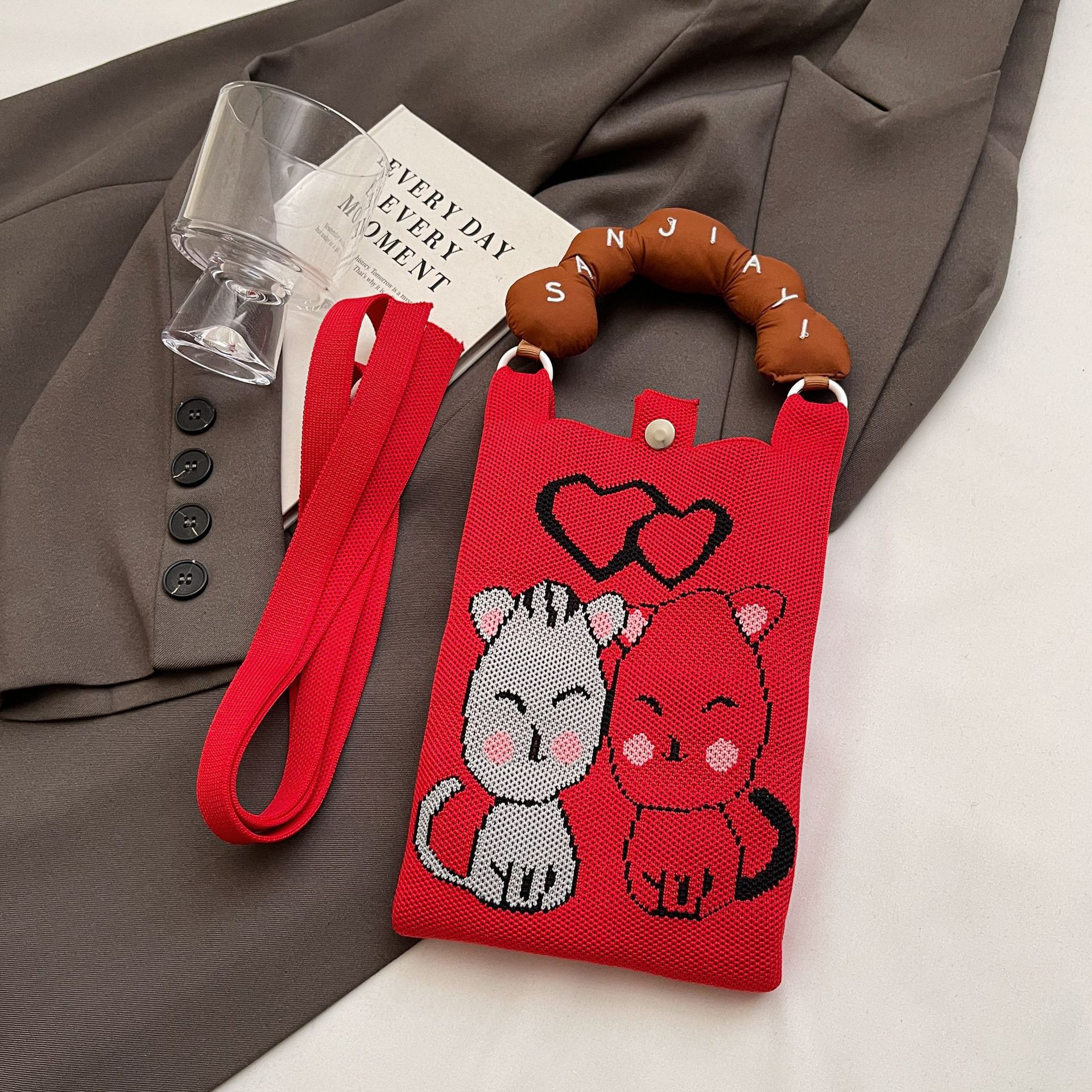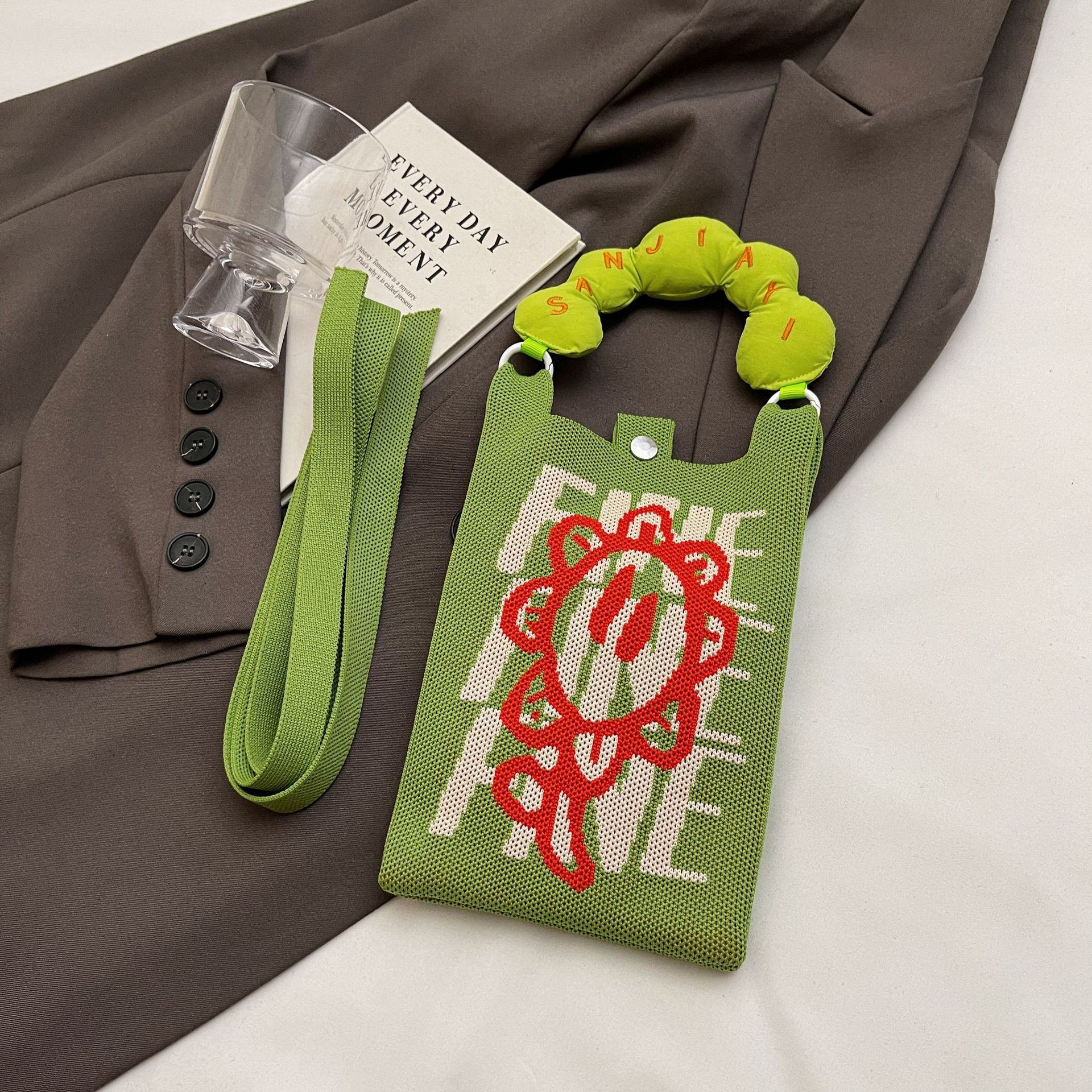 韩国ins原创针织手提手机包新款便捷收纳学生可爱卡通时尚斜挎包