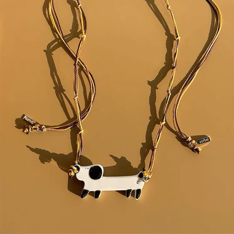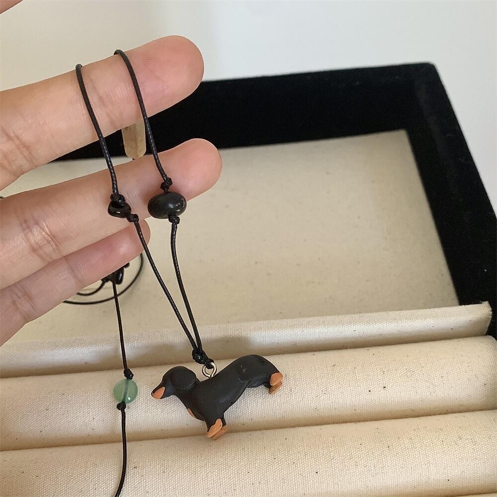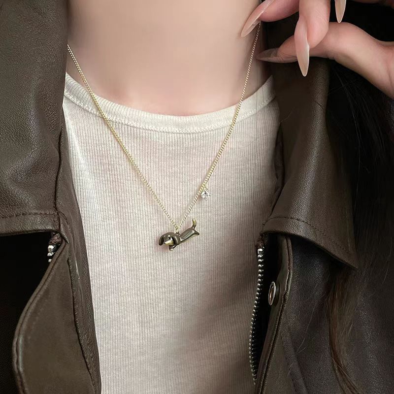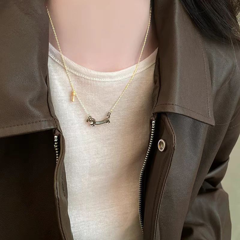 小红书同款可爱腊肠狗吊坠项链时尚个性小众简约卡通小狗颈链可调