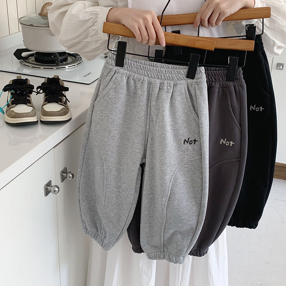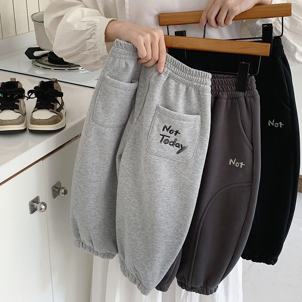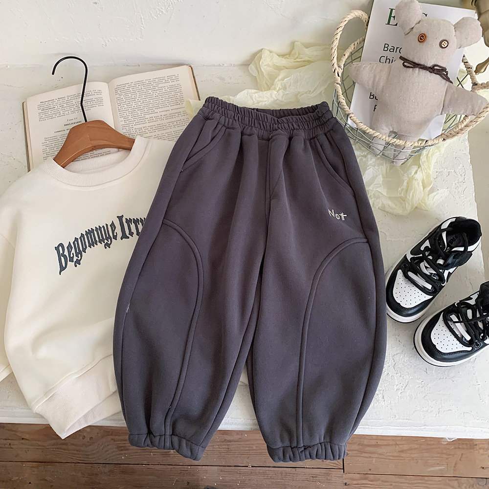 儿童加绒休闲裤2024冬季新款纯棉加厚保暖刺绣百搭卫裤宝宝长裤潮
