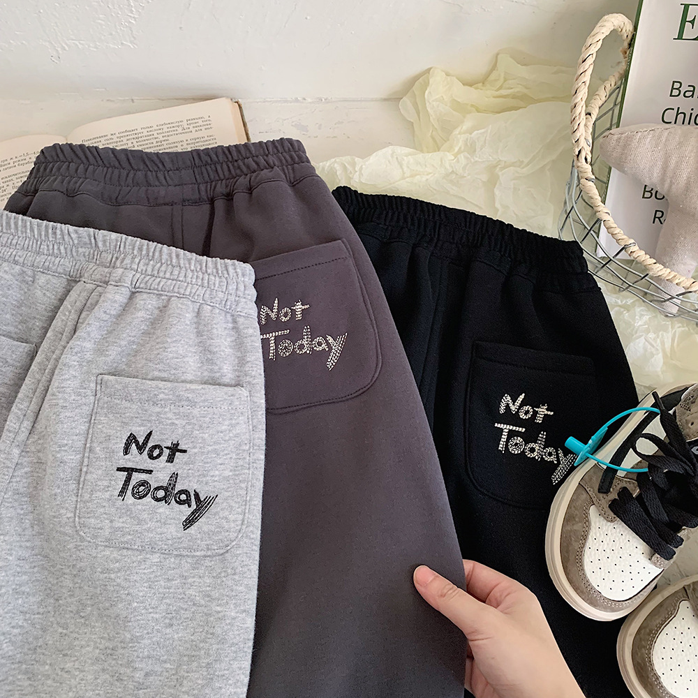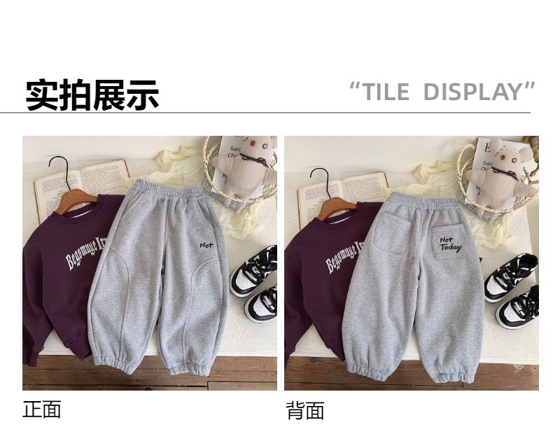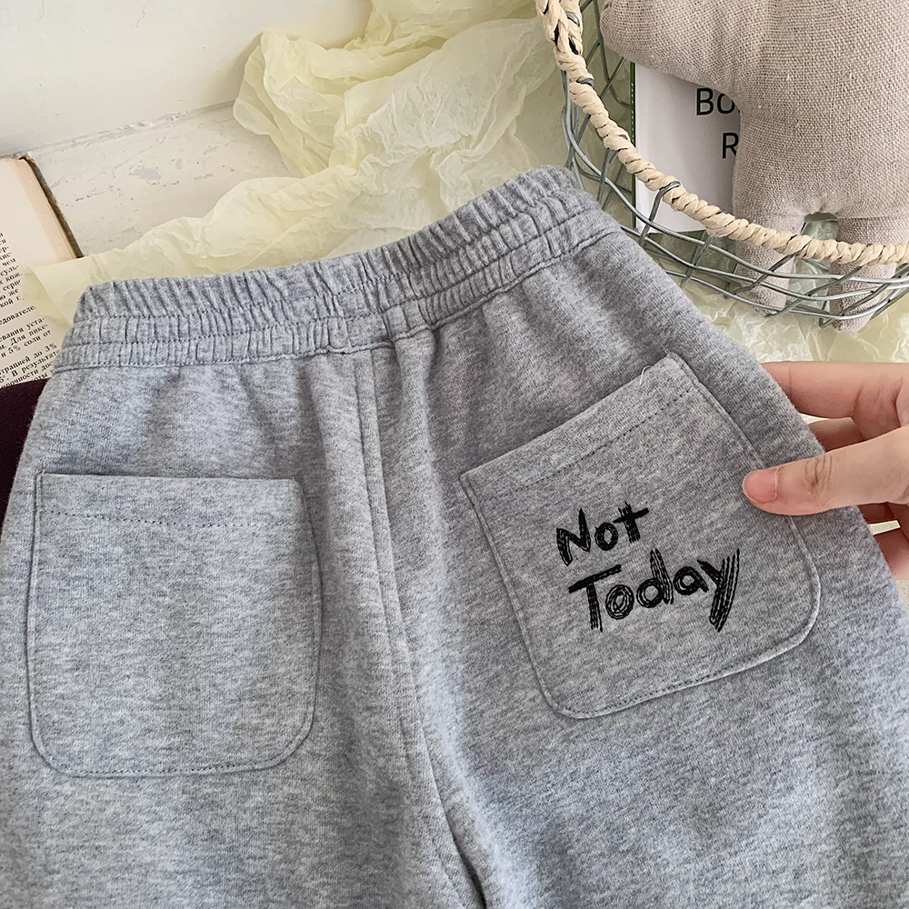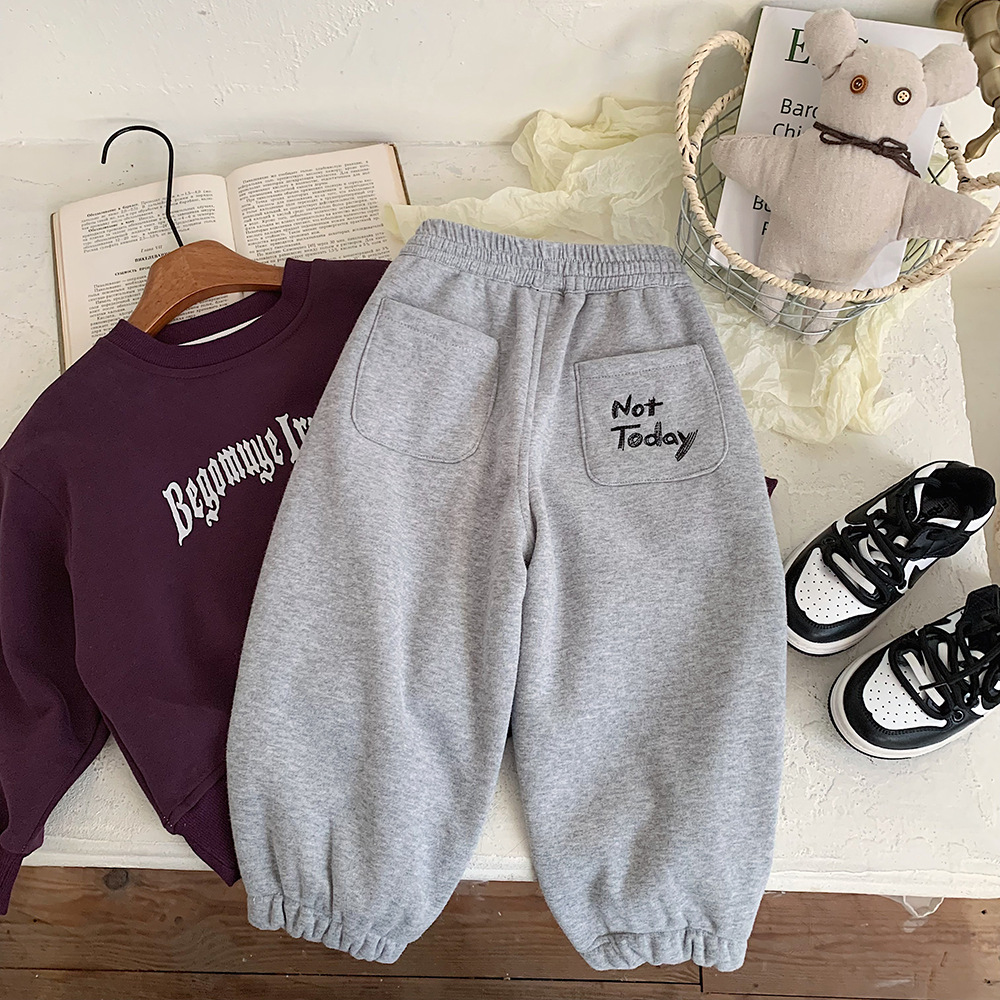 儿童加绒休闲裤2024冬季新款纯棉加厚保暖刺绣百搭卫裤宝宝长裤潮