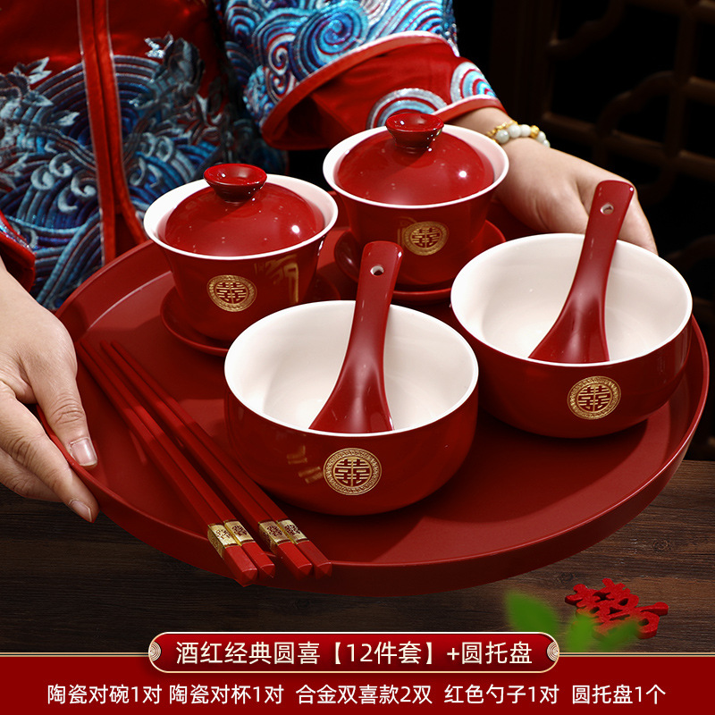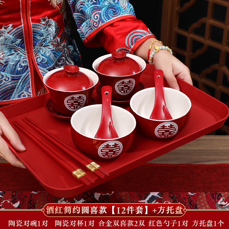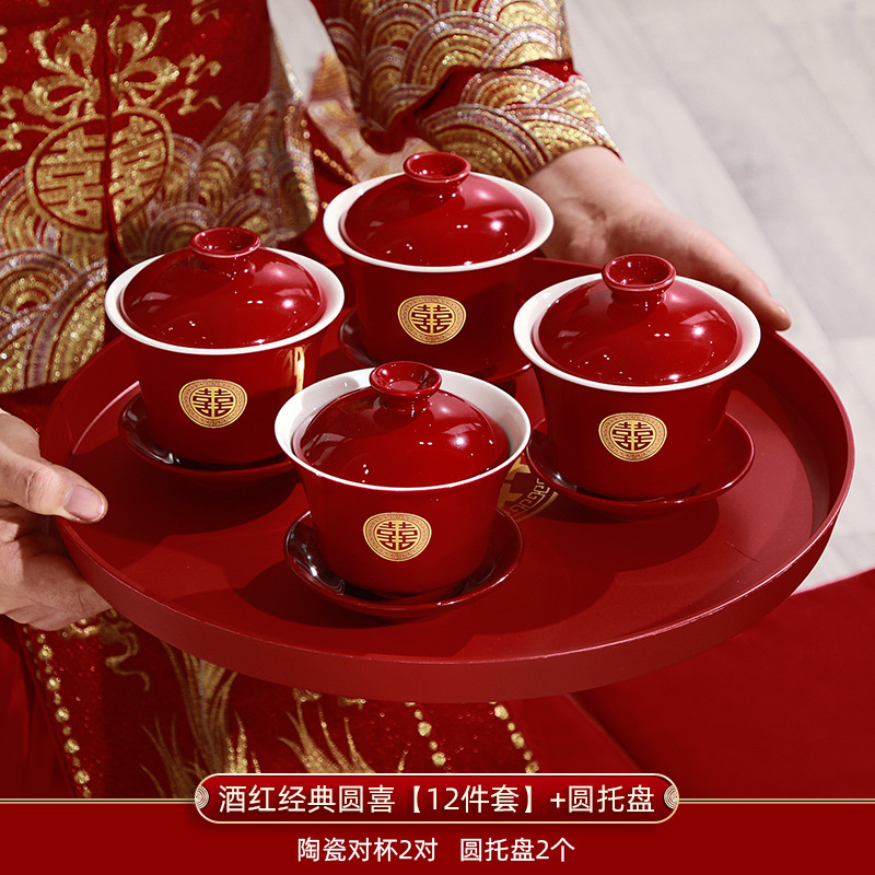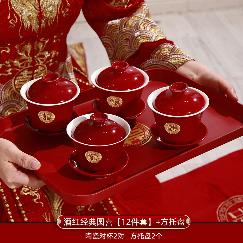 敬茶杯结婚套装一对喜碗筷杯子婚礼红色改口茶具敬酒陪嫁用品大全