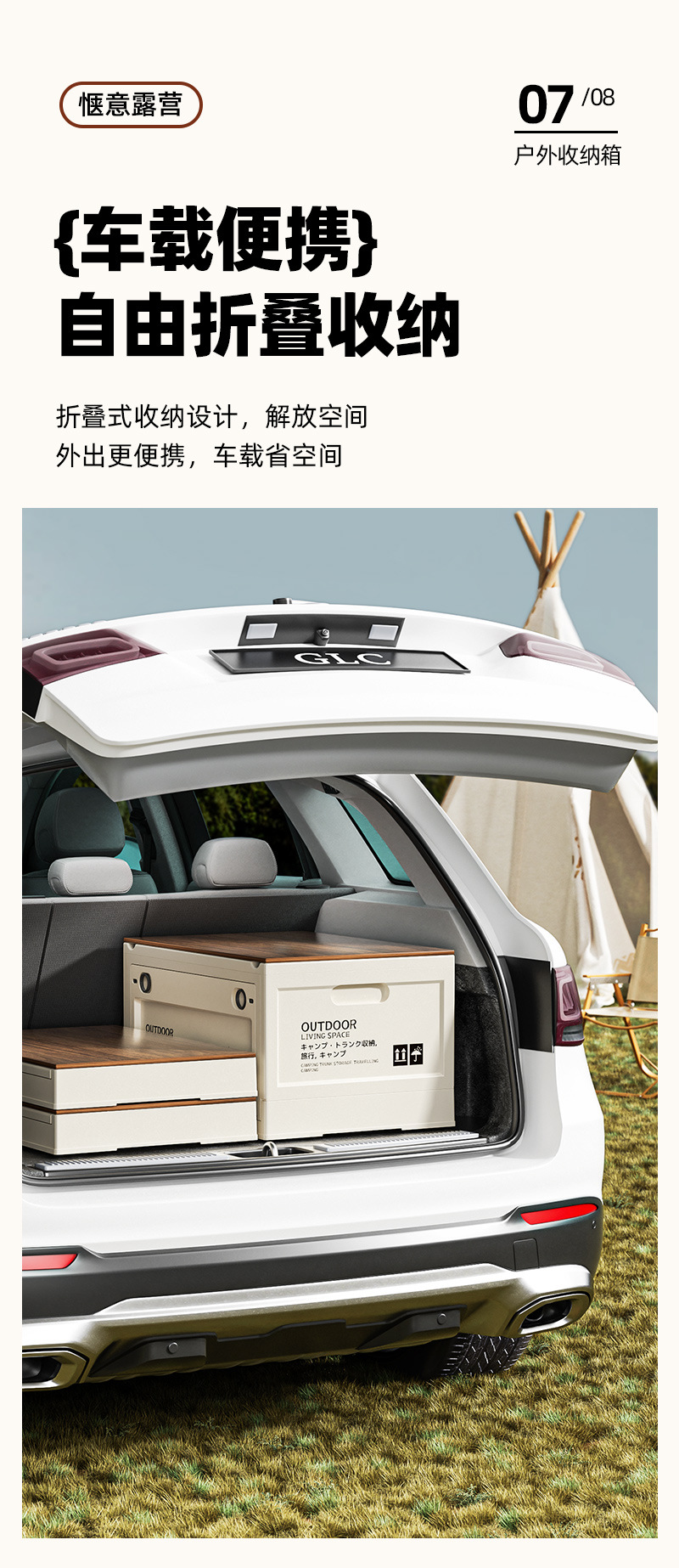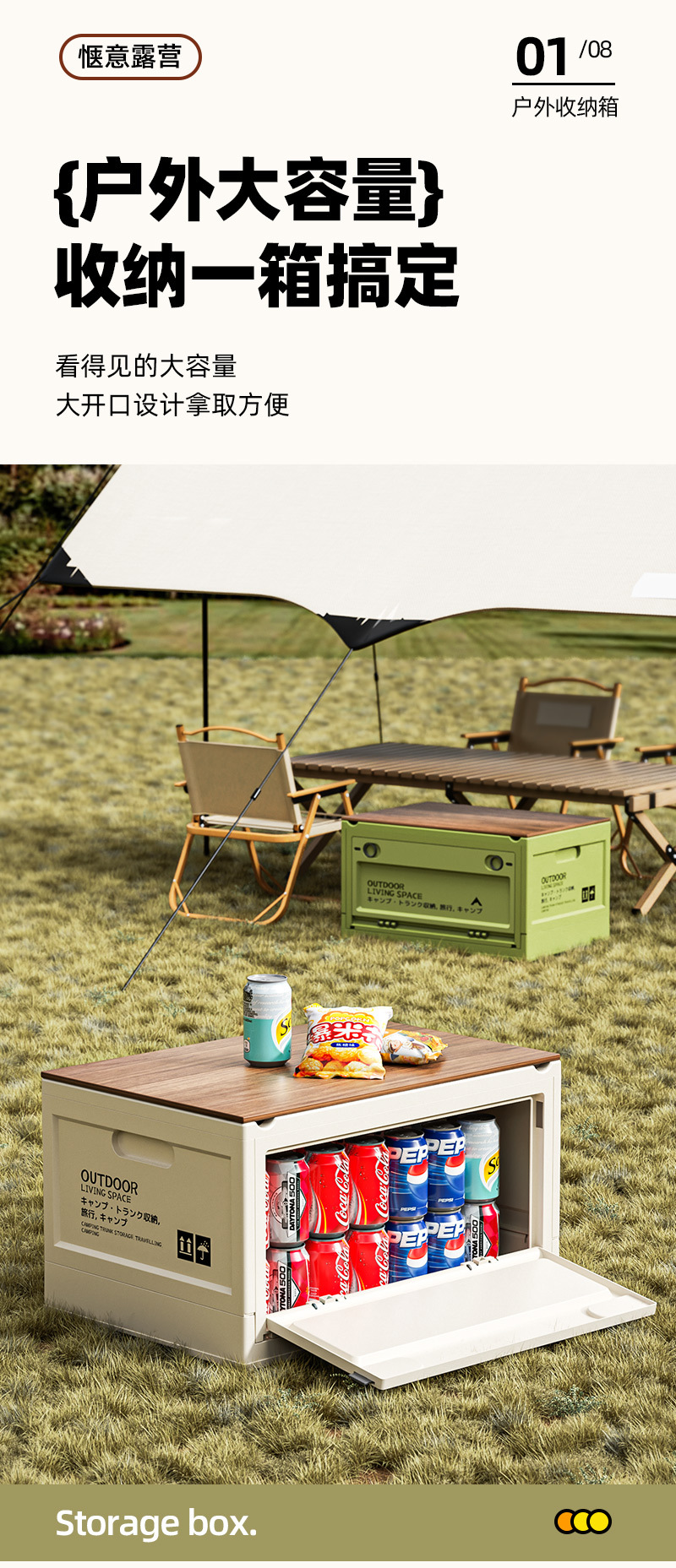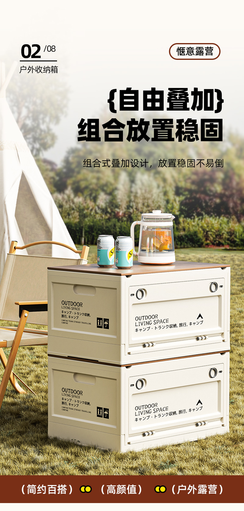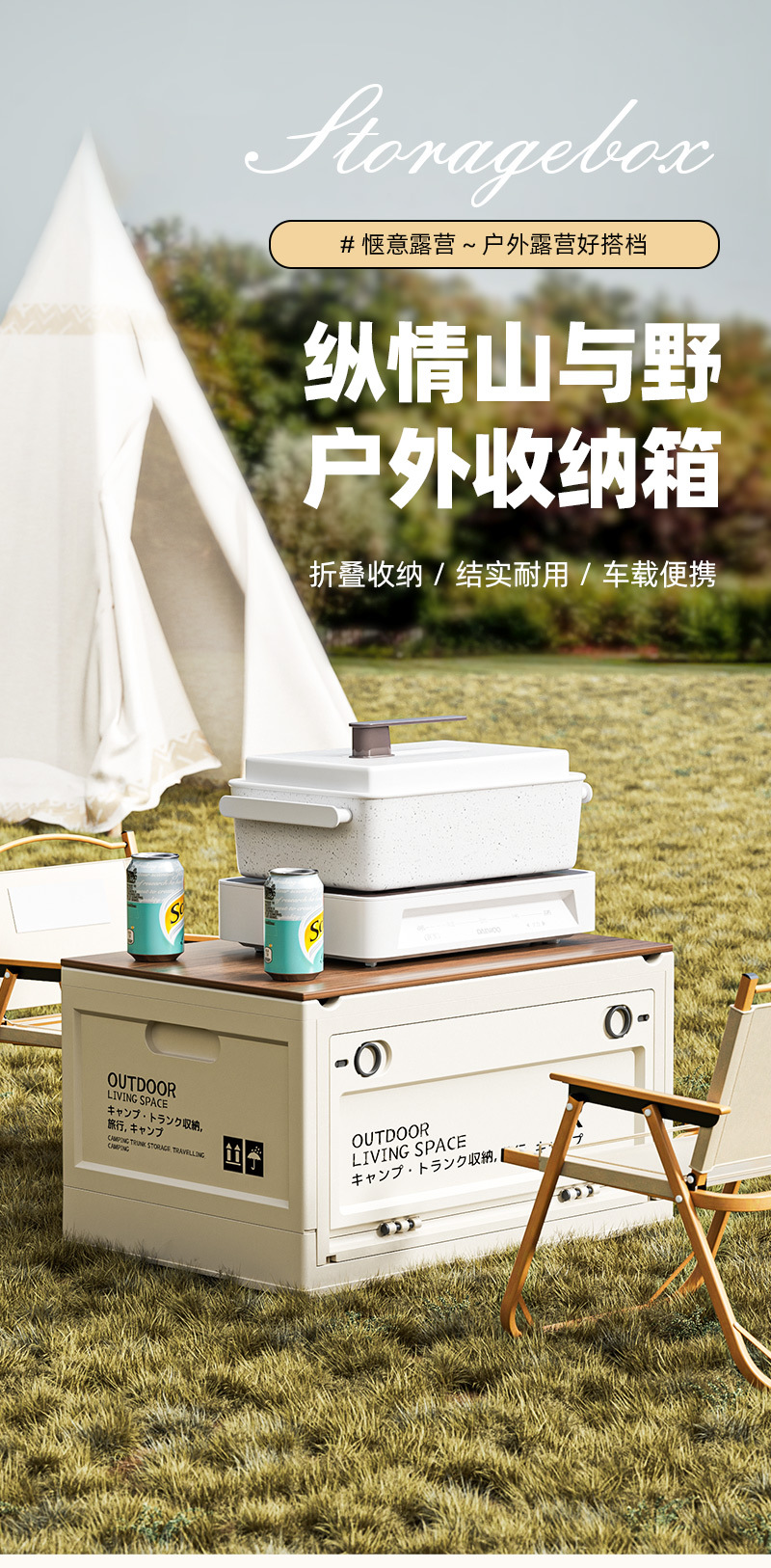 户外露营收纳箱野营木盖折叠箱车载后备箱储物箱侧开门塑料整理箱