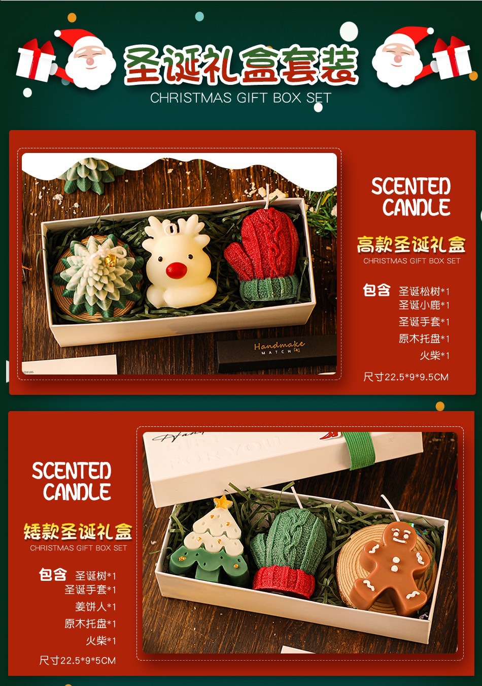 圣诞节日高级感手工圣诞树小鹿造型香薰蜡烛礼盒套装伴手礼高颜值