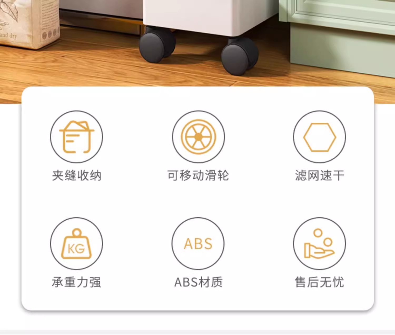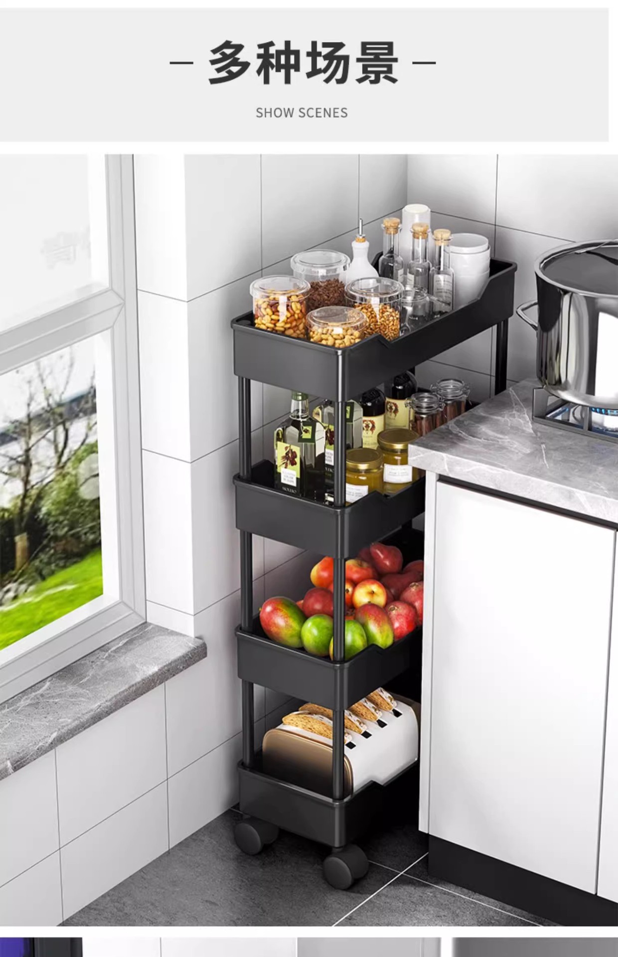 夹缝置物架落地多层厨房窄缝隙卫生间浴室零食小推车冰箱侧收纳架