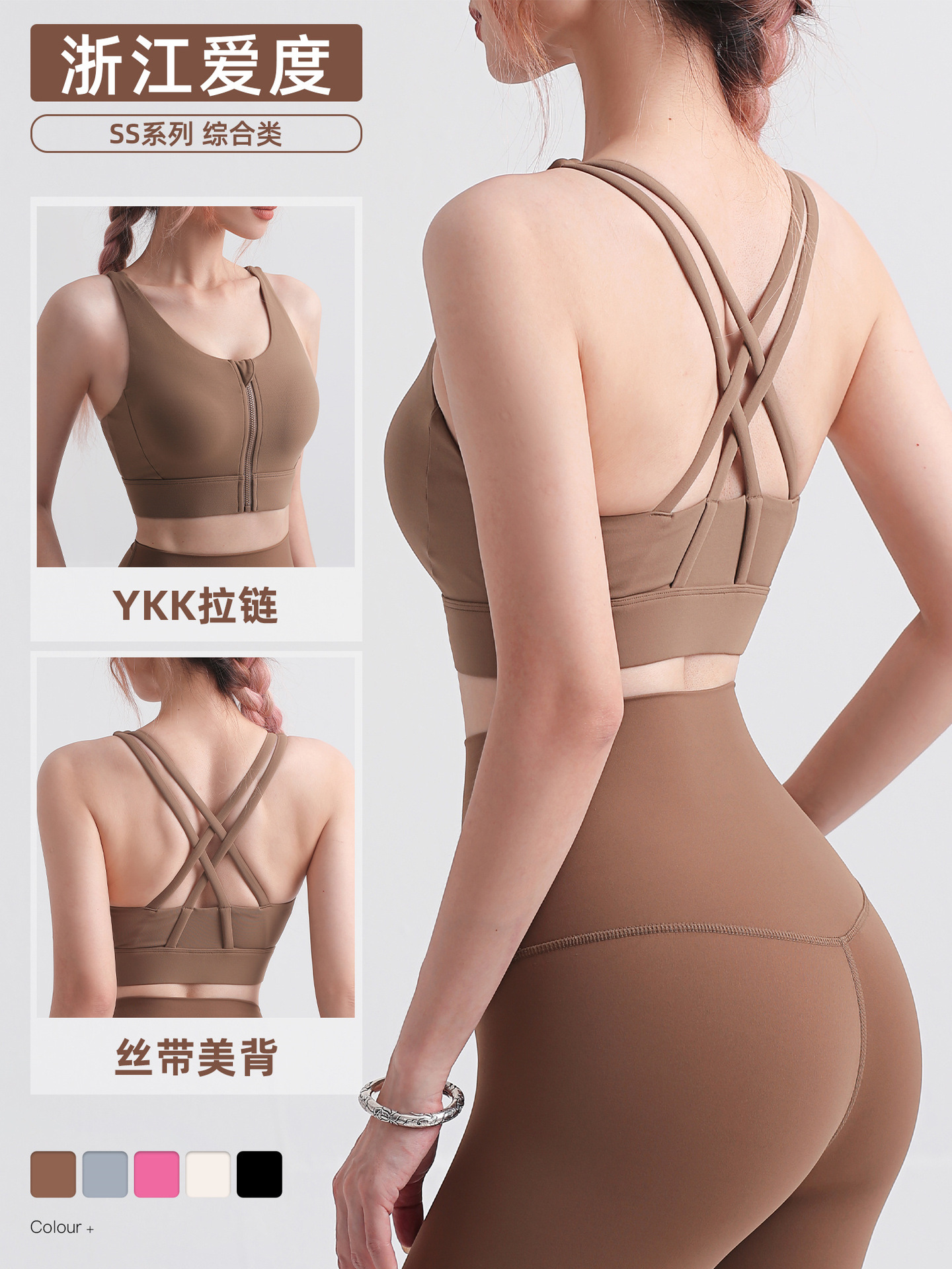 SS中强度凉感拉链防震运动内衣女夏裸感美背瑜伽文胸跑步健身背心
